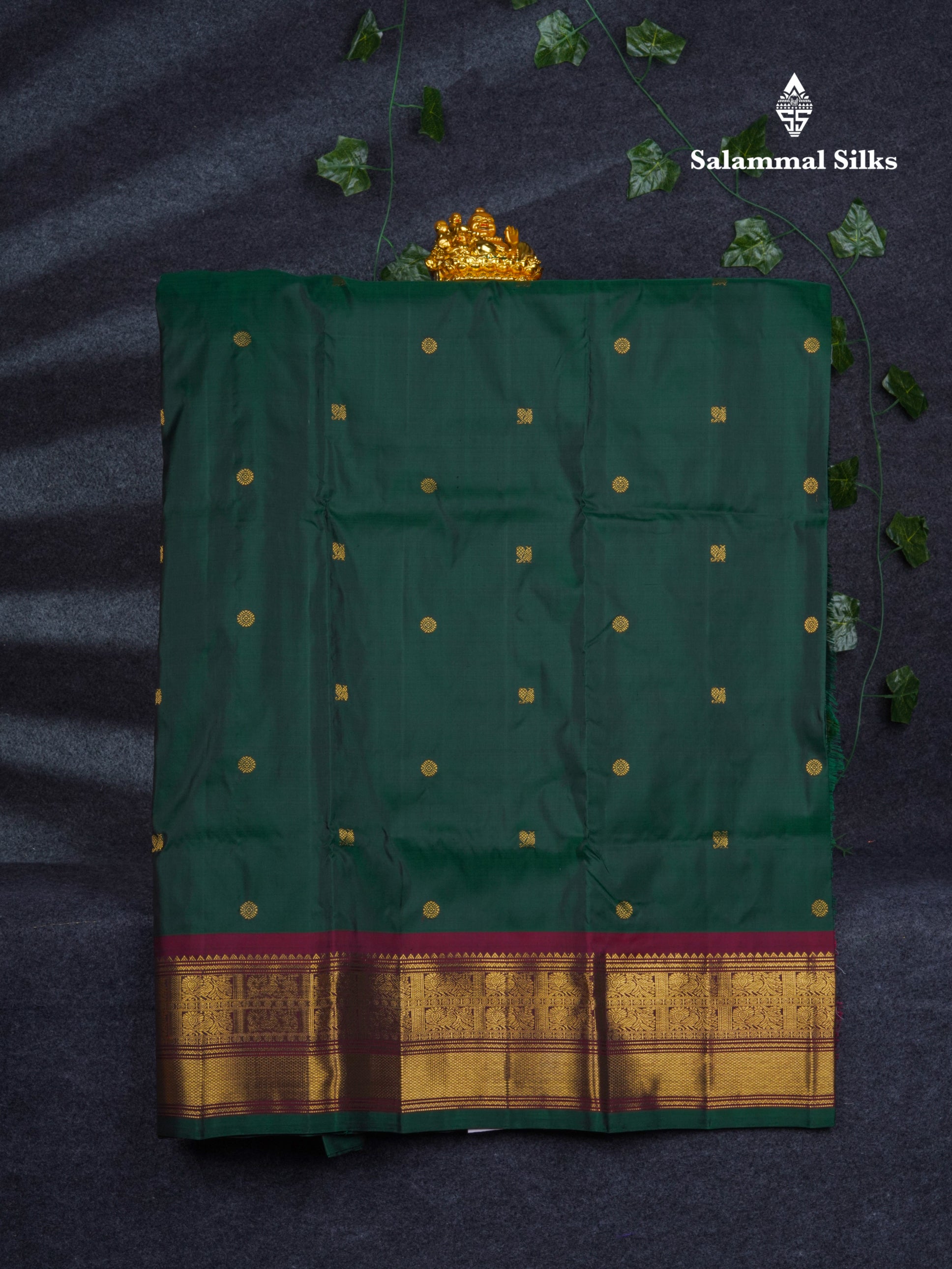 Pure Silk Pure Zari Pattu Pavadai ( Bottle Green ) With Contrast Dark Brown Traditional Border 42.5"