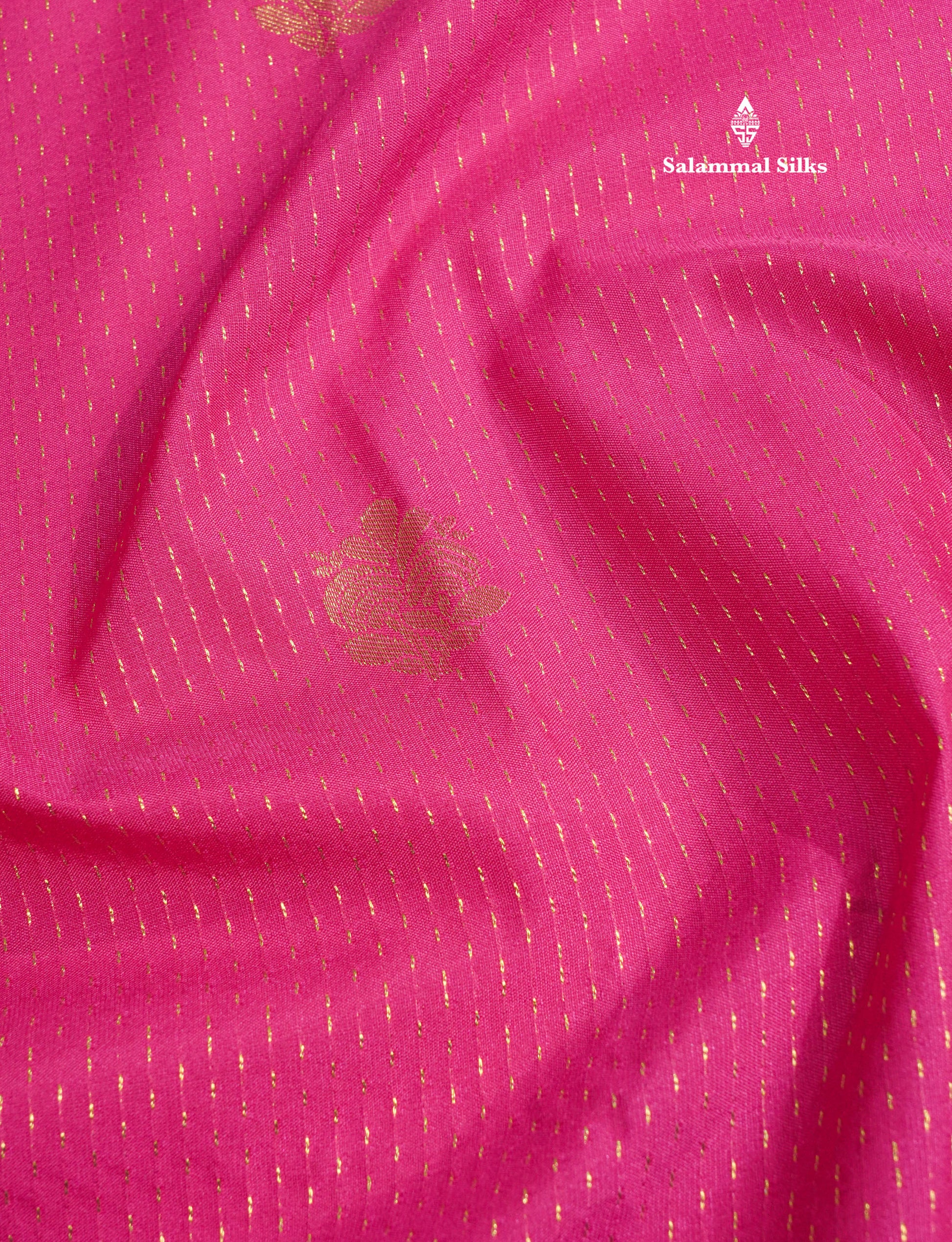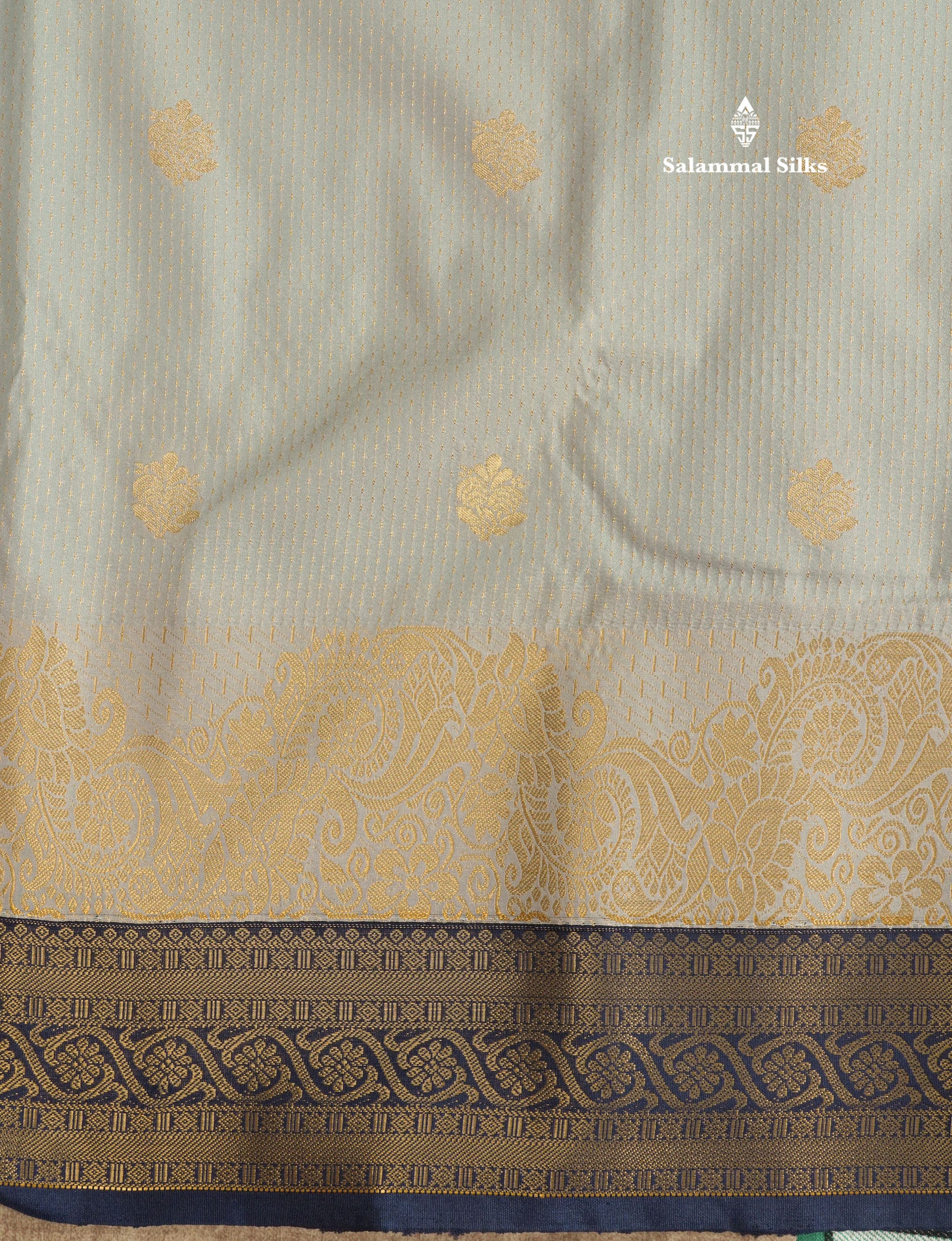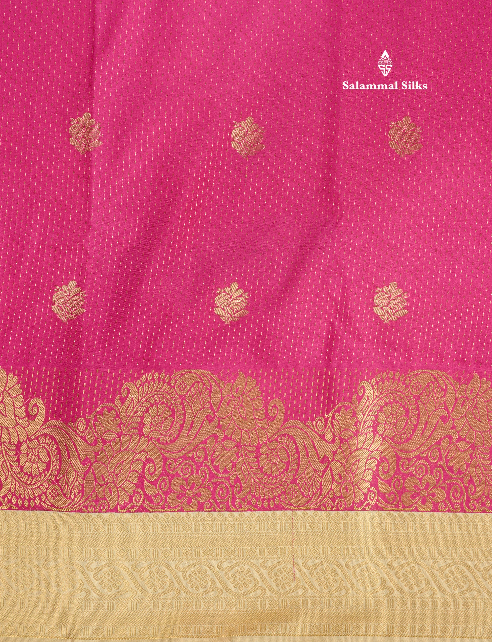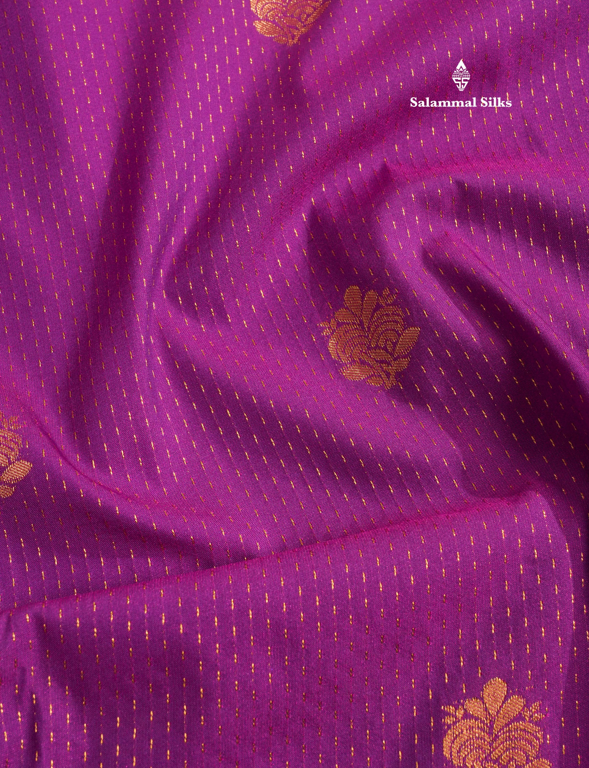Salammal is known for its handloom sarees. In some sarees, there is cross-weaving between the body and the pallu, which is a sign of pure handloom sarees. This can be seen in Kanchipuram embossed sarees.