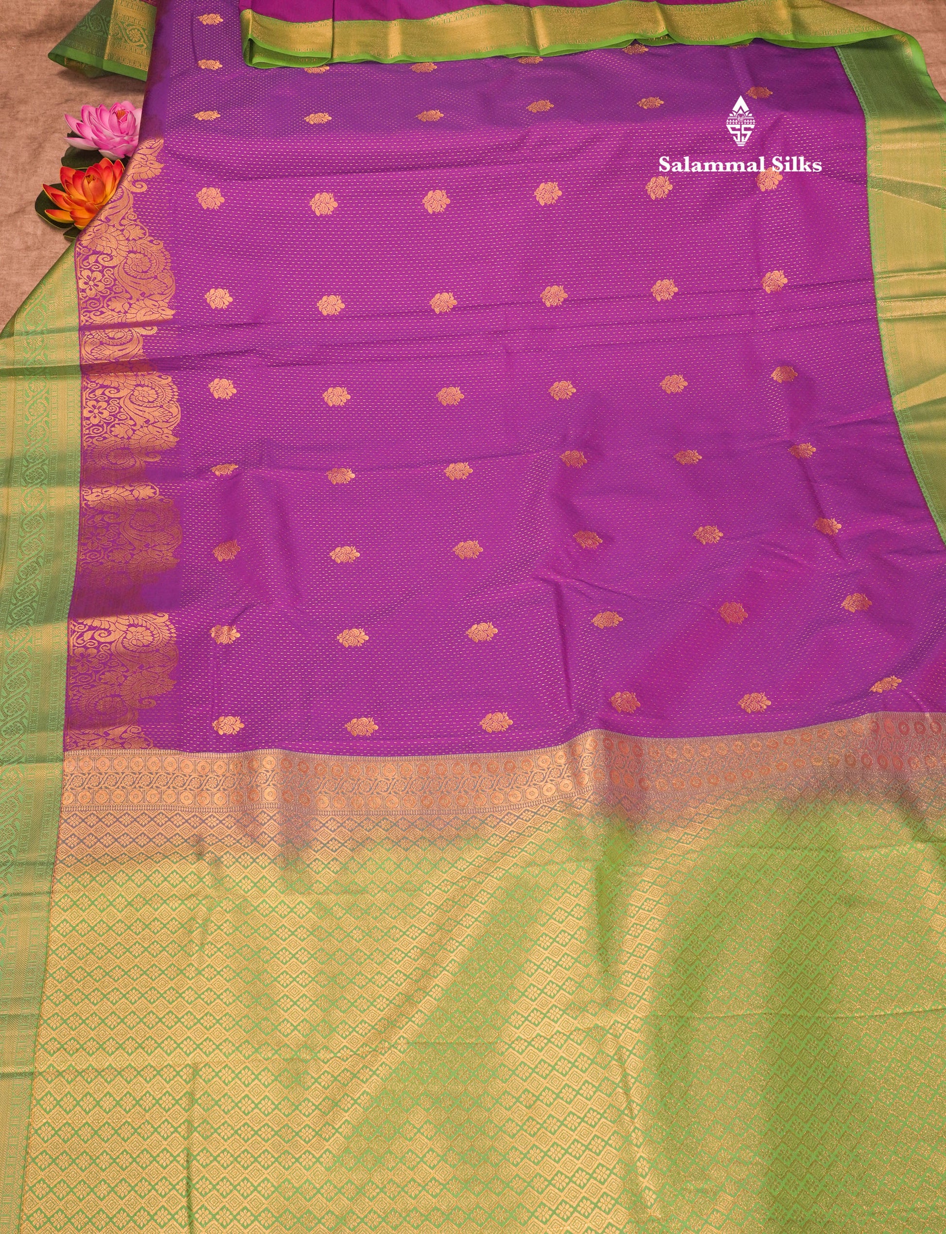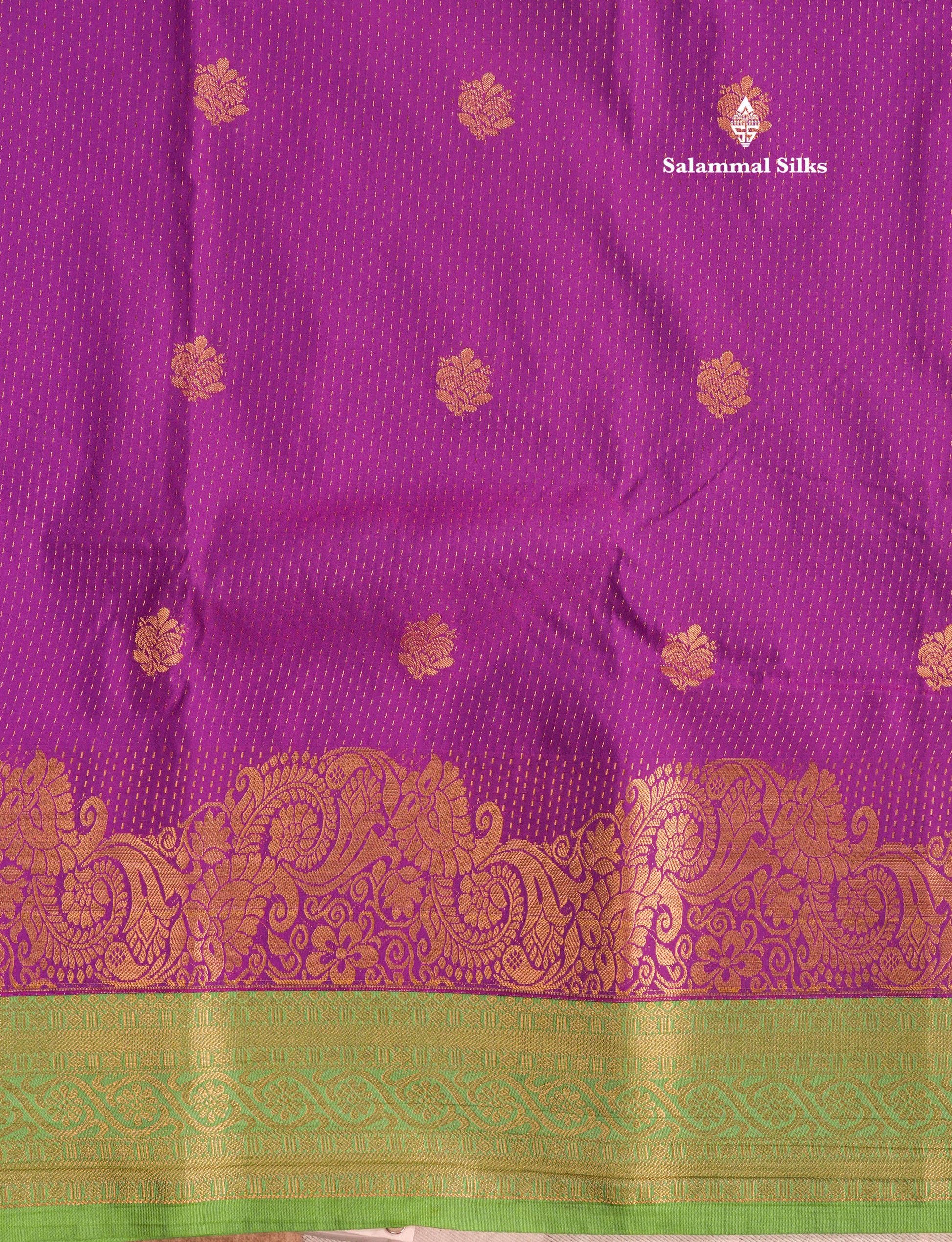 Purple Semi Silk Saree With Contrast Green Fancy Turning Border