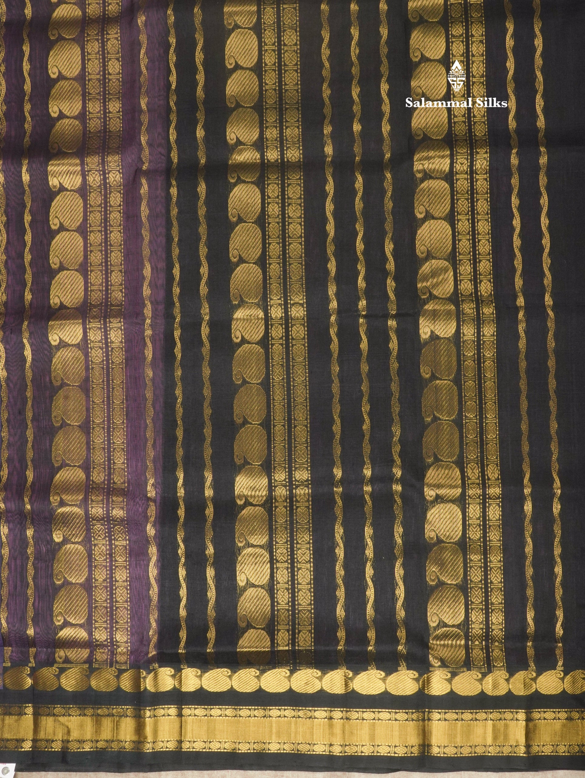 Salammal is known for its handloom sarees. In some sarees, there is cross-weaving between the body and the pallu, which is a sign of pure handloom sarees. This can be seen in Kanchipuram embossed sarees.