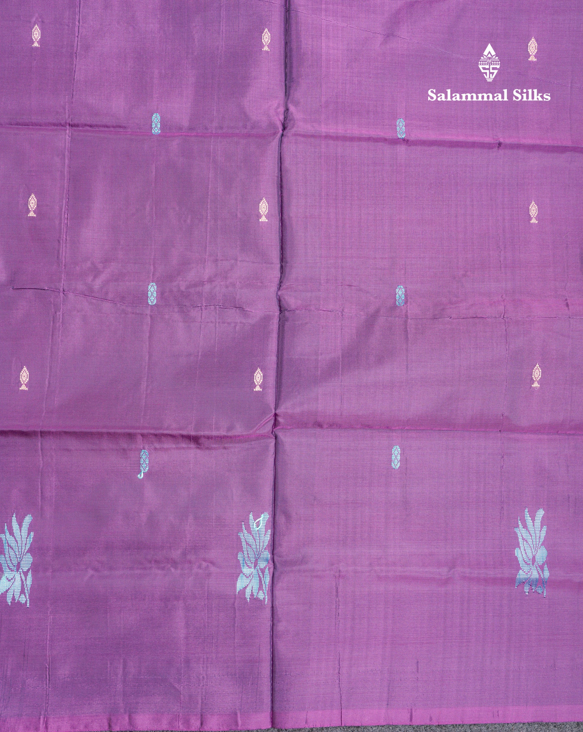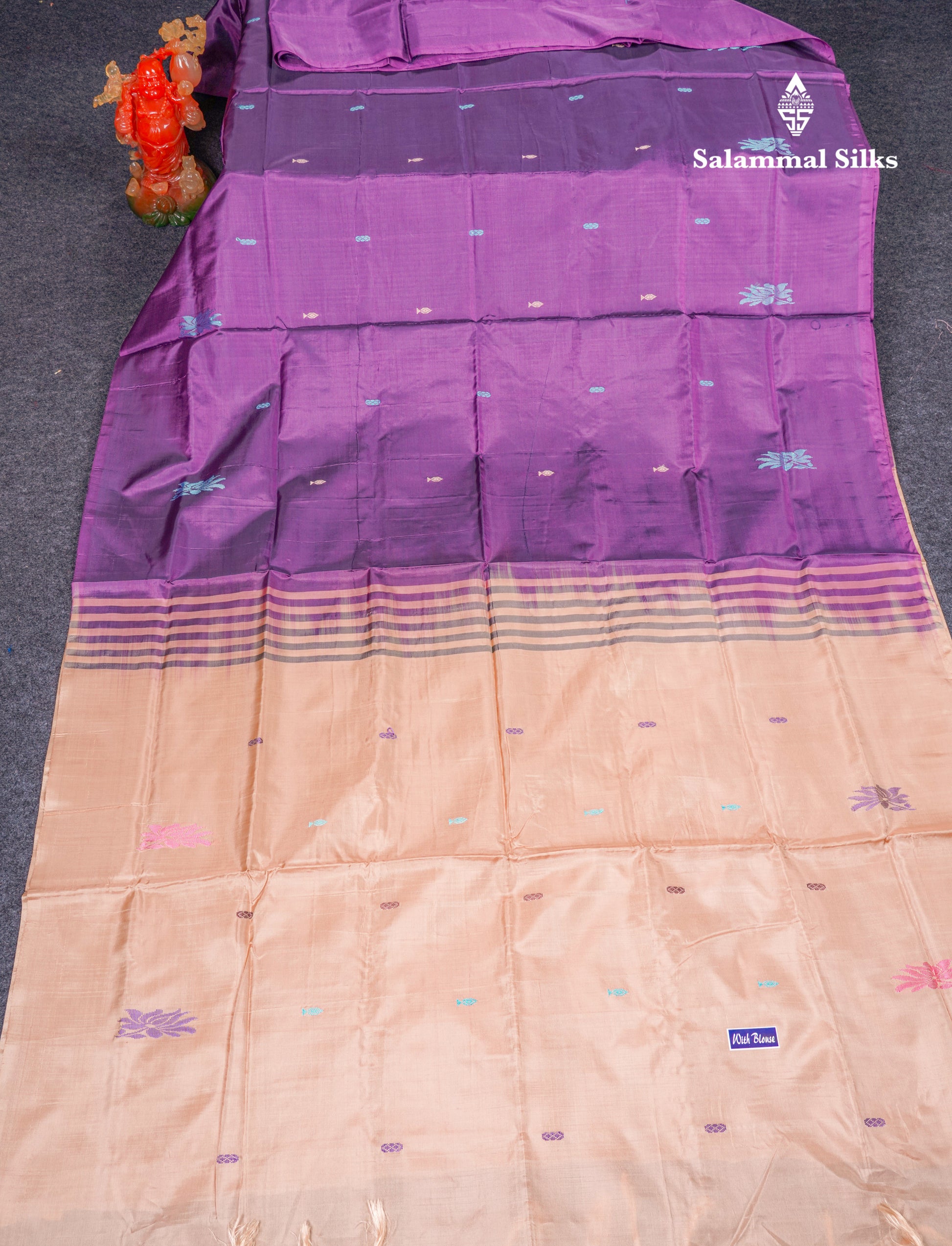 Purple Thread work Buttas Banana Pinth Saree (Vaazhainaar Pattu) With Contrast Sandal Blouse