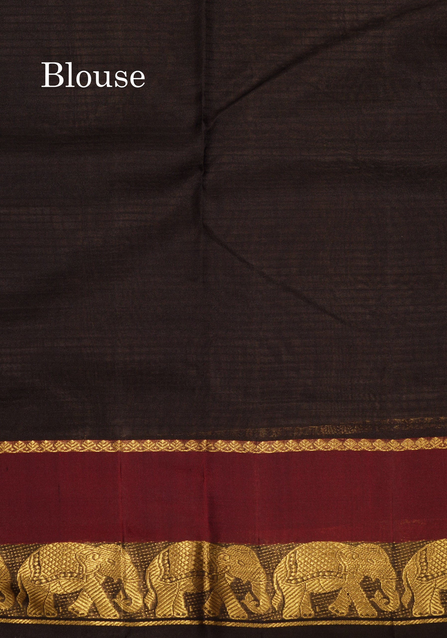 Salammal is known for its handloom sarees. In some sarees, there is cross-weaving between the body and the pallu, which is a sign of pure handloom sarees. This can be seen in Kanchipuram embossed sarees.