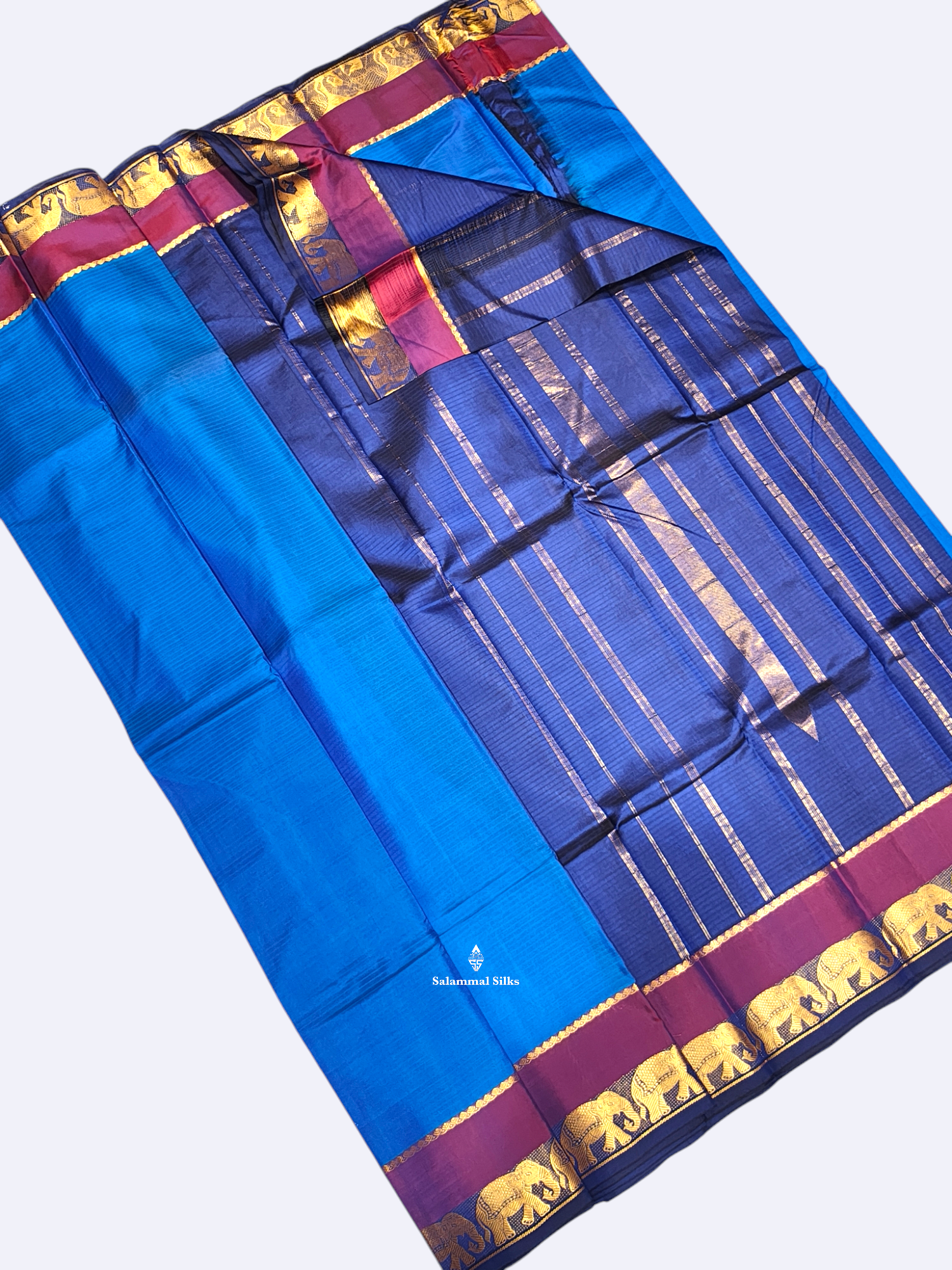 Ramar Blue Light Weight Beautiful Pure Silk Saree With Big Elephant Butta Border