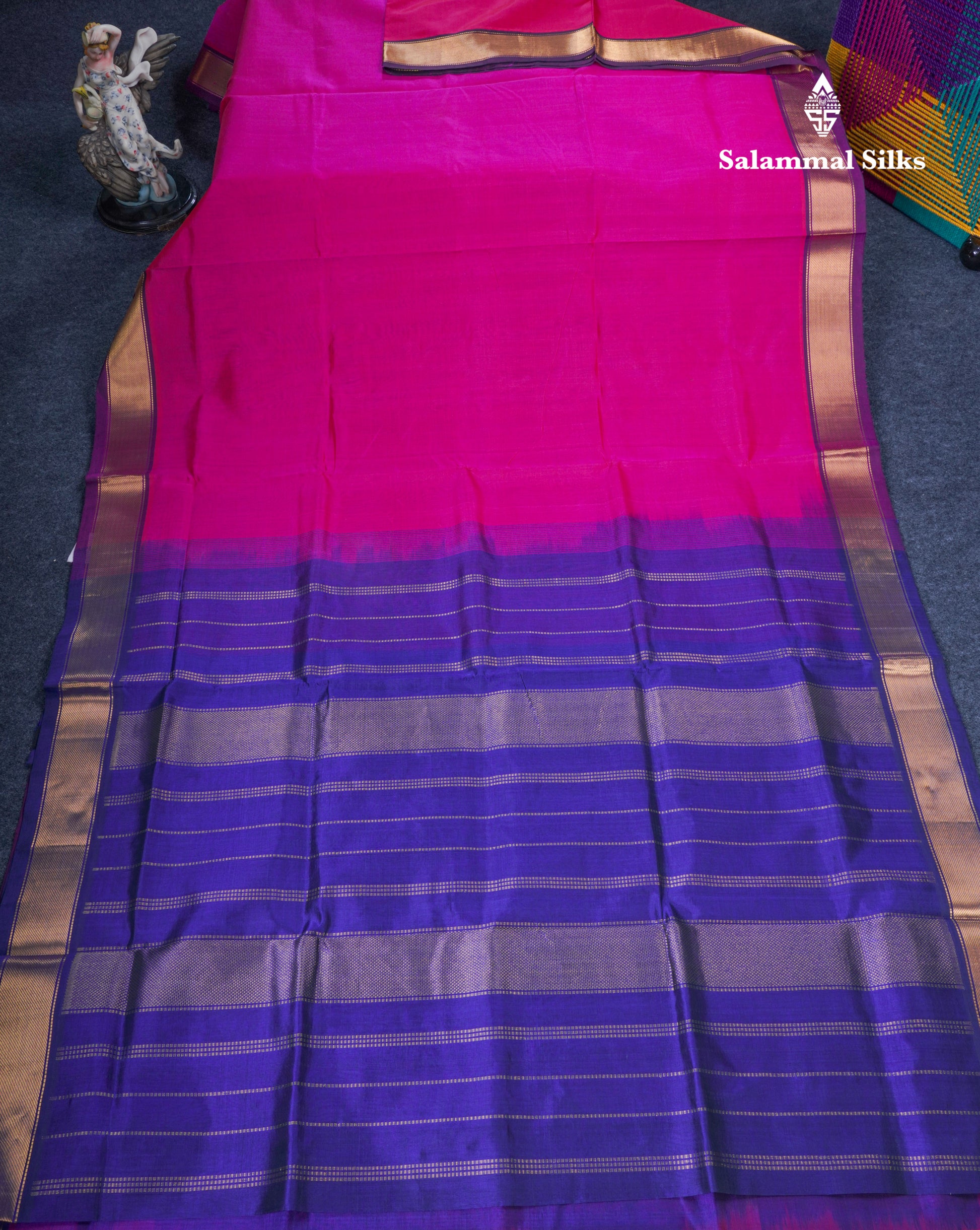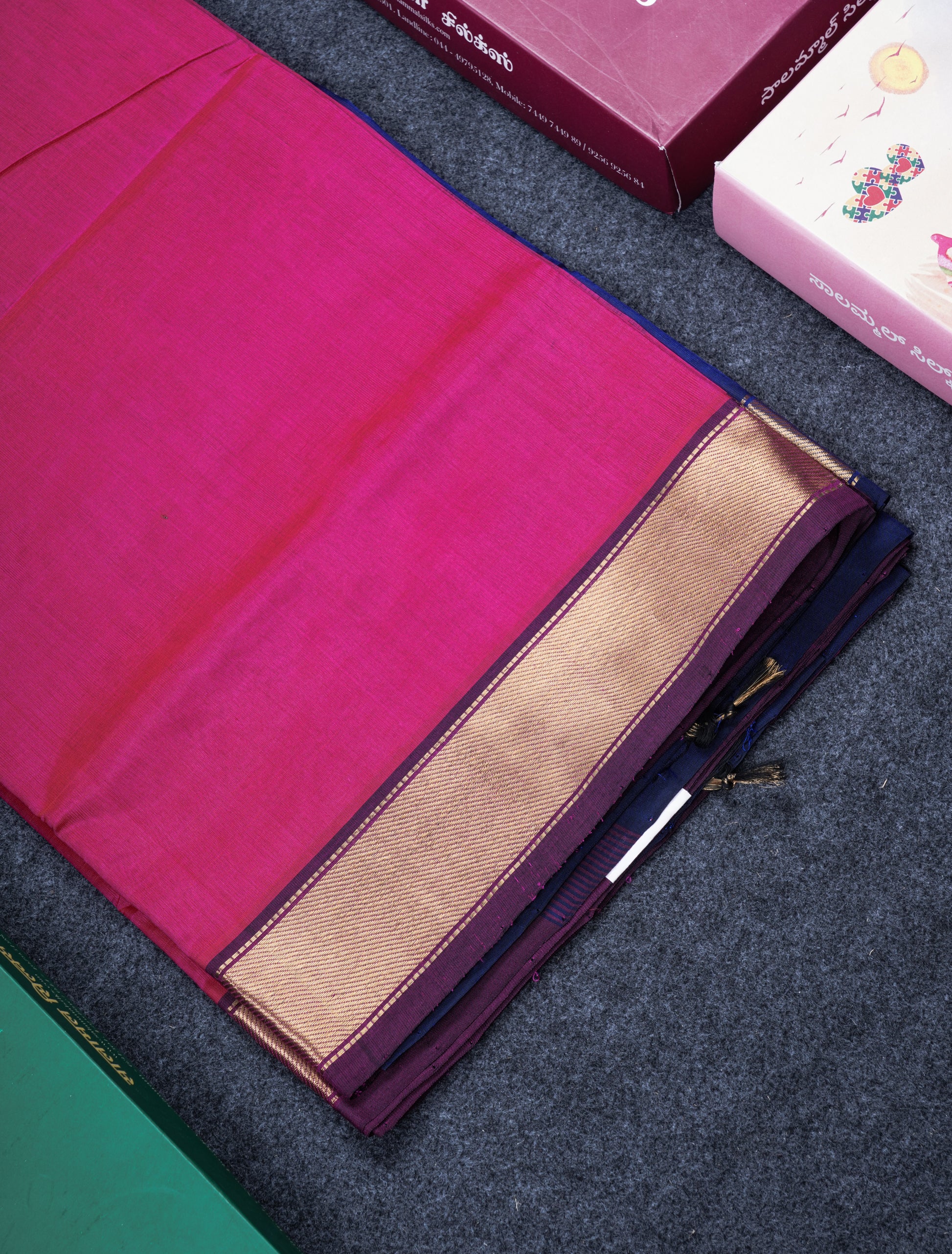 Rani Pink Pure Silk Cotton Saree With Contrast Royal Blue Blouse
