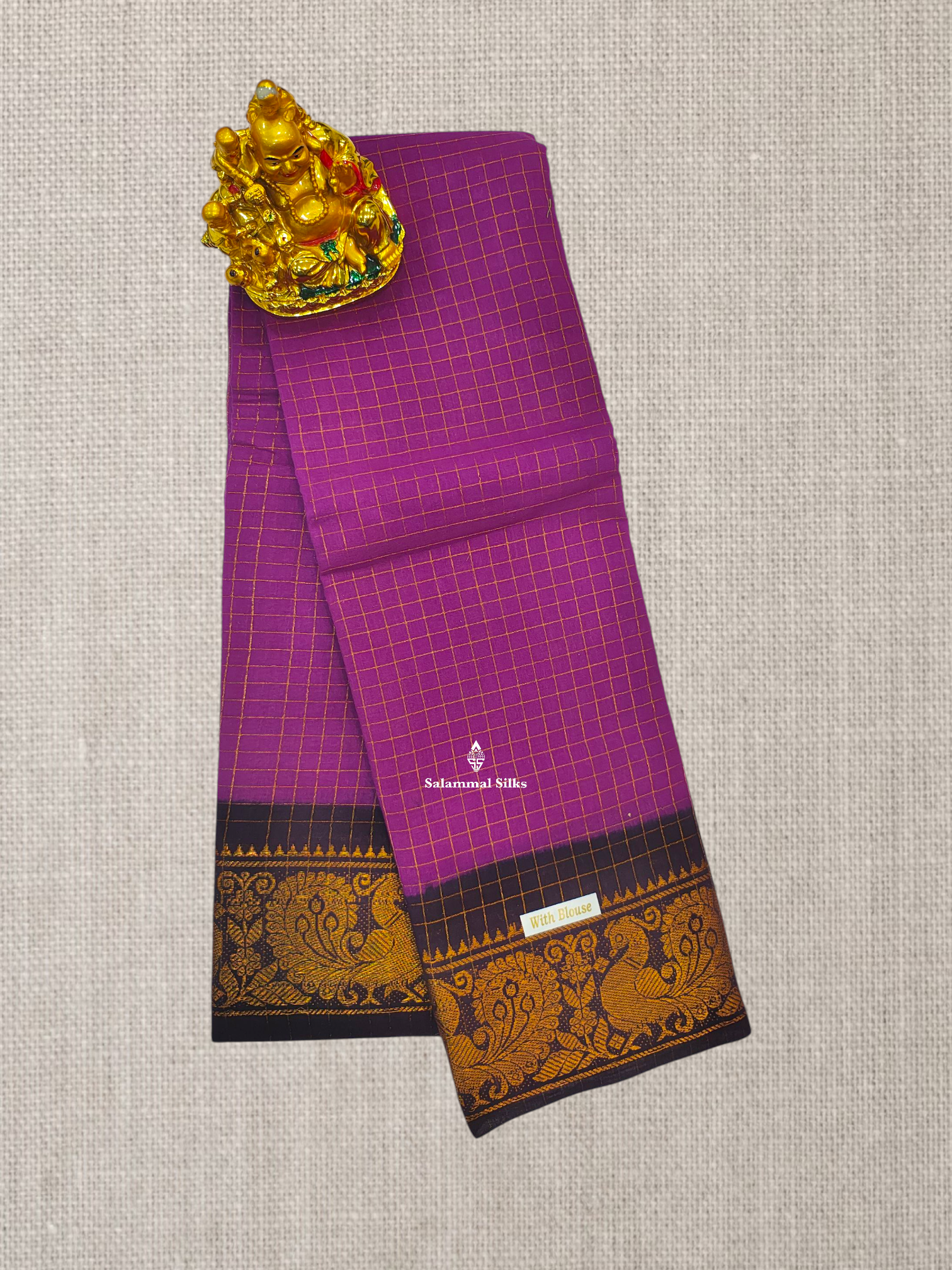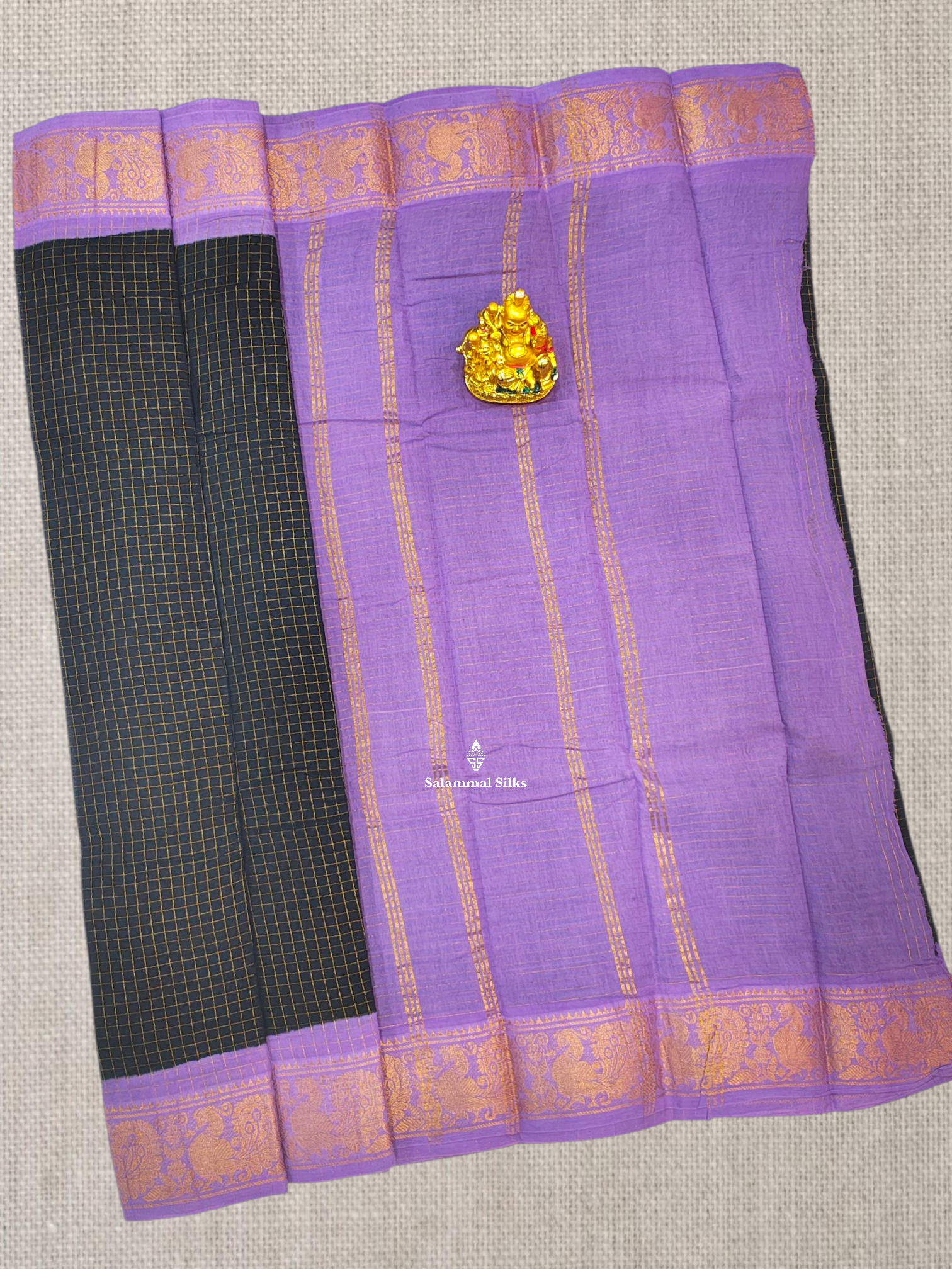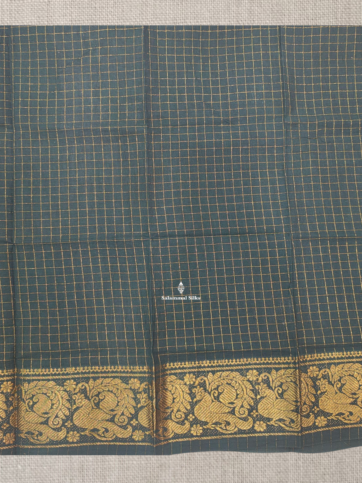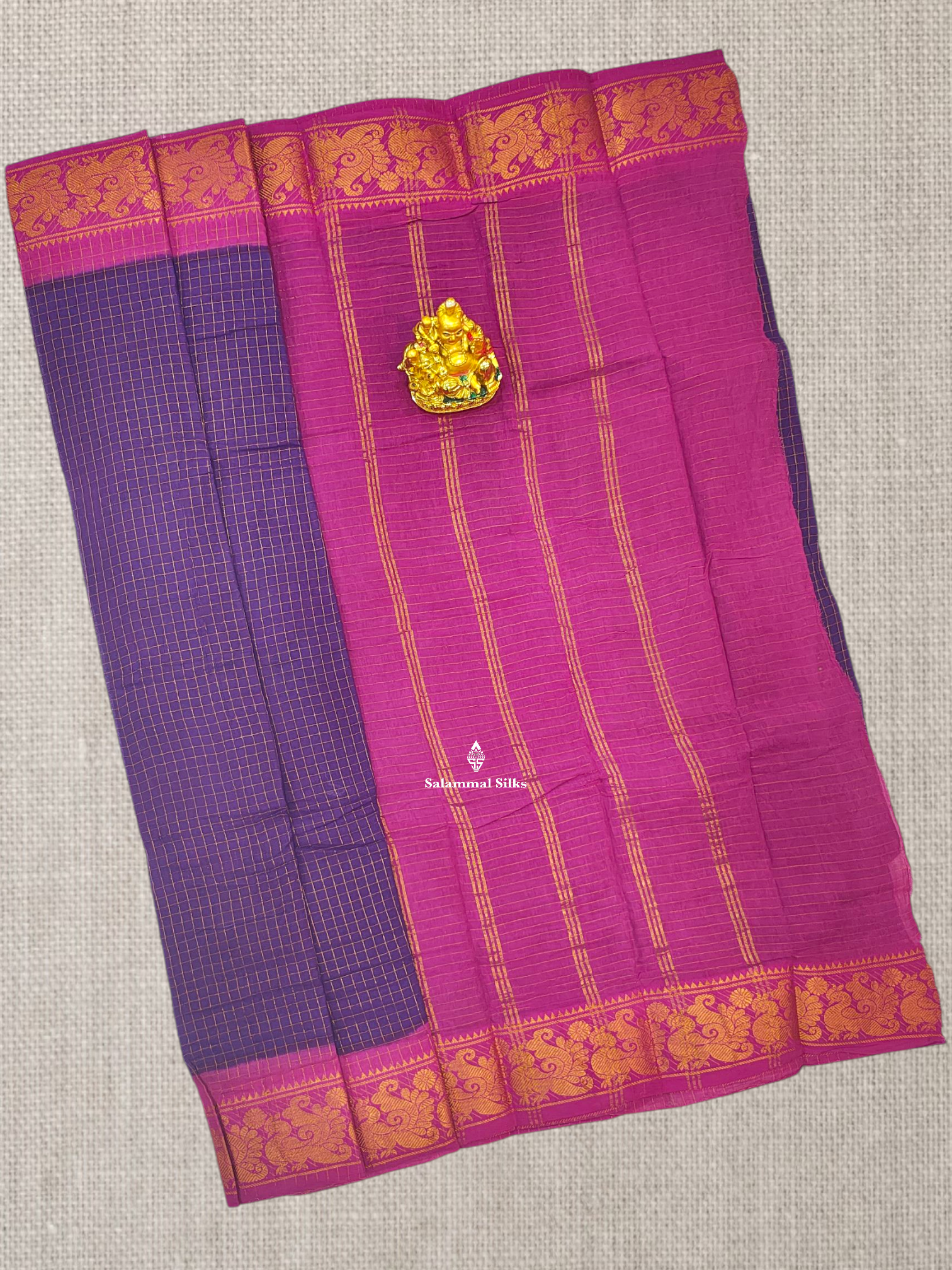 Salammal is known for its handloom sarees. In some sarees, there is cross-weaving between the body and the pallu, which is a sign of pure handloom sarees. This can be seen in Kanchipuram embossed sarees.