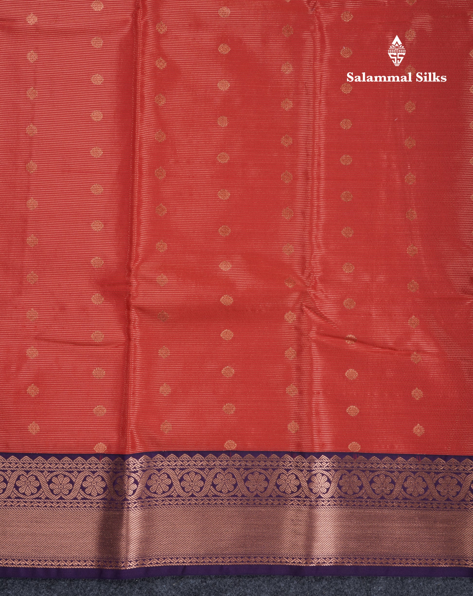 Reddish Maroon Vairaoosi Lines With Butta Semi Silk Saree With Contrast Purple Border