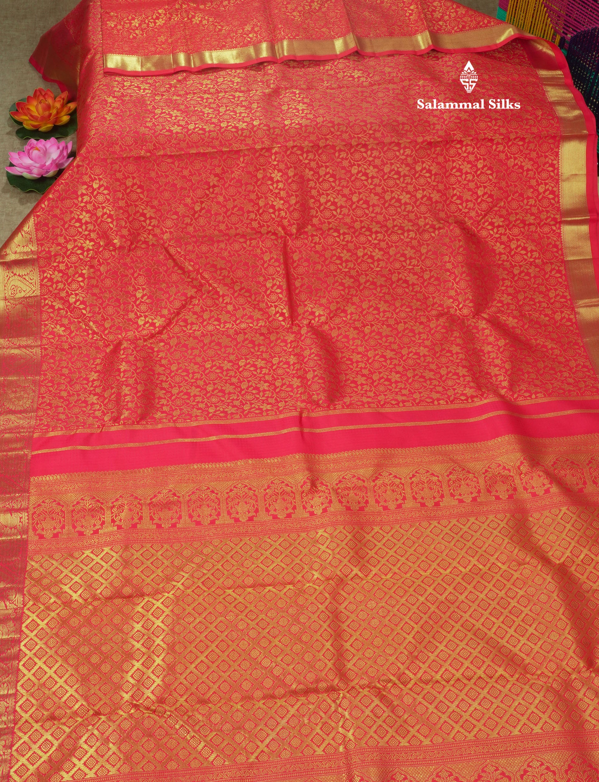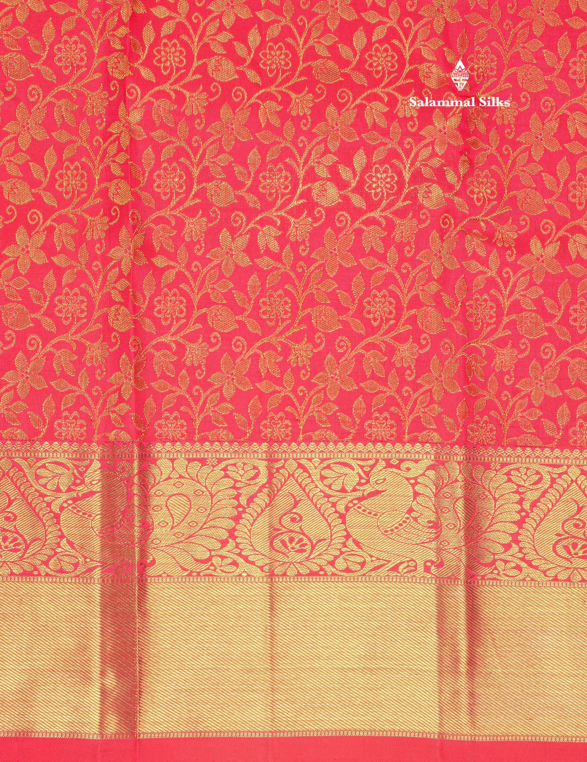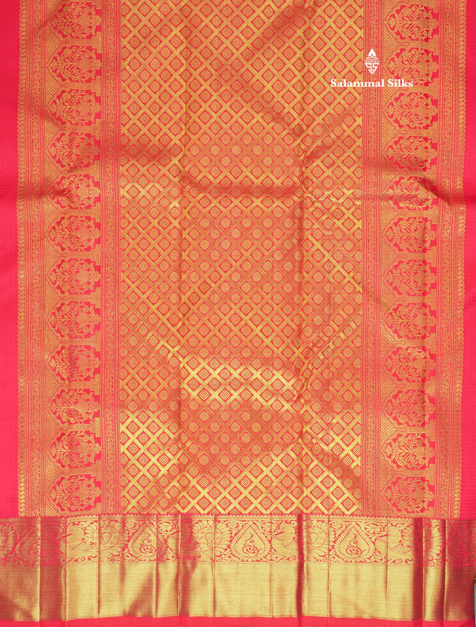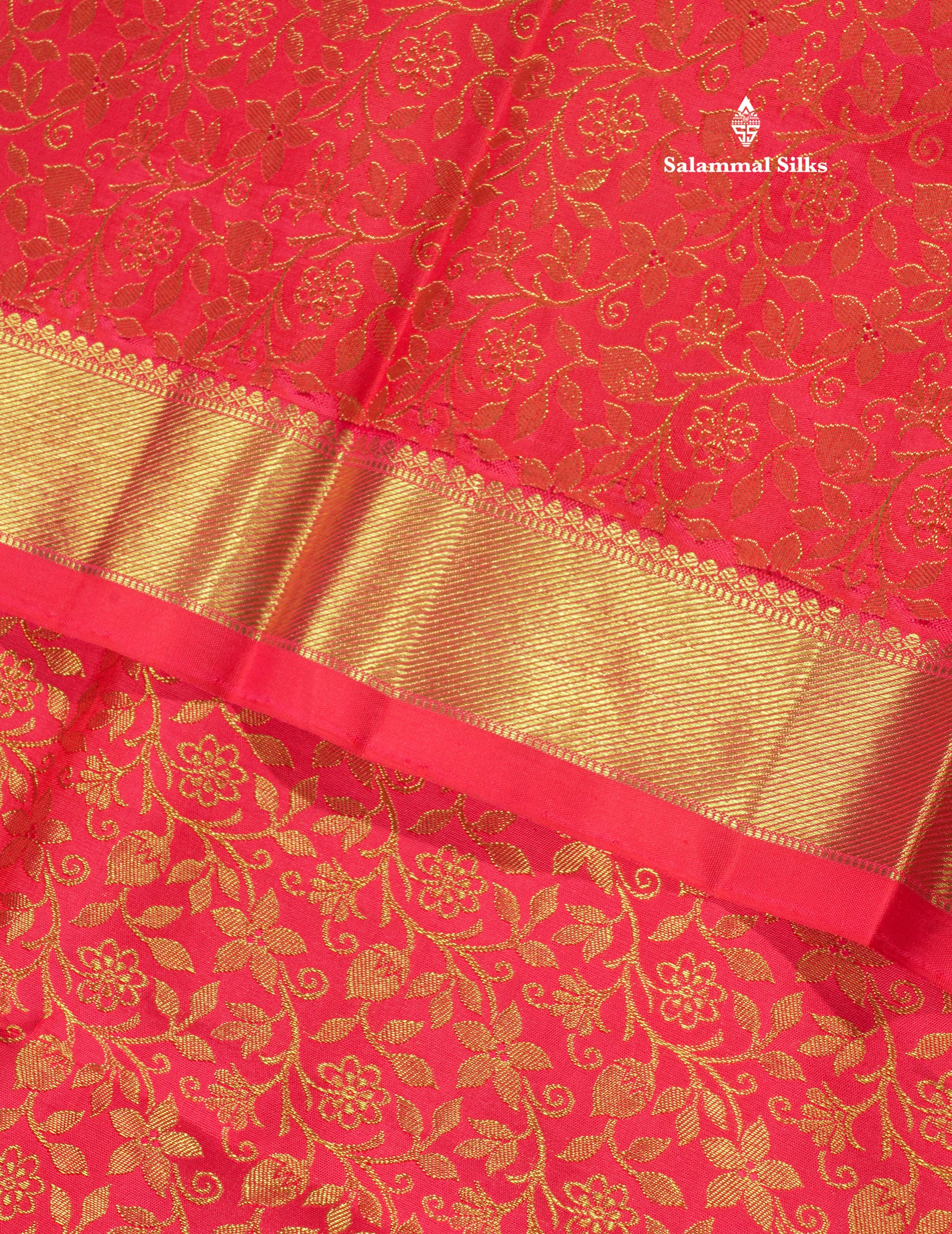 Salammal is known for its handloom sarees. In some sarees, there is cross-weaving between the body and the pallu, which is a sign of pure handloom sarees. This can be seen in Kanchipuram embossed sarees.