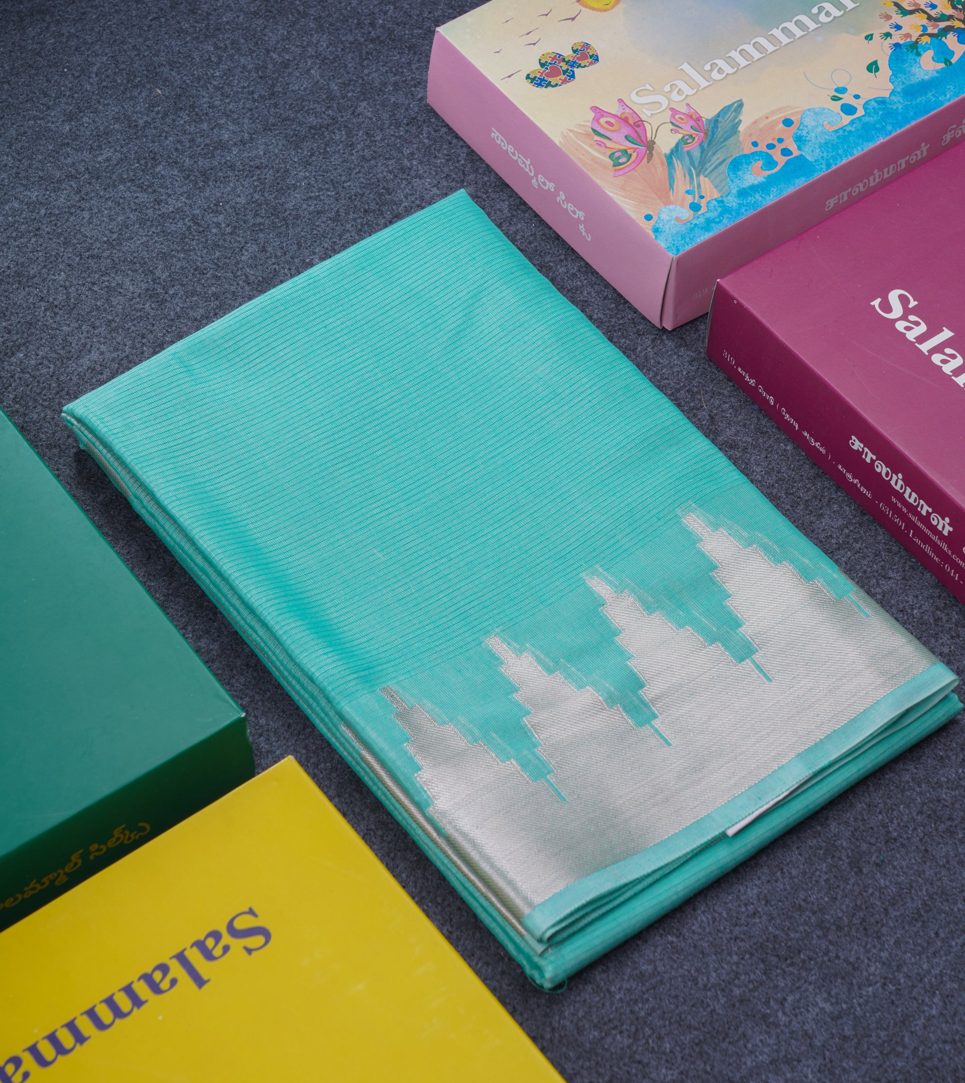Salammal is known for its handloom sarees. In some sarees, there is cross-weaving between the body and the pallu, which is a sign of pure handloom sarees. This can be seen in Kanchipuram embossed sarees.