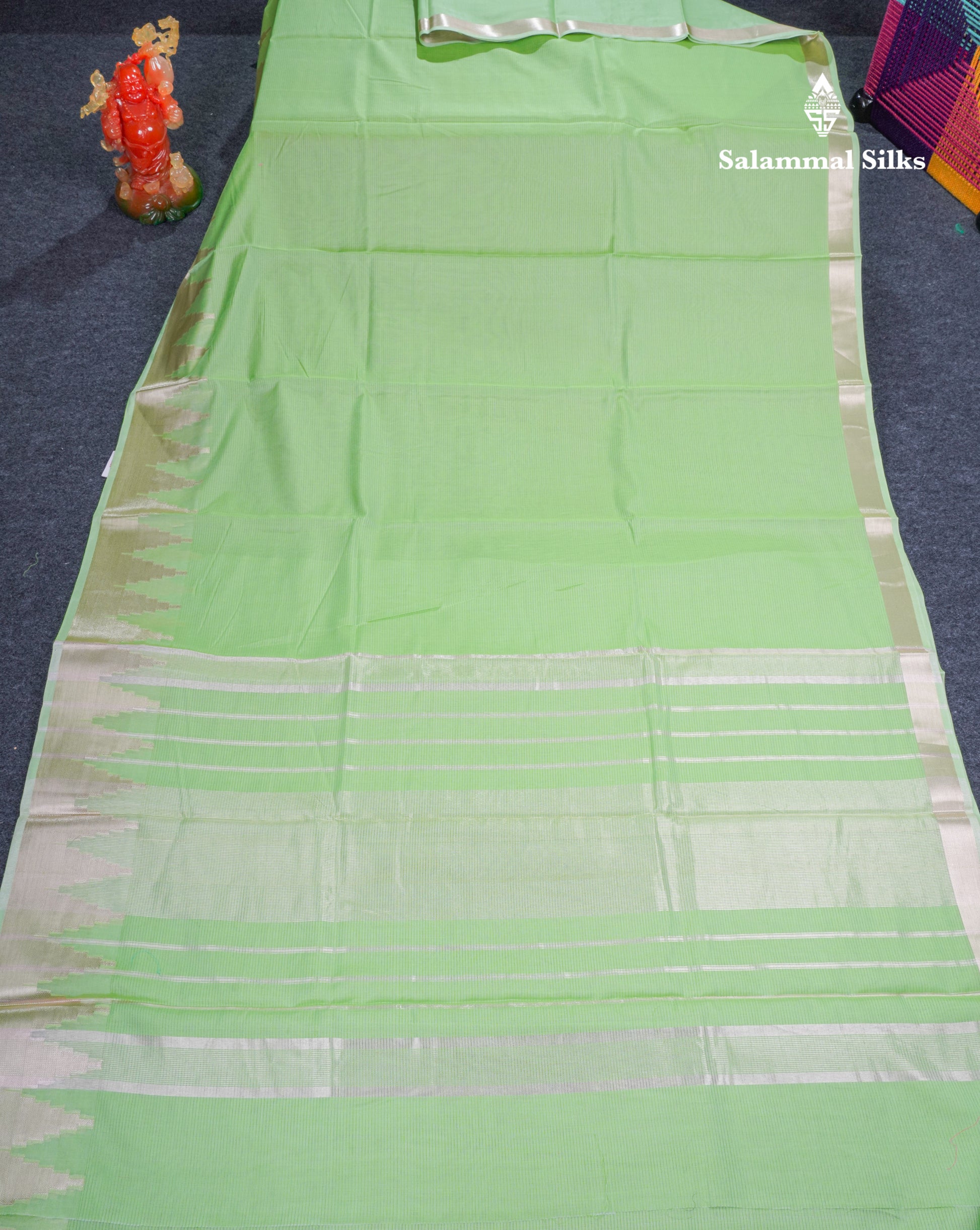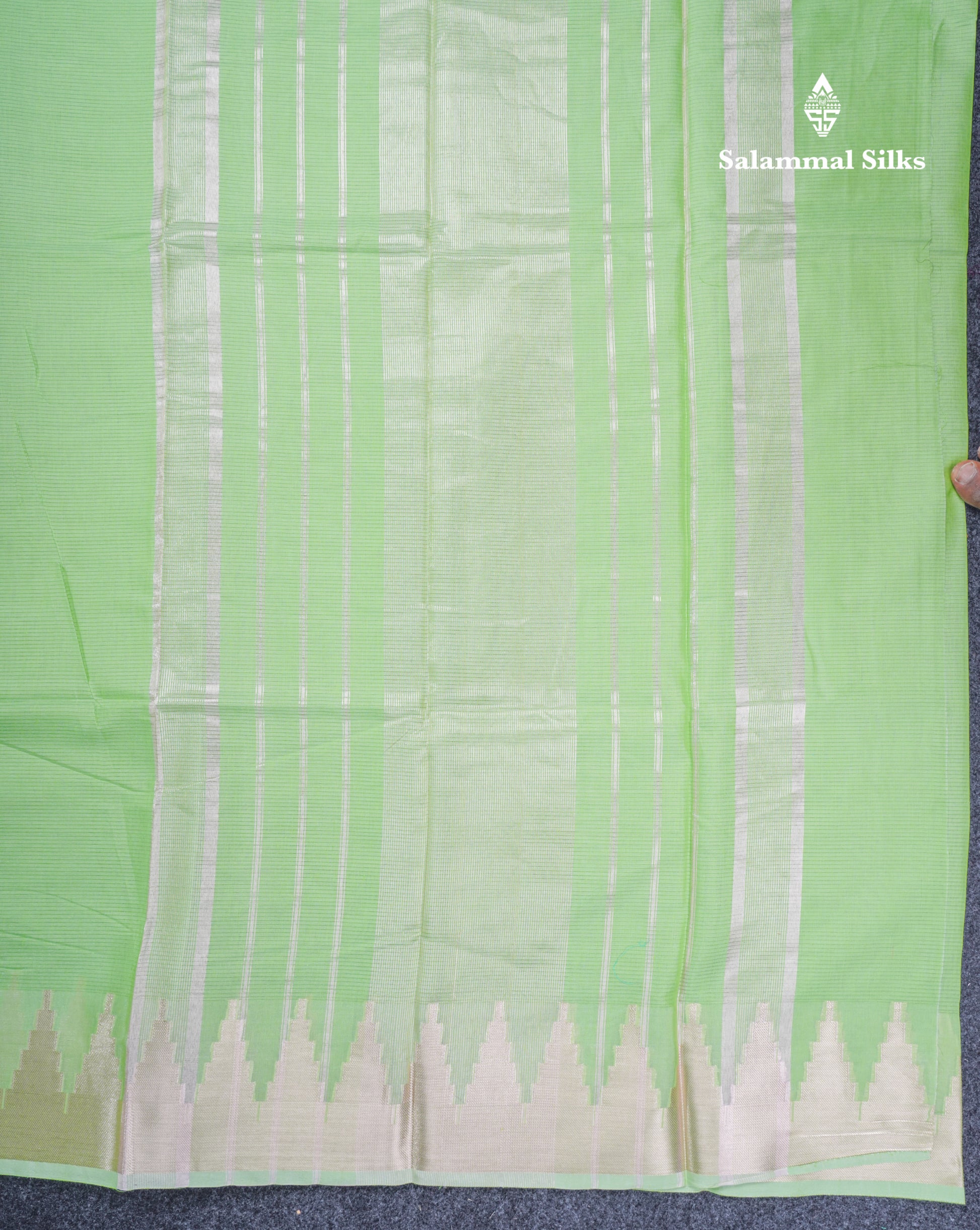 Rexona Green Beautiful Horizontal Lines Cotton Mix Fancy Saree With Silver Zari Temple Border