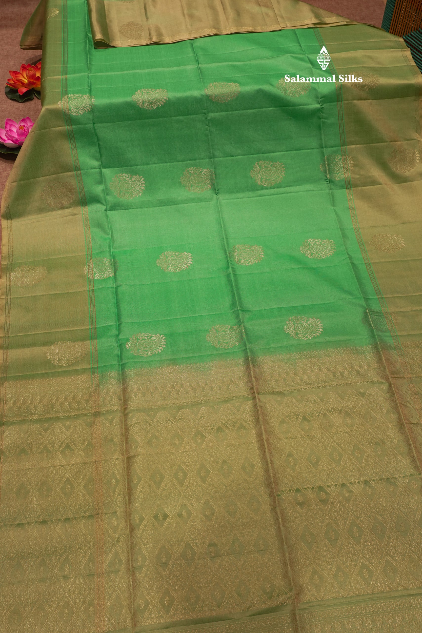 Rexona Green Colour Pure Kanjivaram Soft Silk Saree With Light Elaichi Green Border