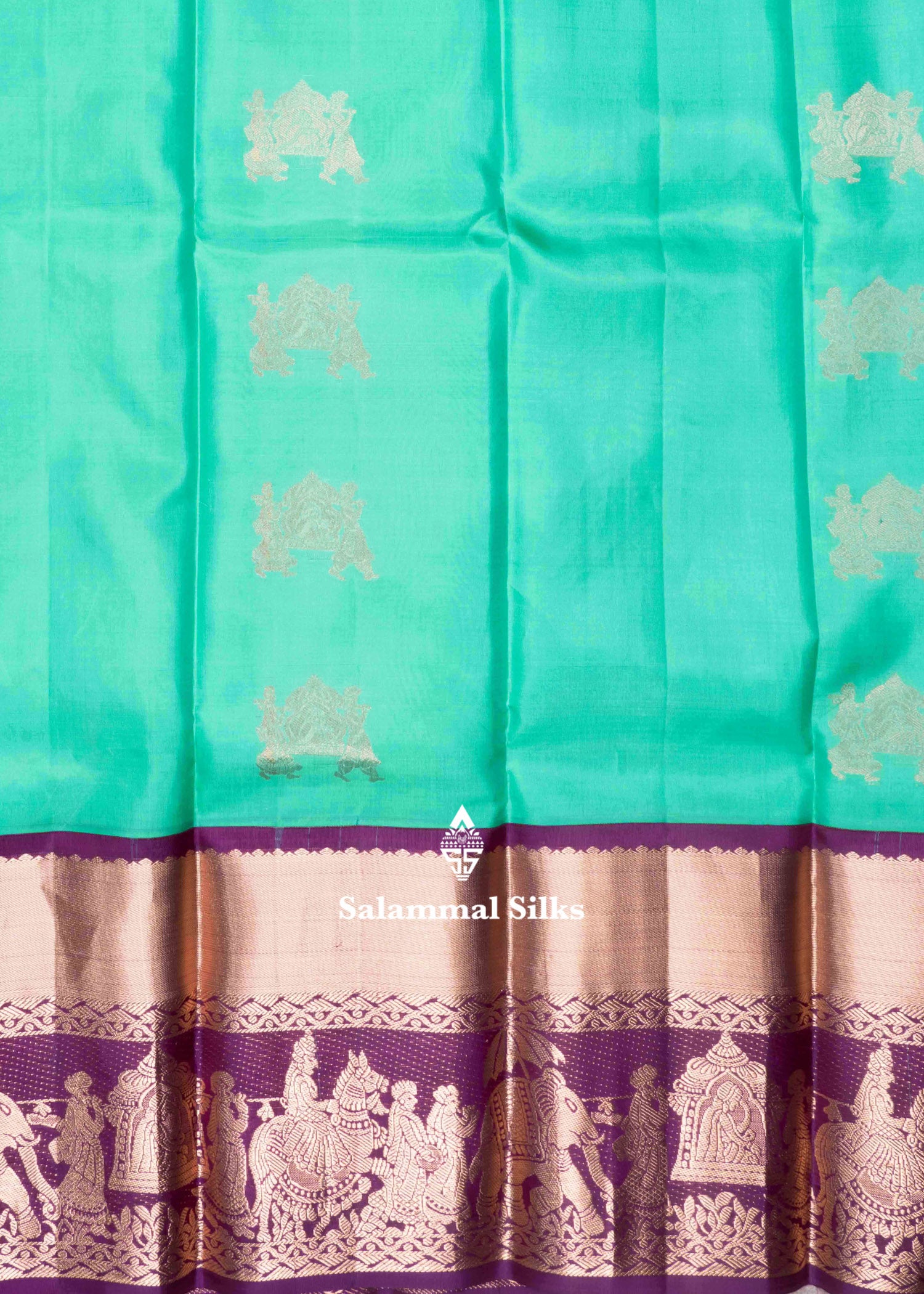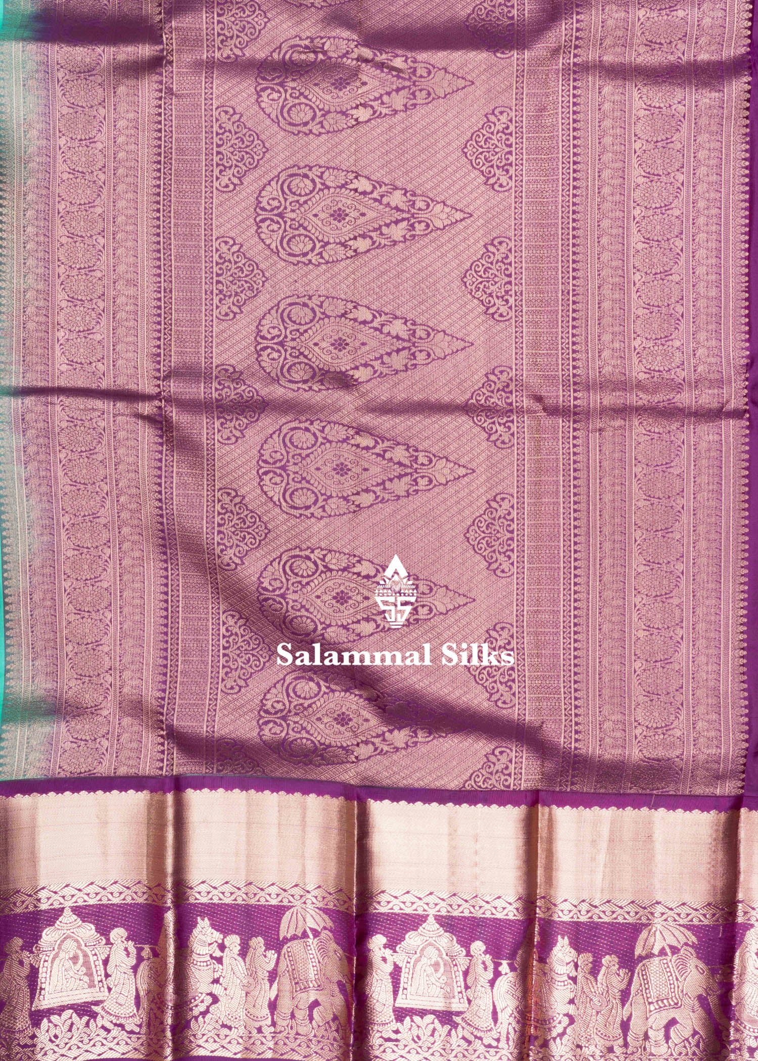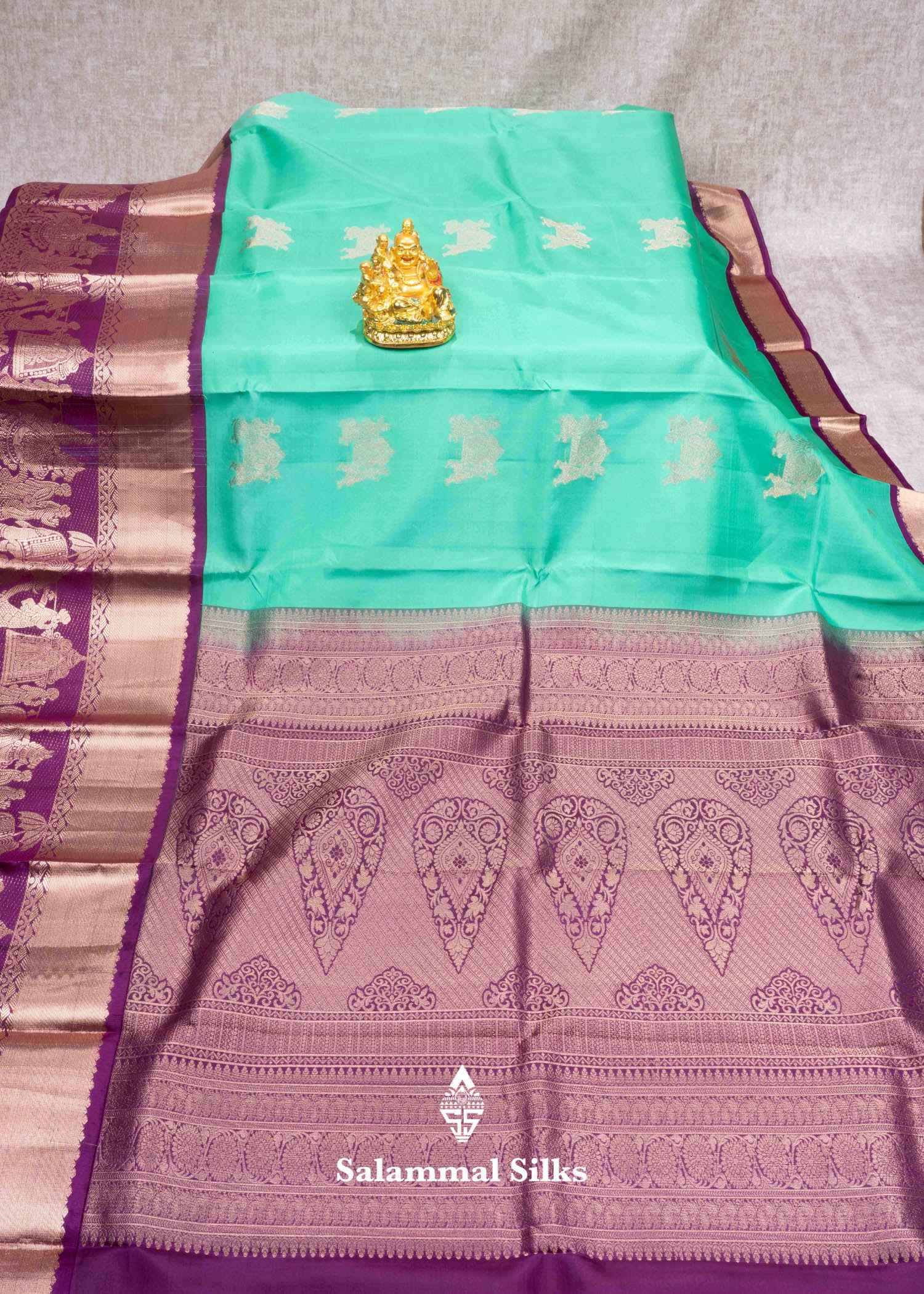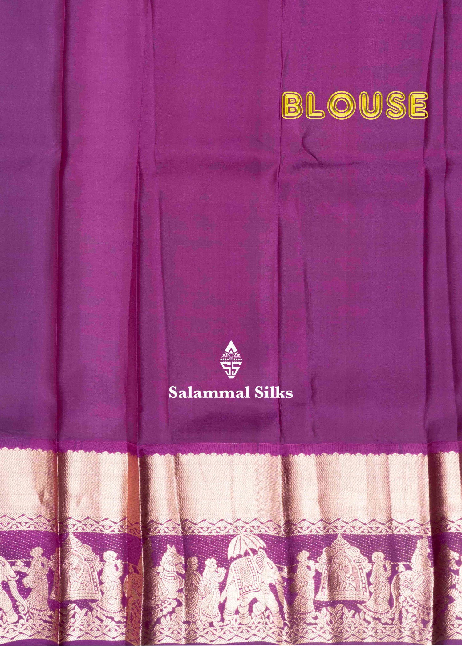 Rexona Green Color Kanjivaram Pure Silk Saree with Pallakku Fancy Border and Magenta Blouse