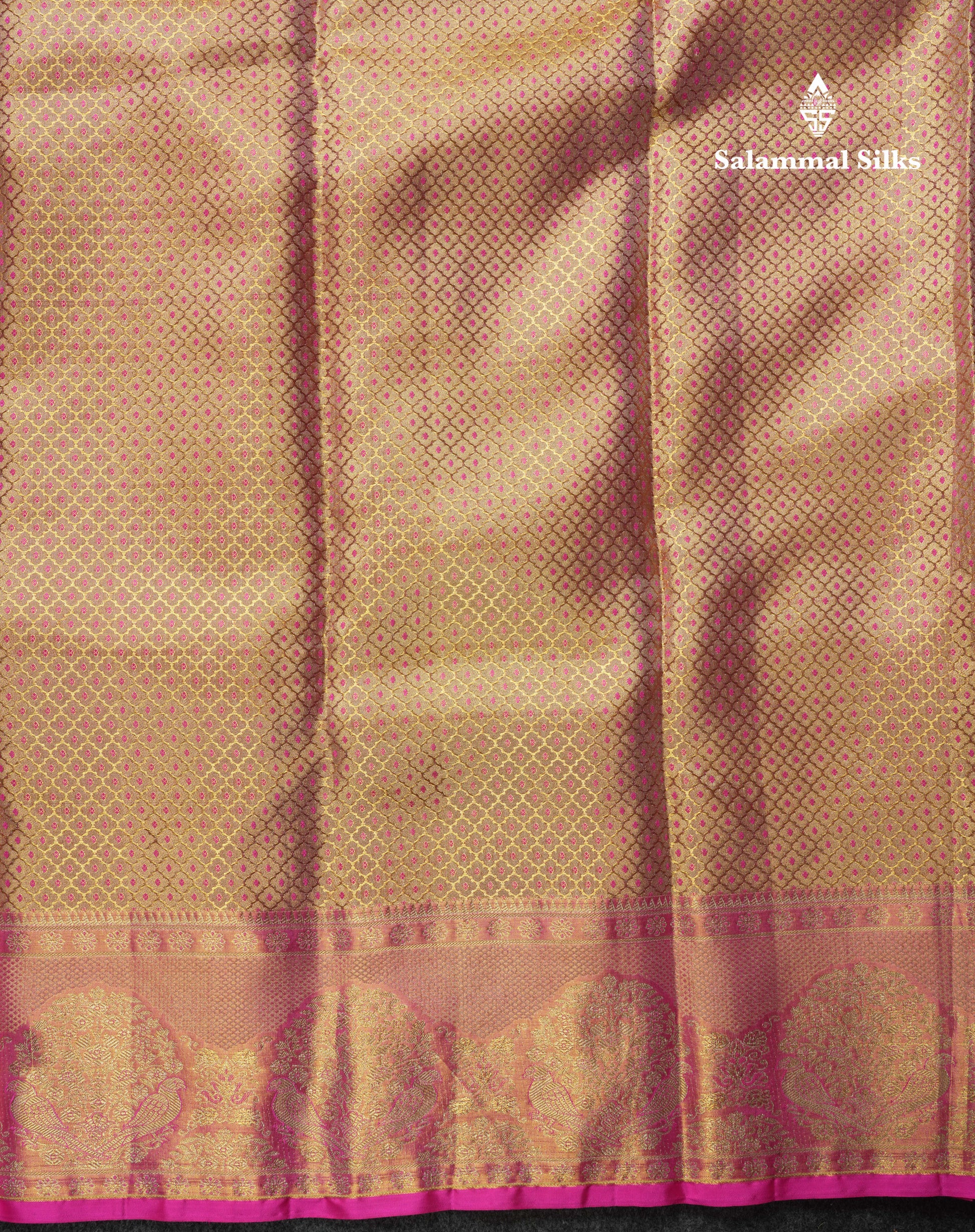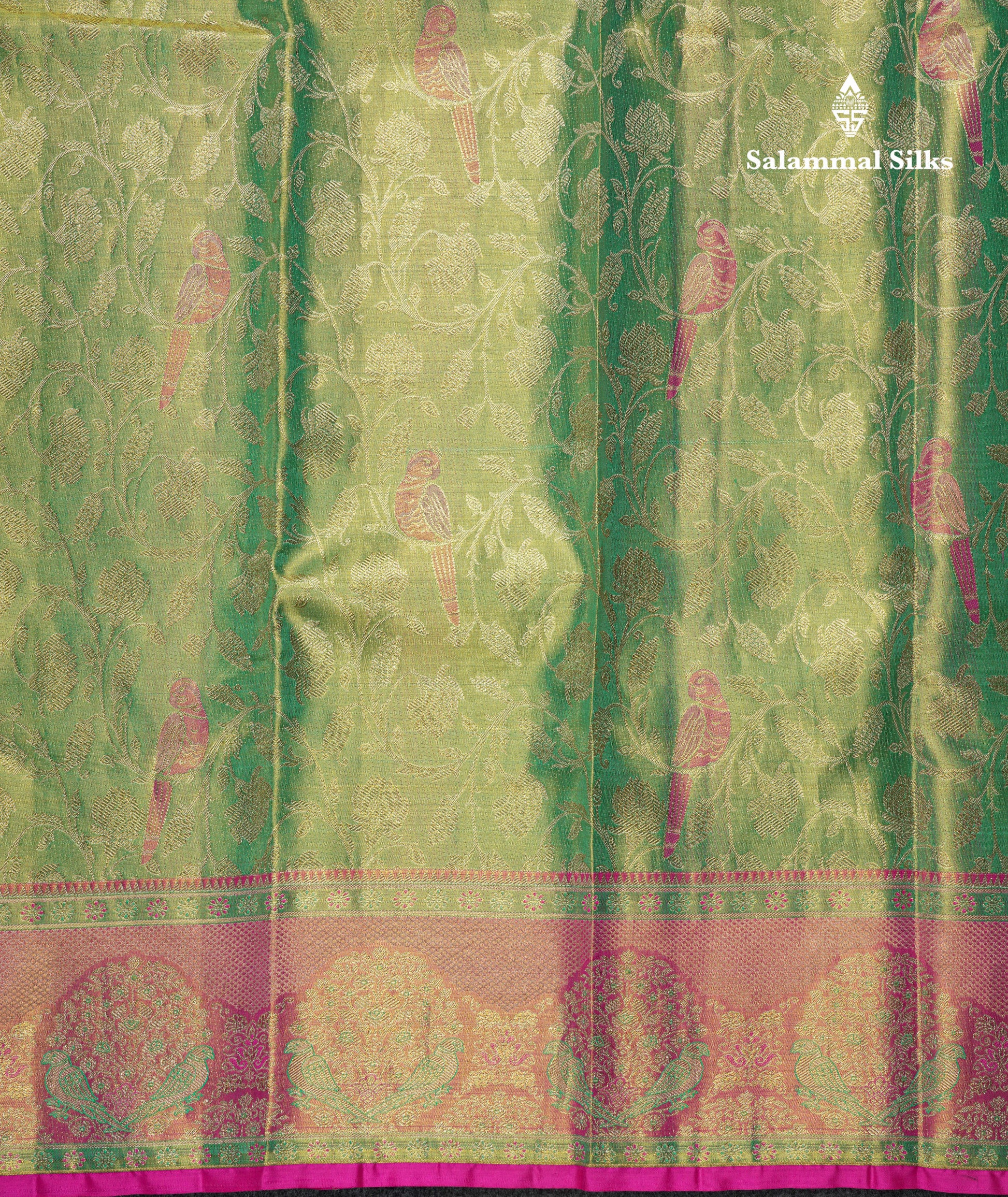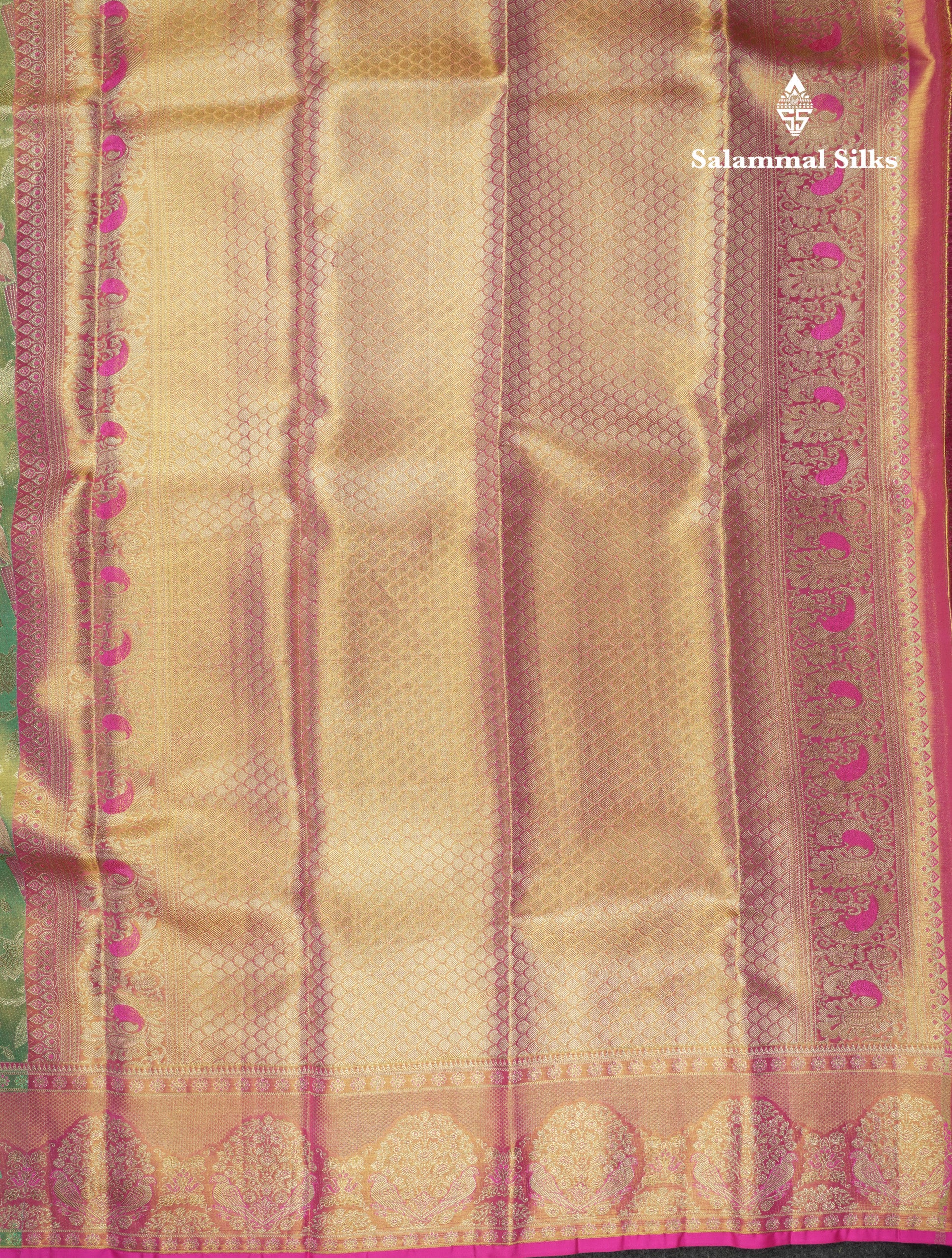 Salammal is known for its handloom sarees. In some sarees, there is cross-weaving between the body and the pallu, which is a sign of pure handloom sarees. This can be seen in Kanchipuram embossed sarees.