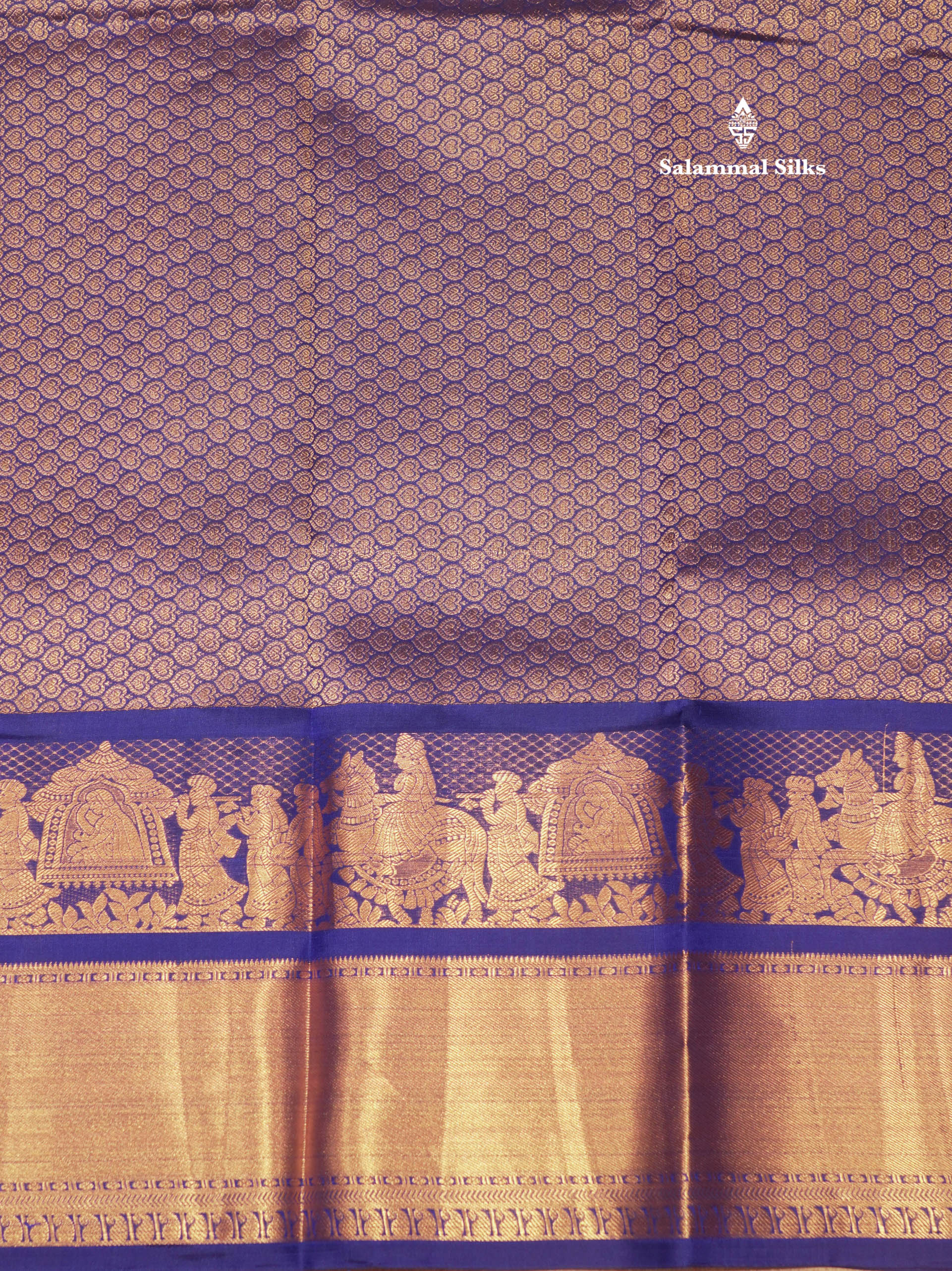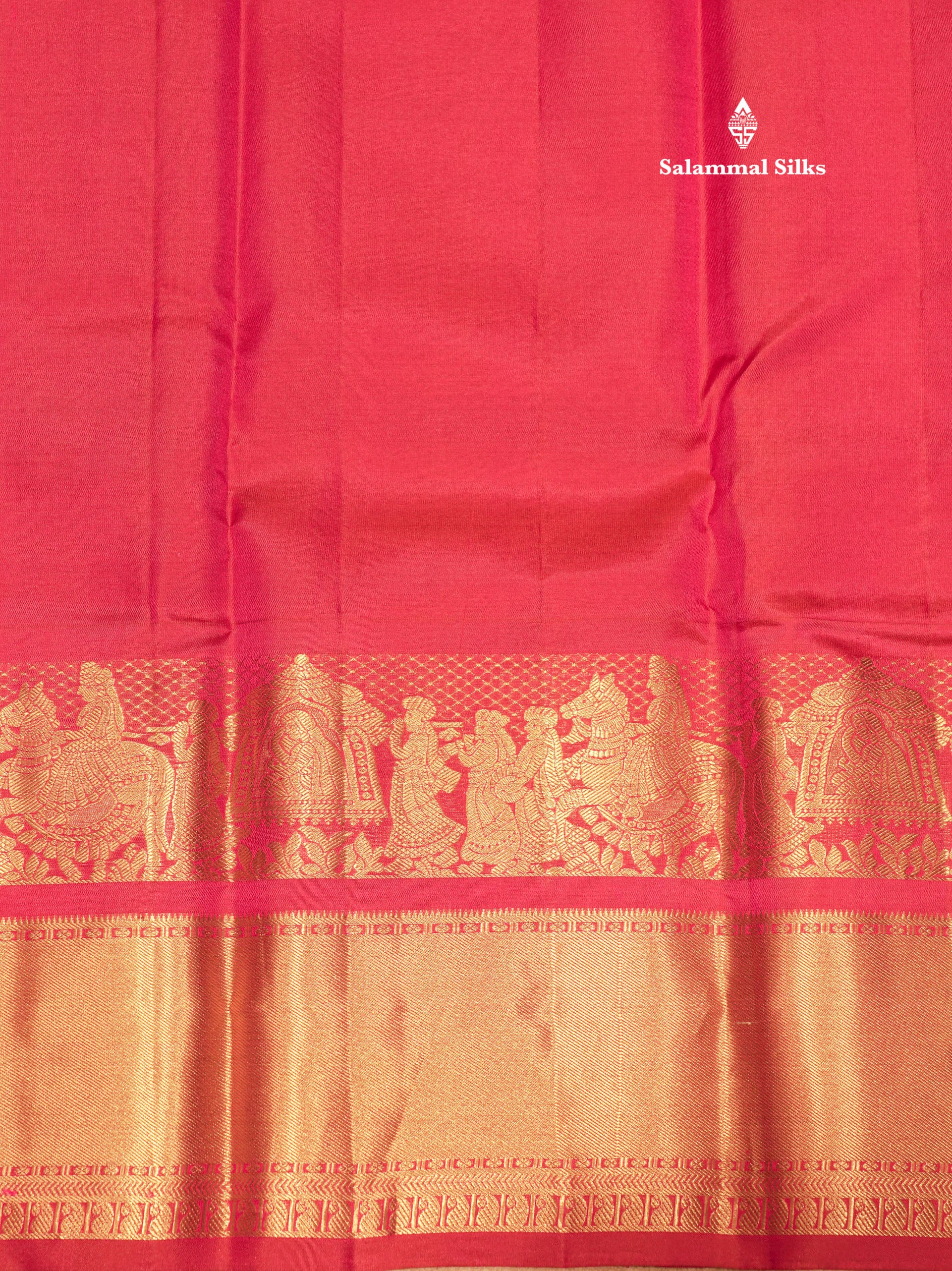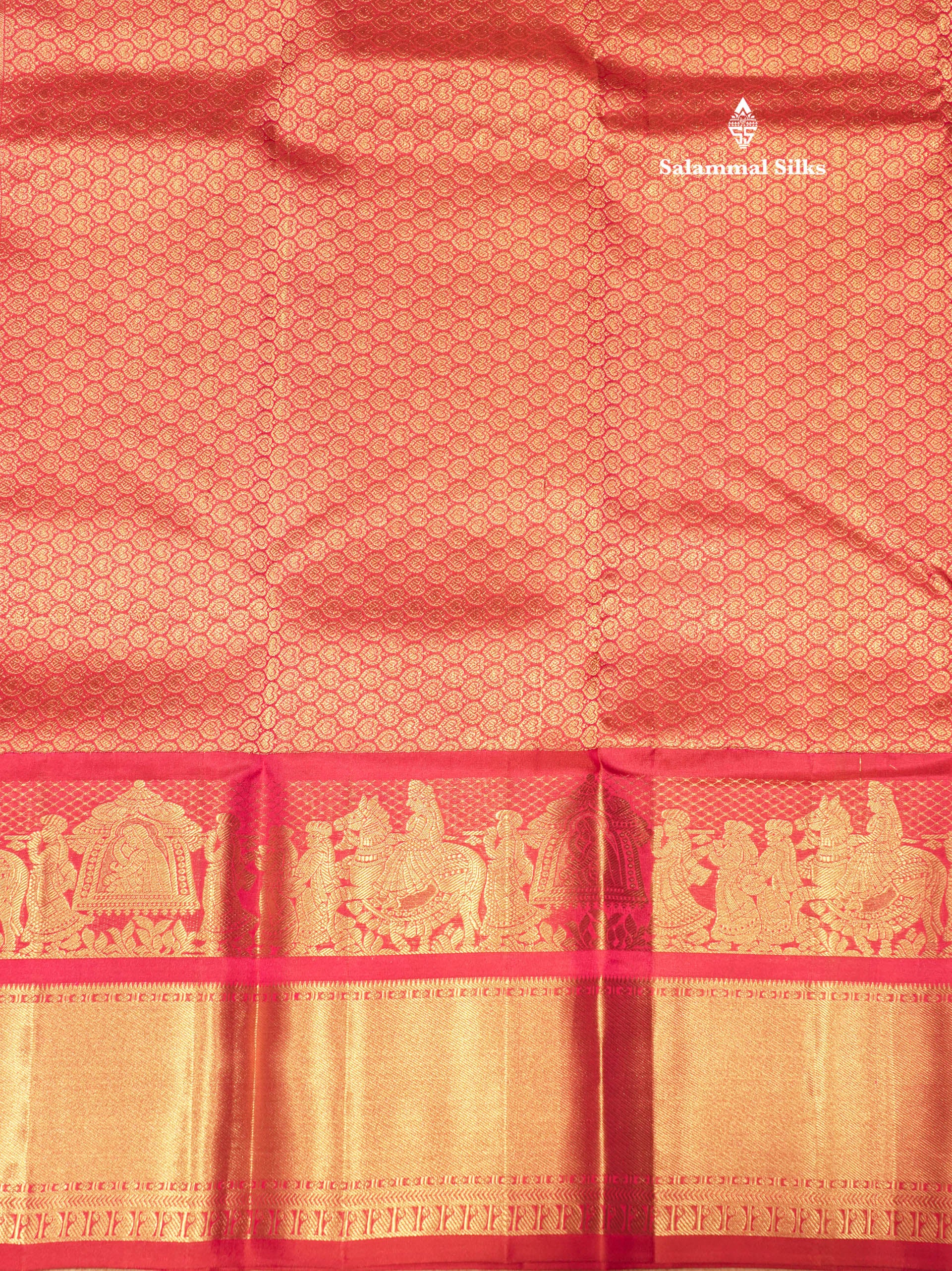 Salammal is known for its handloom sarees. In some sarees, there is cross-weaving between the body and the pallu, which is a sign of pure handloom sarees. This can be seen in Kanchipuram embossed sarees.