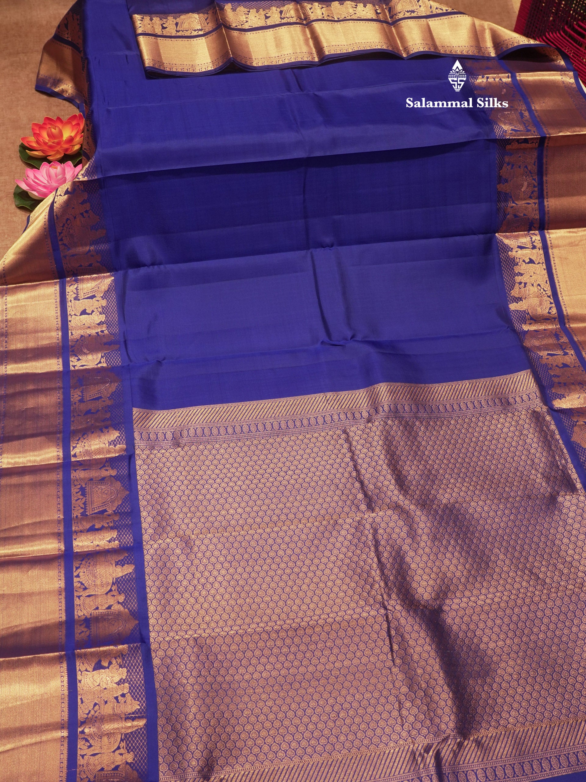 Royal Blue Colour Pure Kanjivaram Silk Saree with Pallakku Border