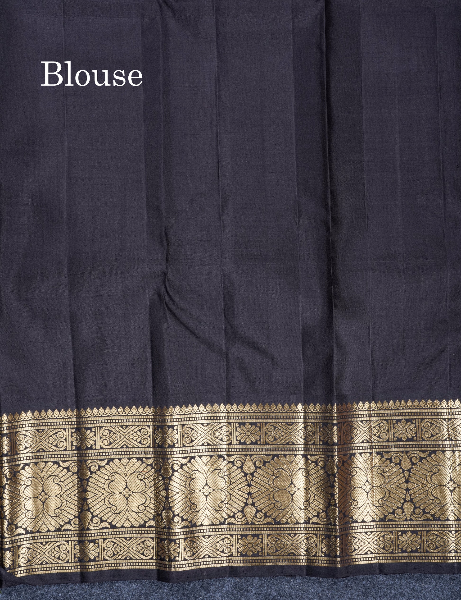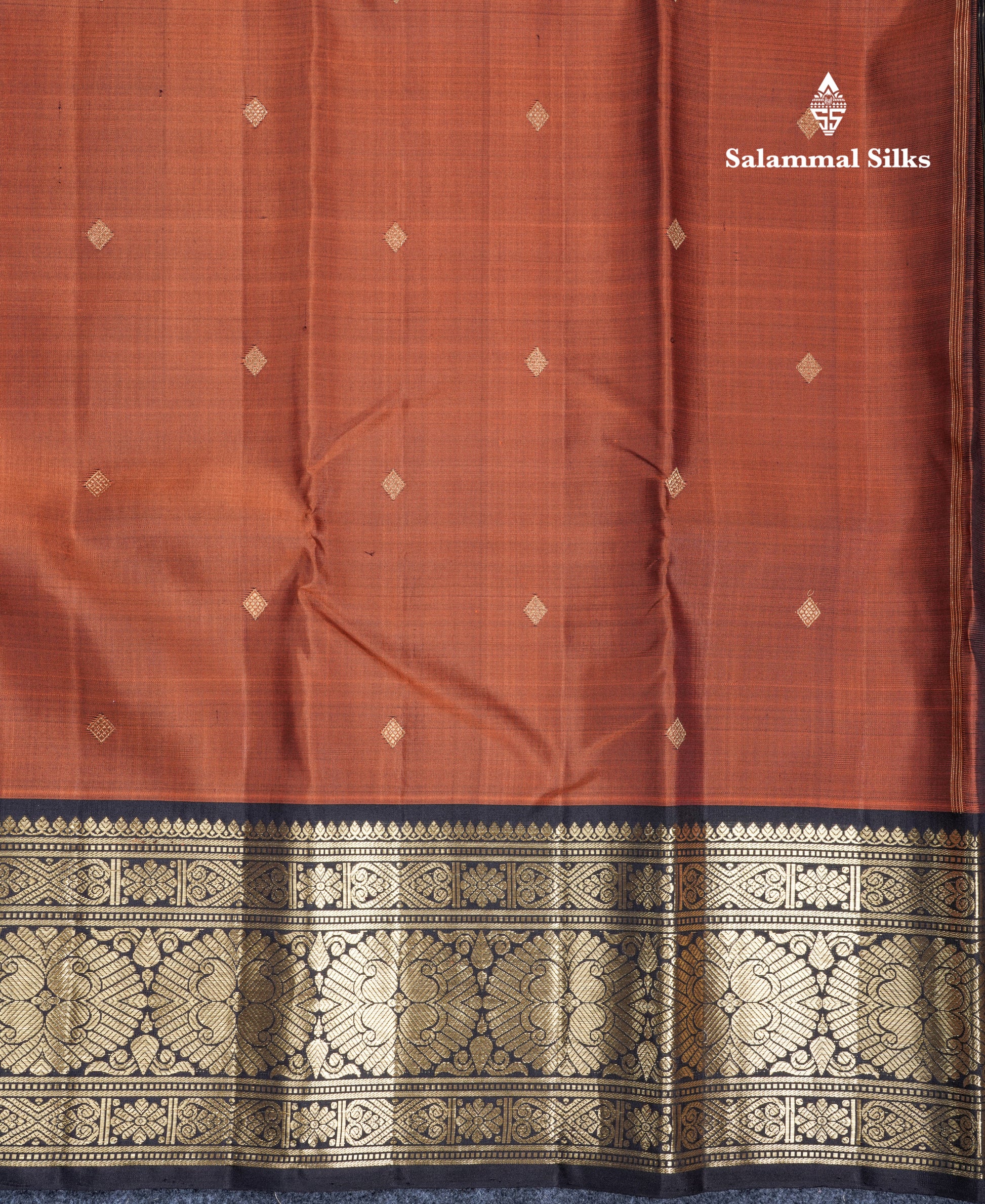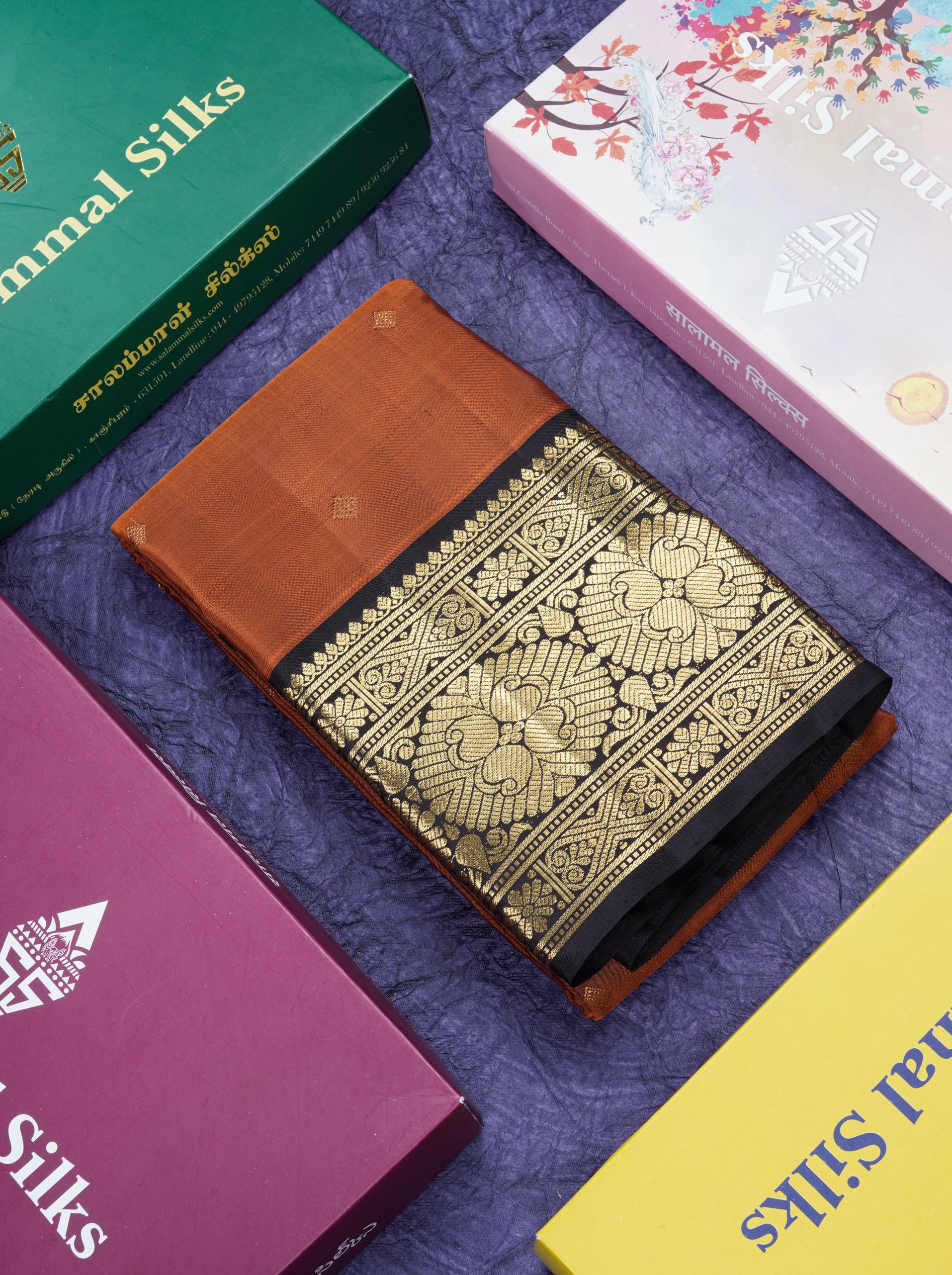 Rust Orange Pure Kanjivaram Silk Saree With Contrast Dark Brown Traditional Border