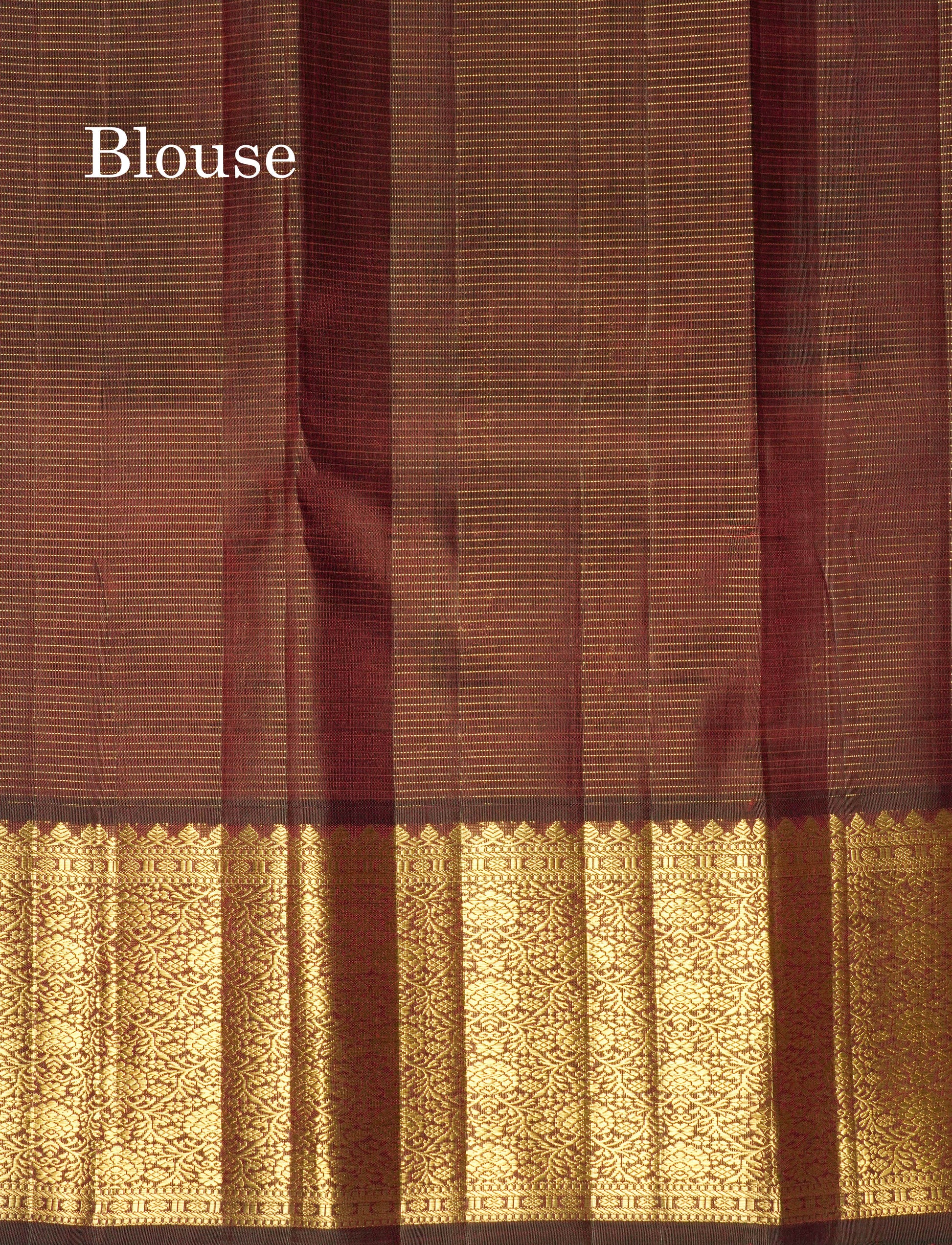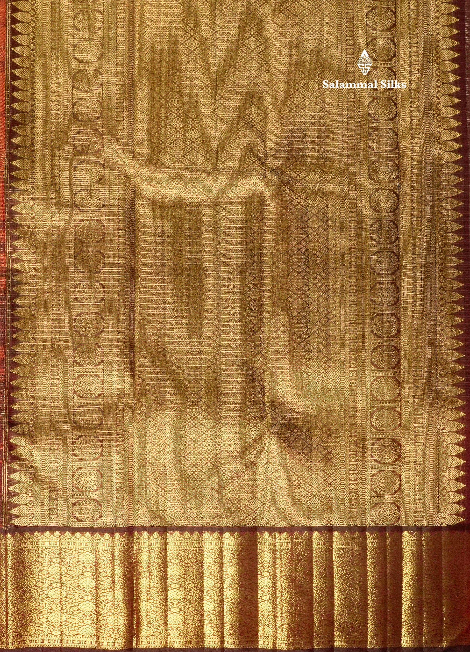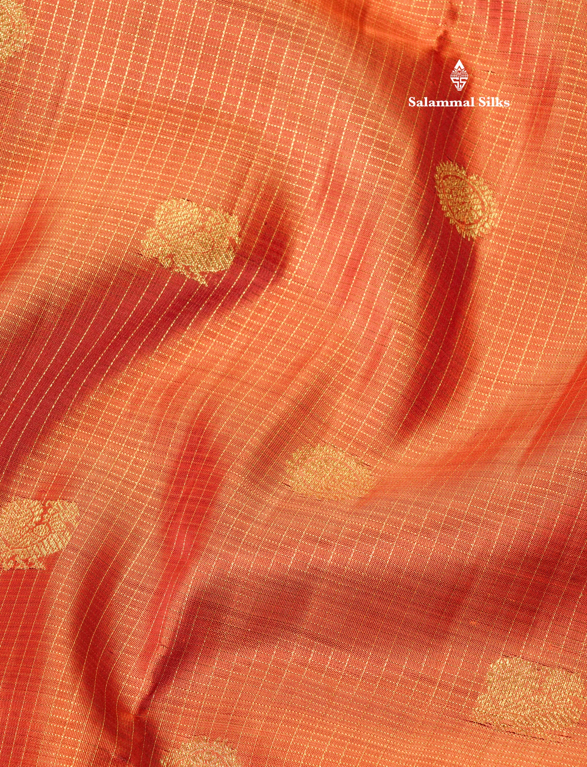 Rust Orange Tiny Zari Checks Pure Kanjivaram Silk Saree 2G Zari with Contrast Brown Border