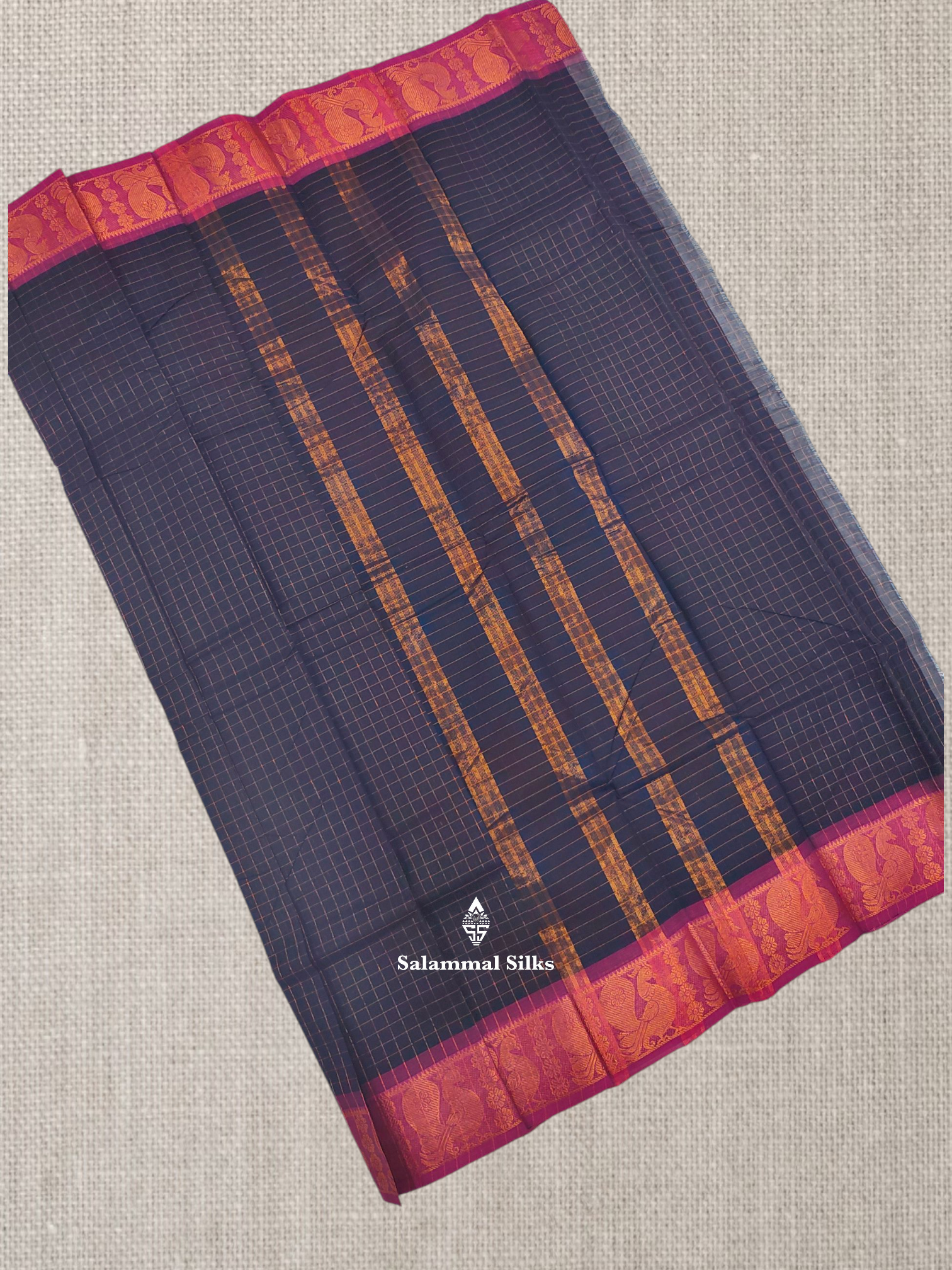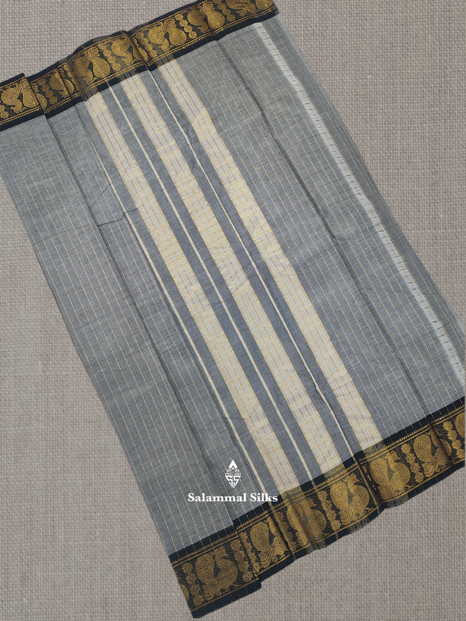 Salammal is known for its handloom sarees. In some sarees, there is cross-weaving between the body and the pallu, which is a sign of pure handloom sarees. This can be seen in Kanchipuram embossed sarees.