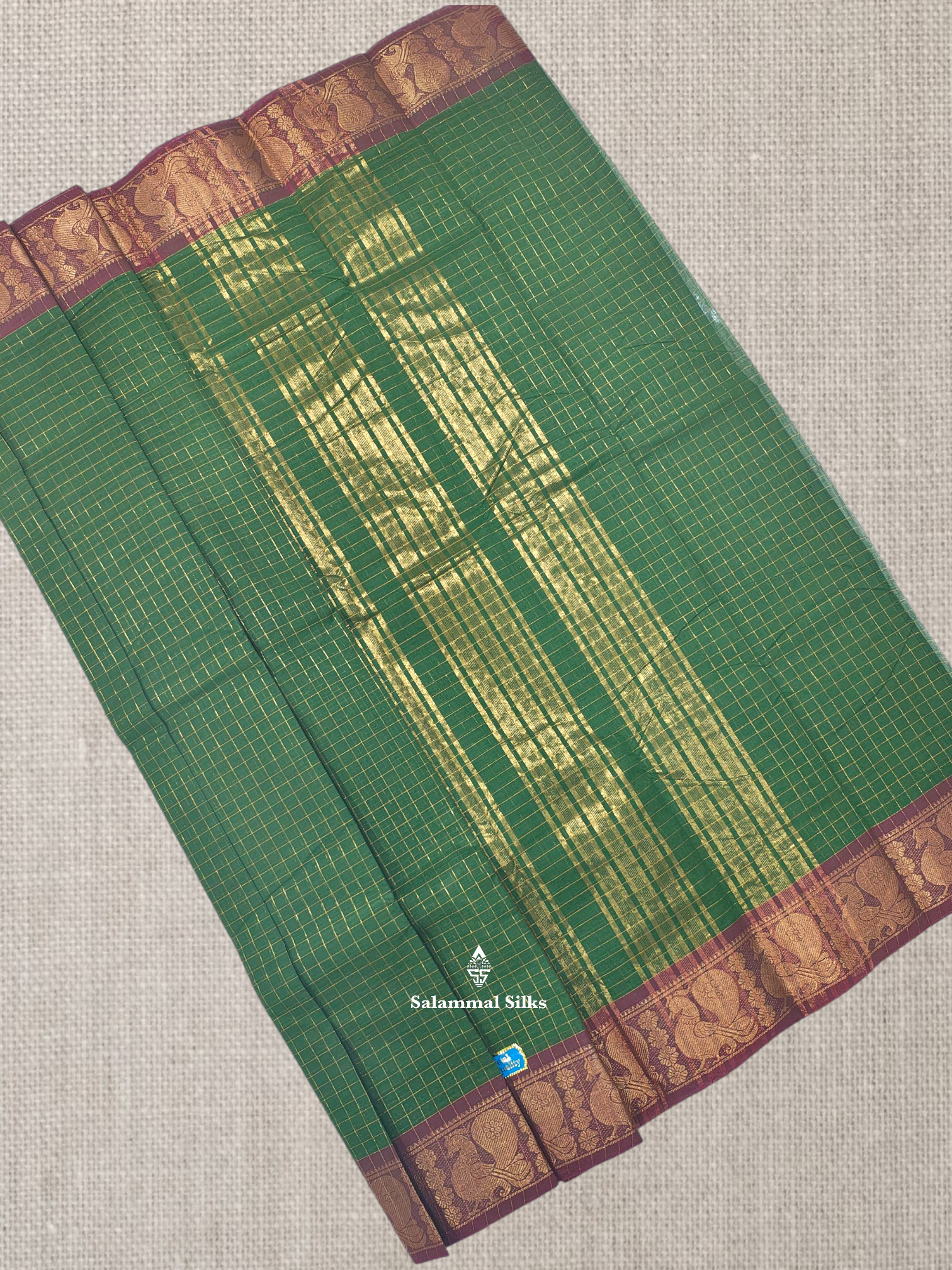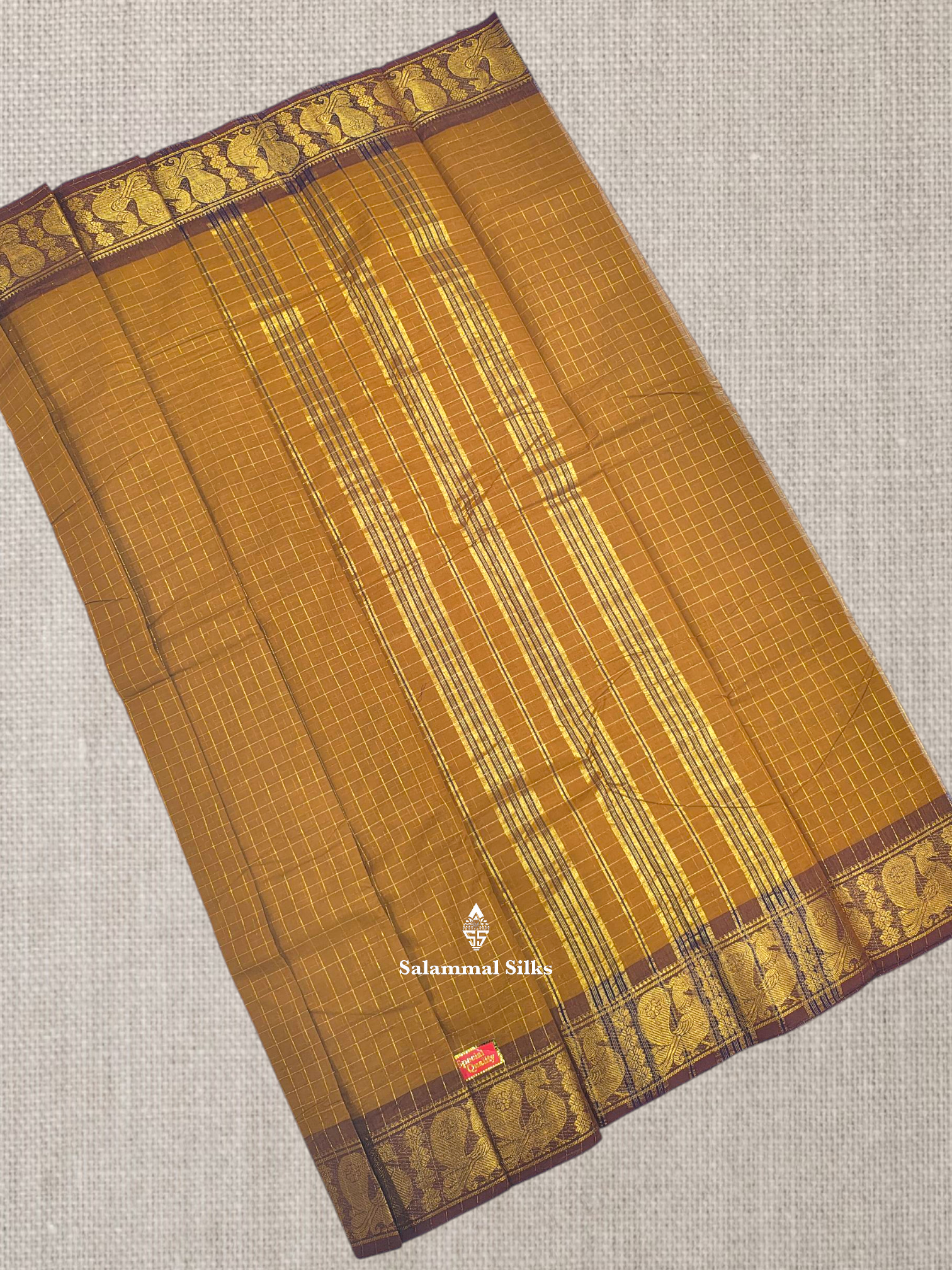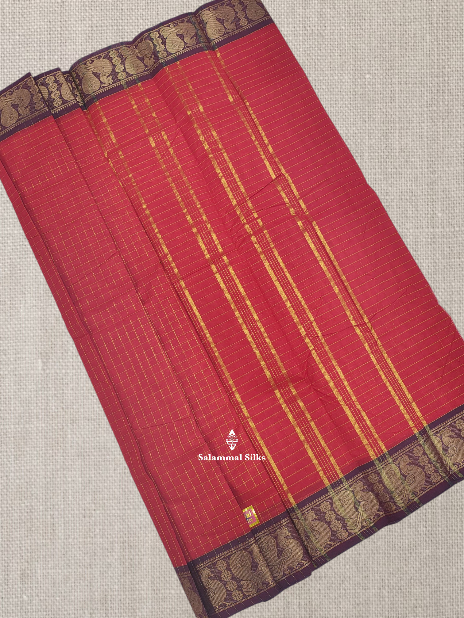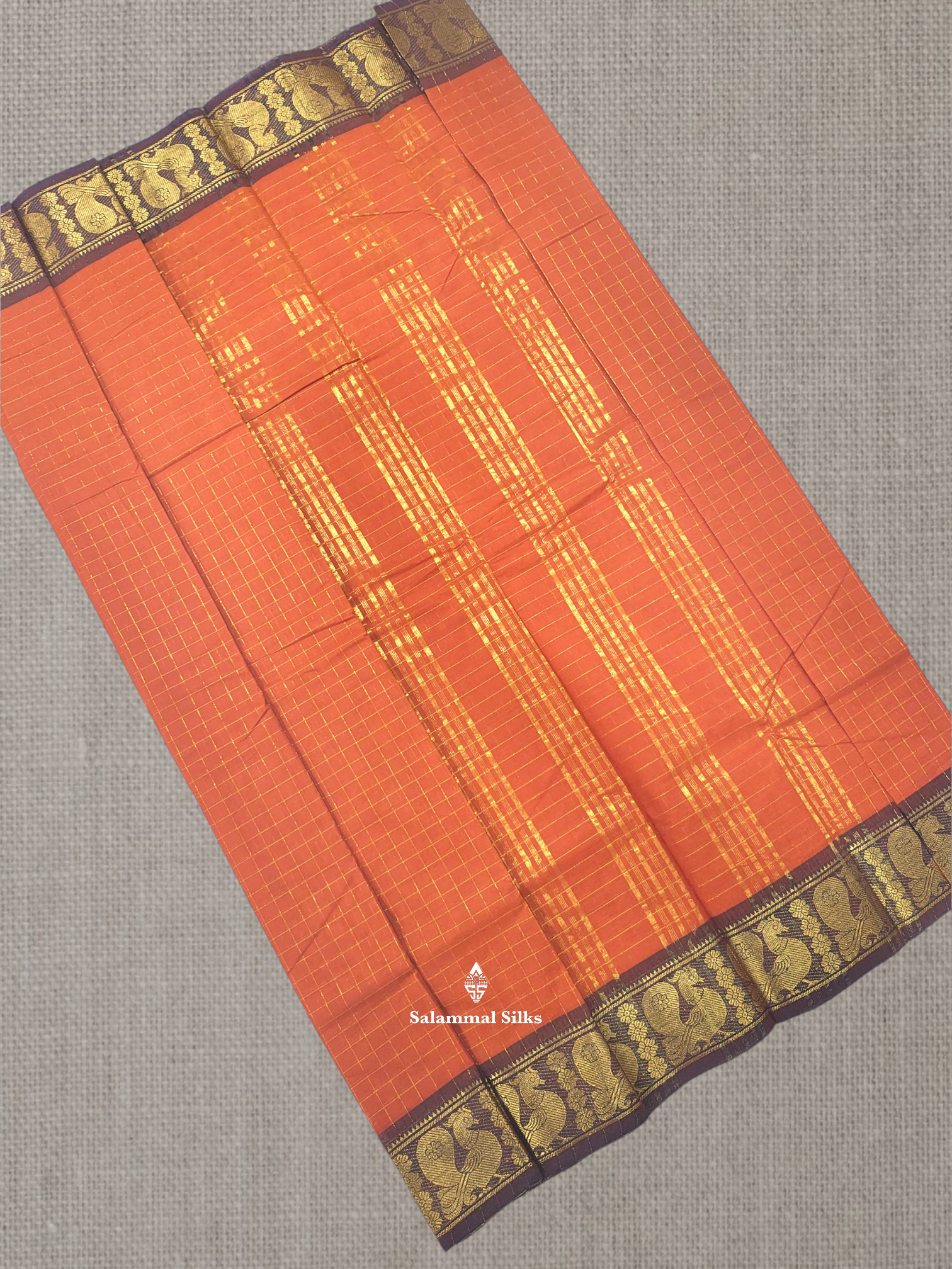 Rust Orange Zari Checks Beautiful Chettinad Pure Cotton Saree Without Blouse