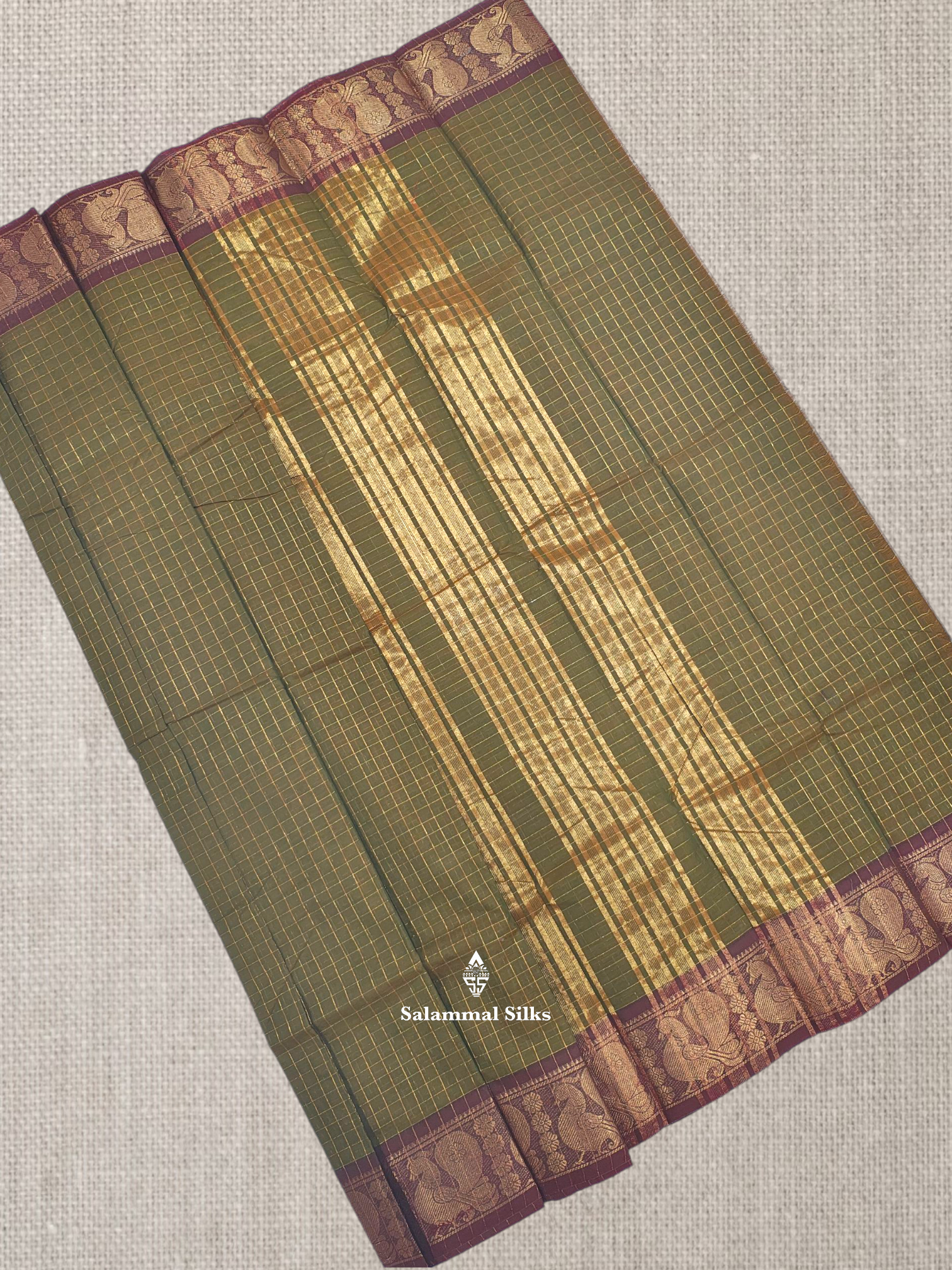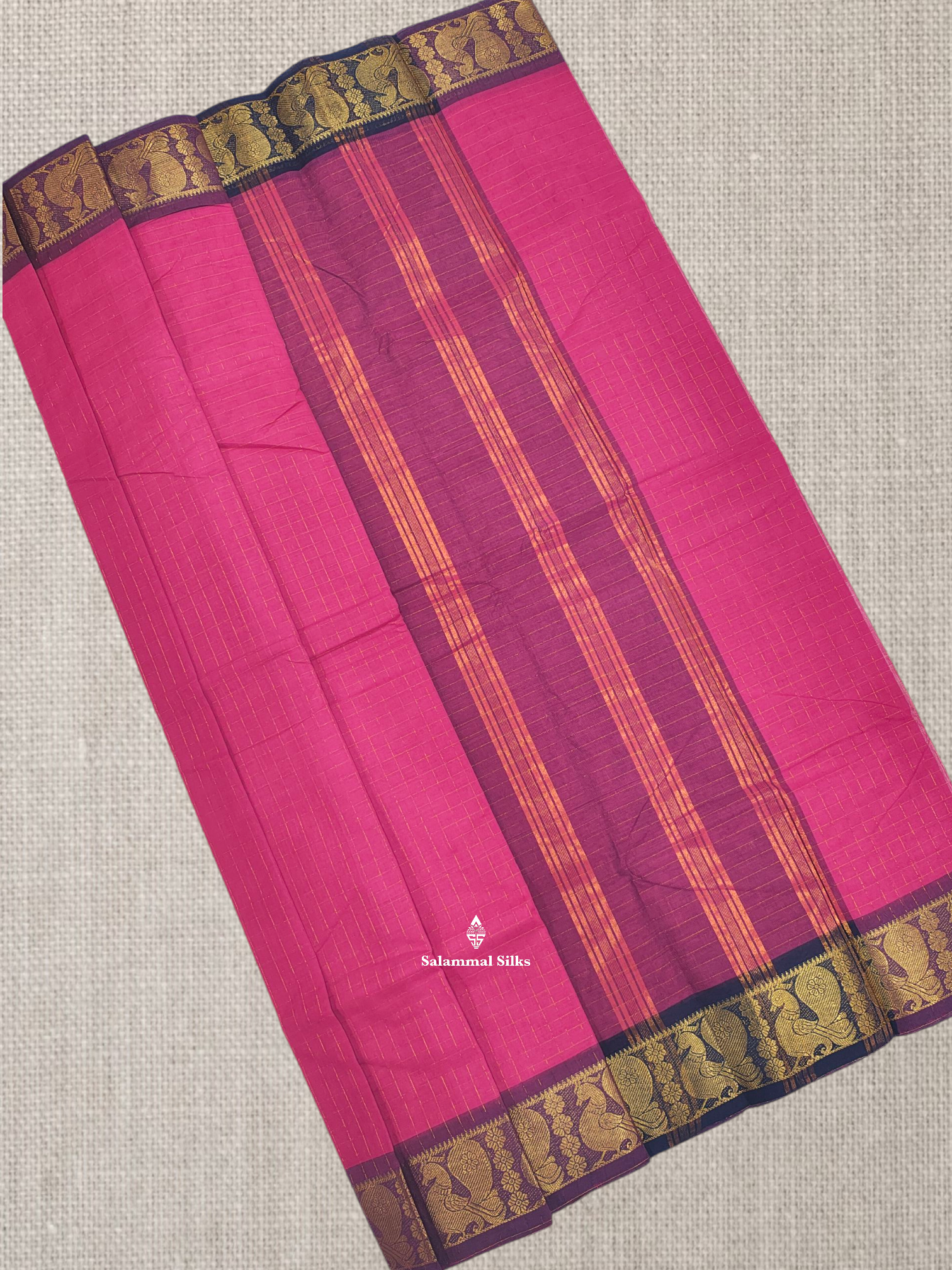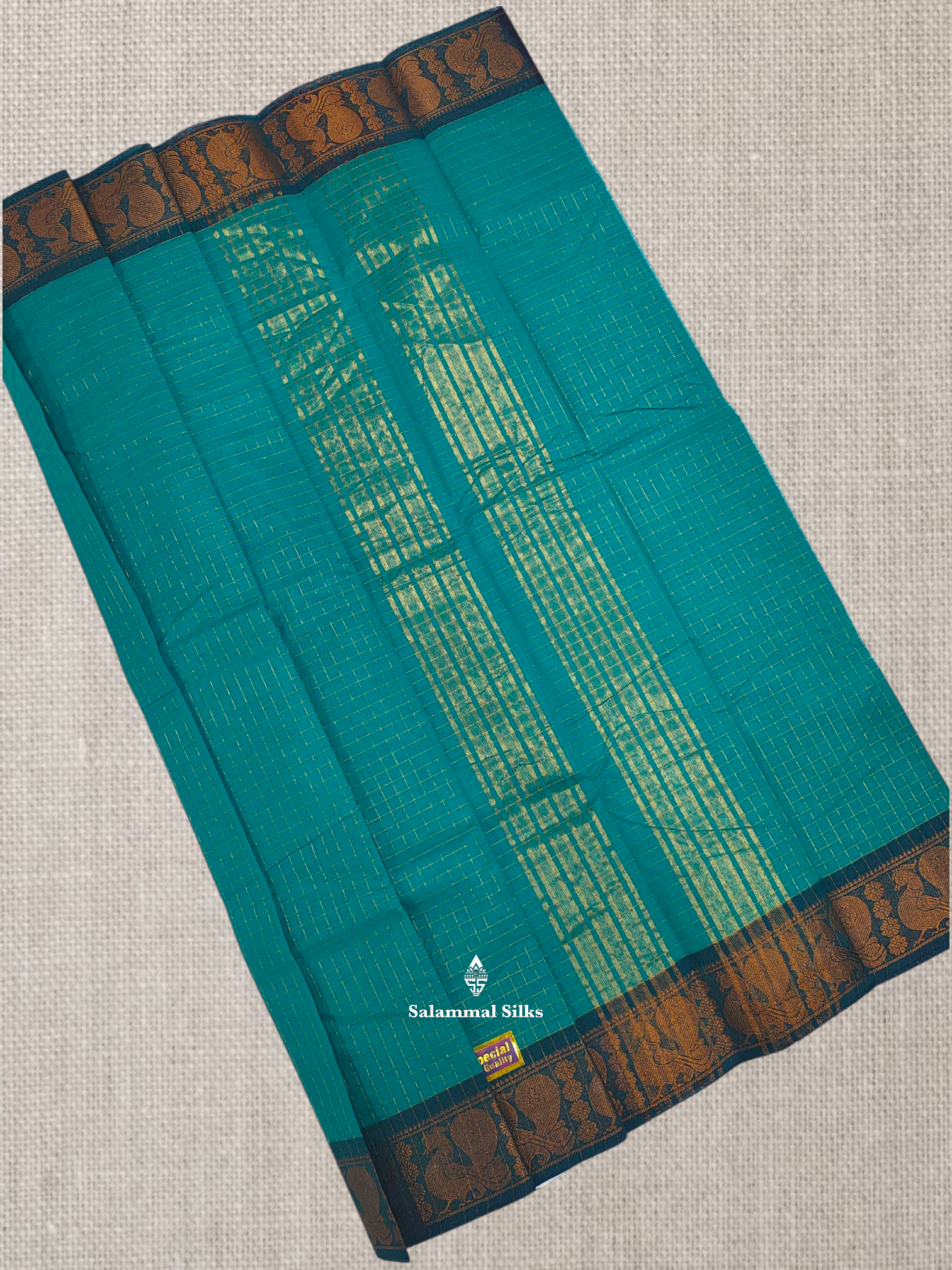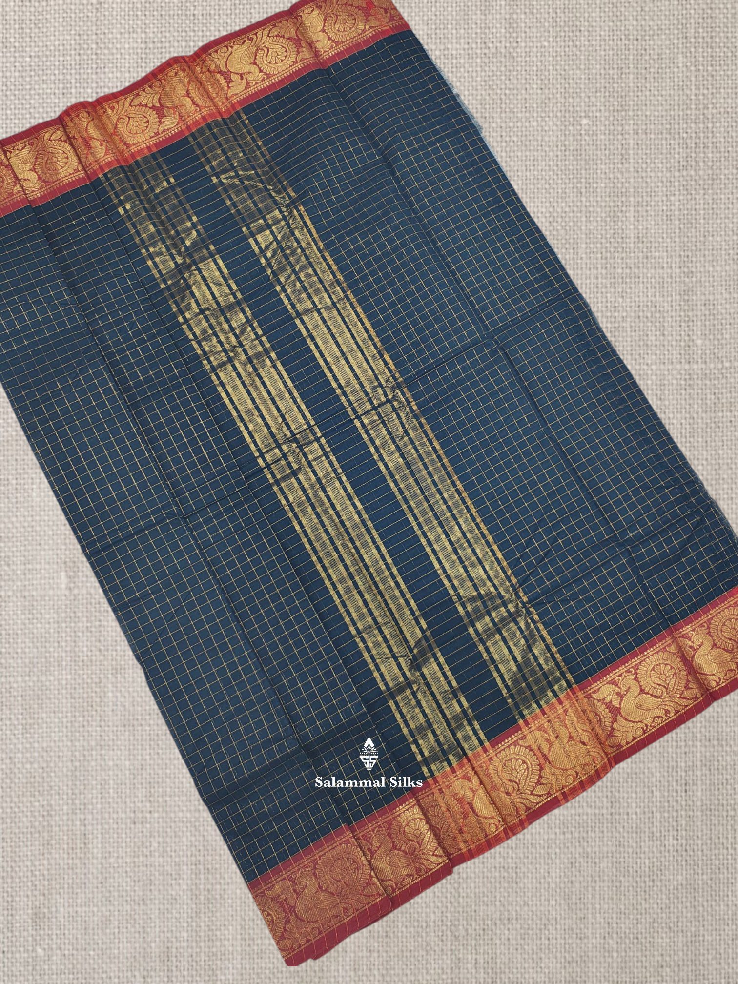 Rust Orange Zari Checks Beautiful Chettinad Pure Cotton Saree Without Blouse