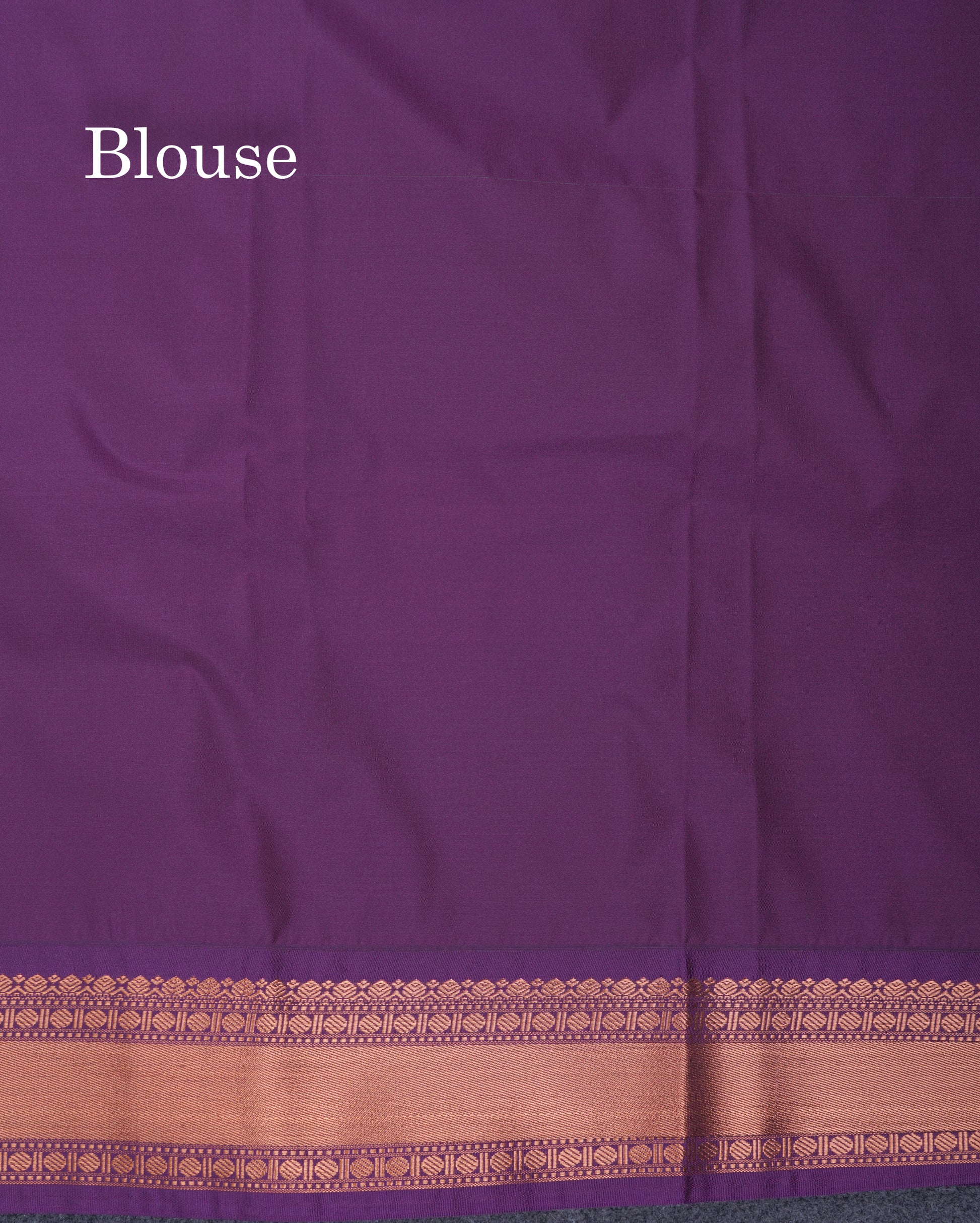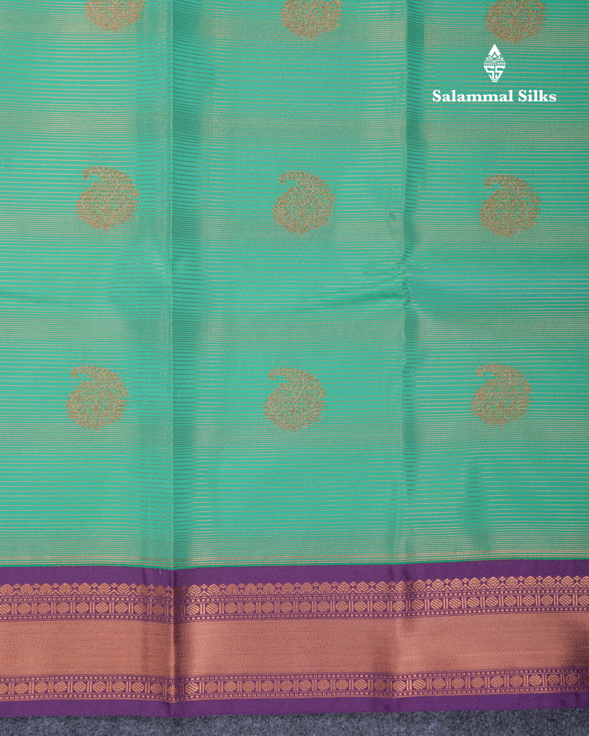 Saffire Green Alai Vairaoosi Lines With Butta Semi Silk Saree With Contrast Dark Purple Traditional Small Border