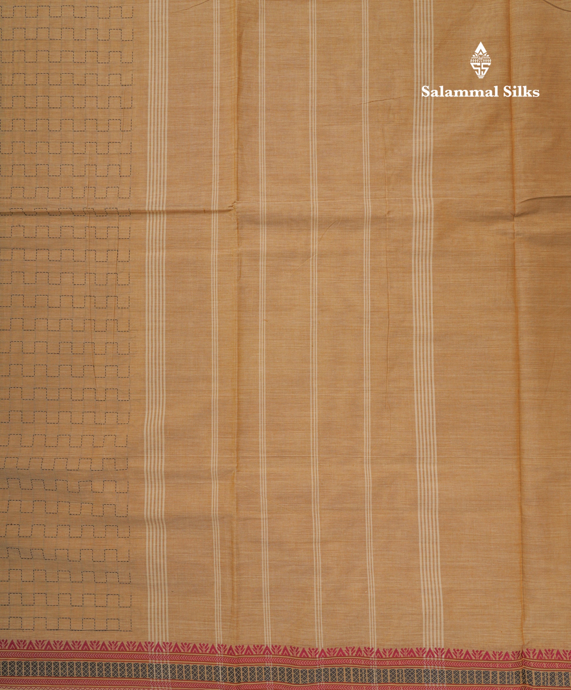 Salammal is known for its handloom sarees. In some sarees, there is cross-weaving between the body and the pallu, which is a sign of pure handloom sarees. This can be seen in Kanchipuram embossed sarees.