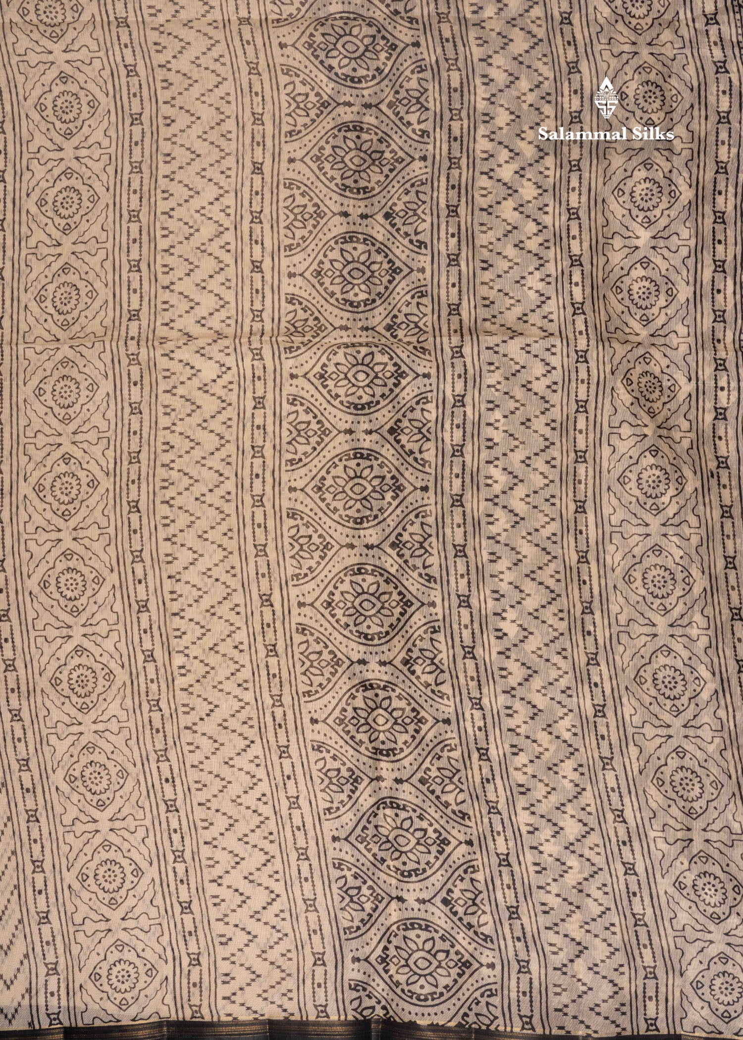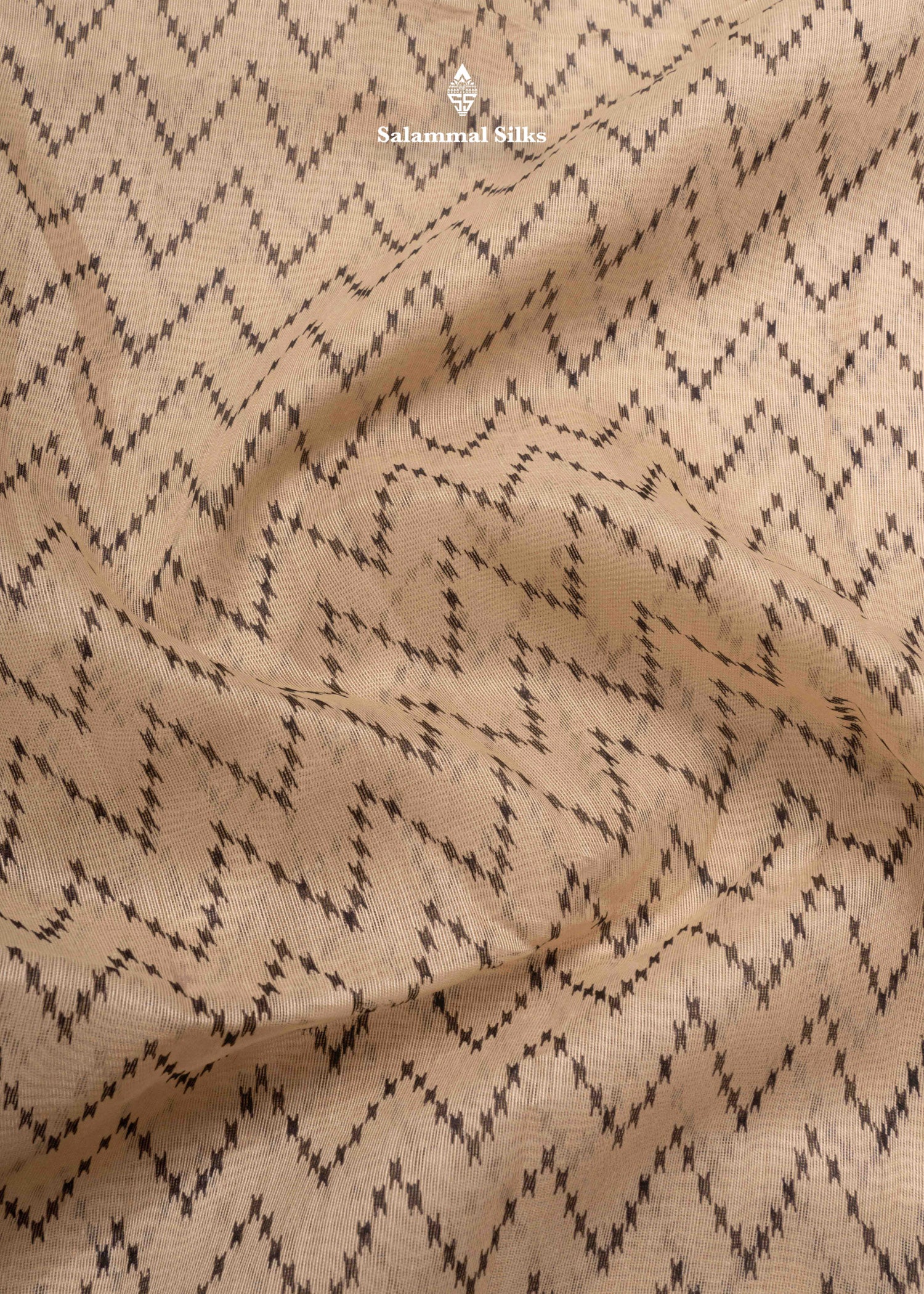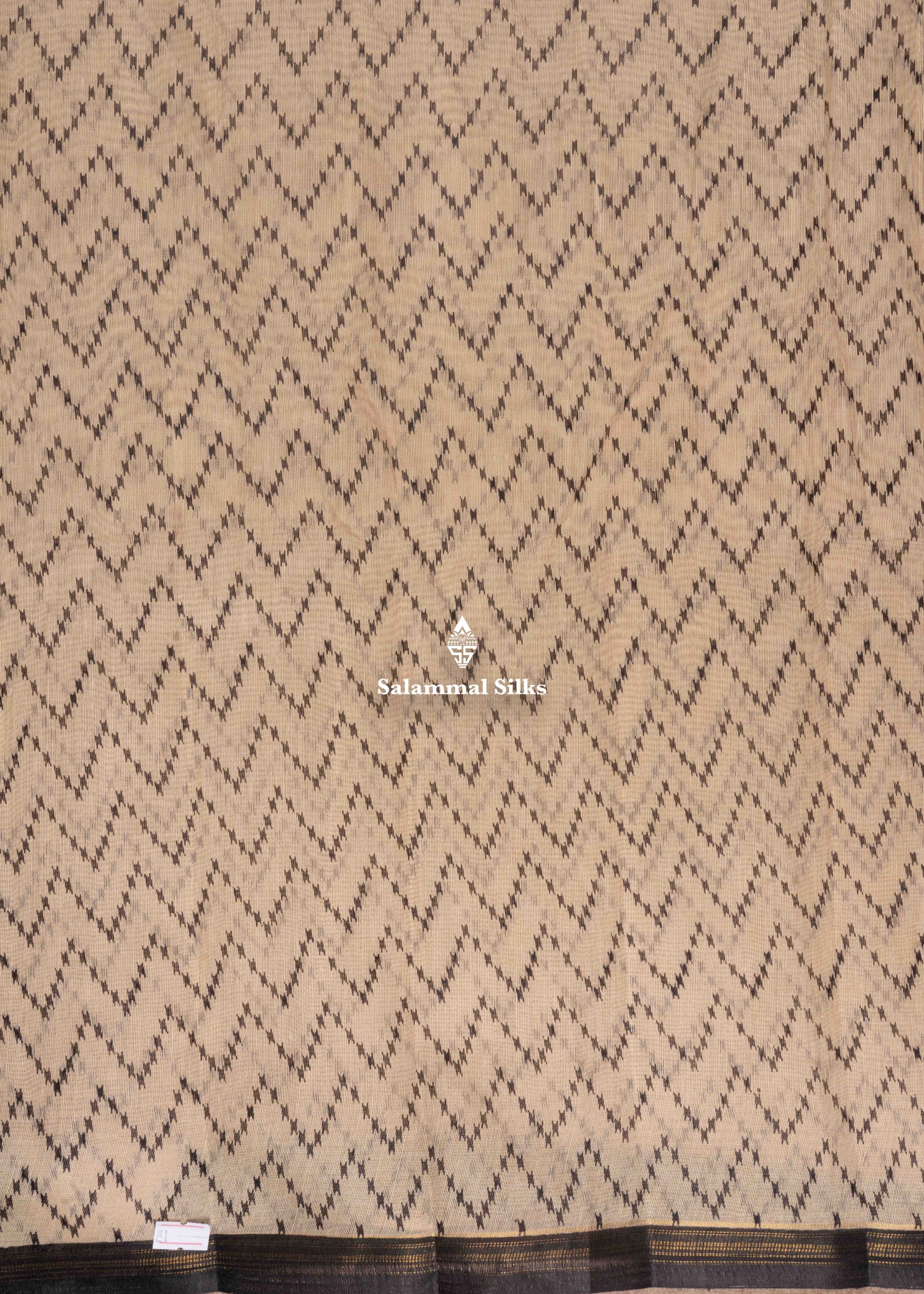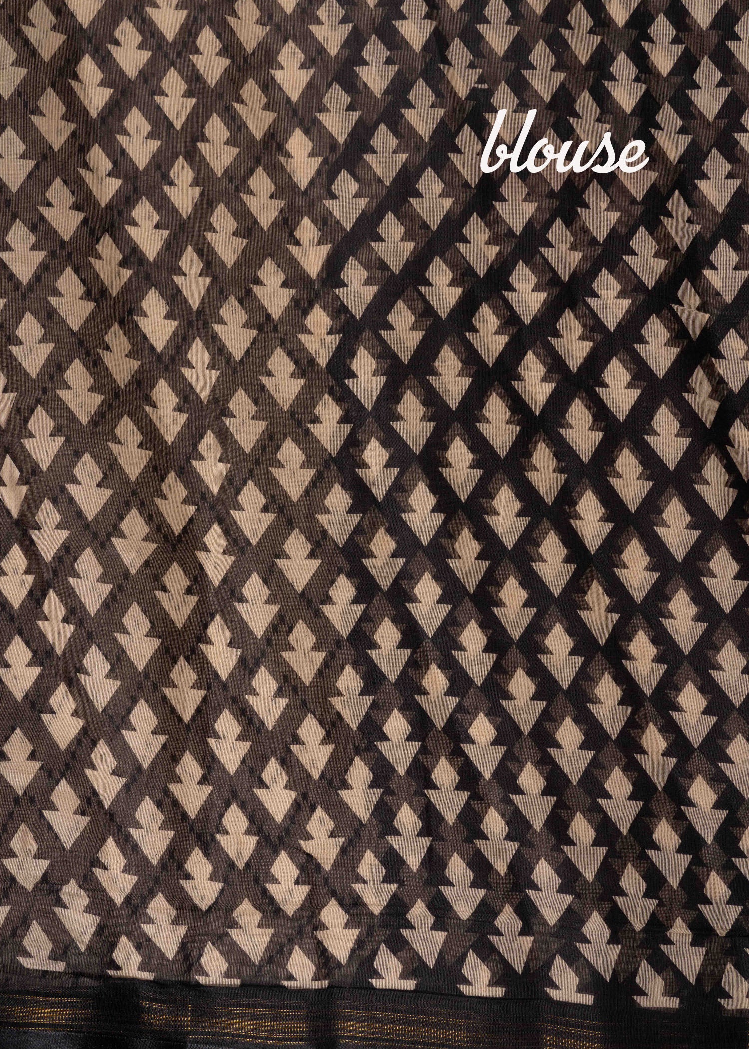 Sandal Colour Ikkat Print Linen Mix Saree With Black Blouse