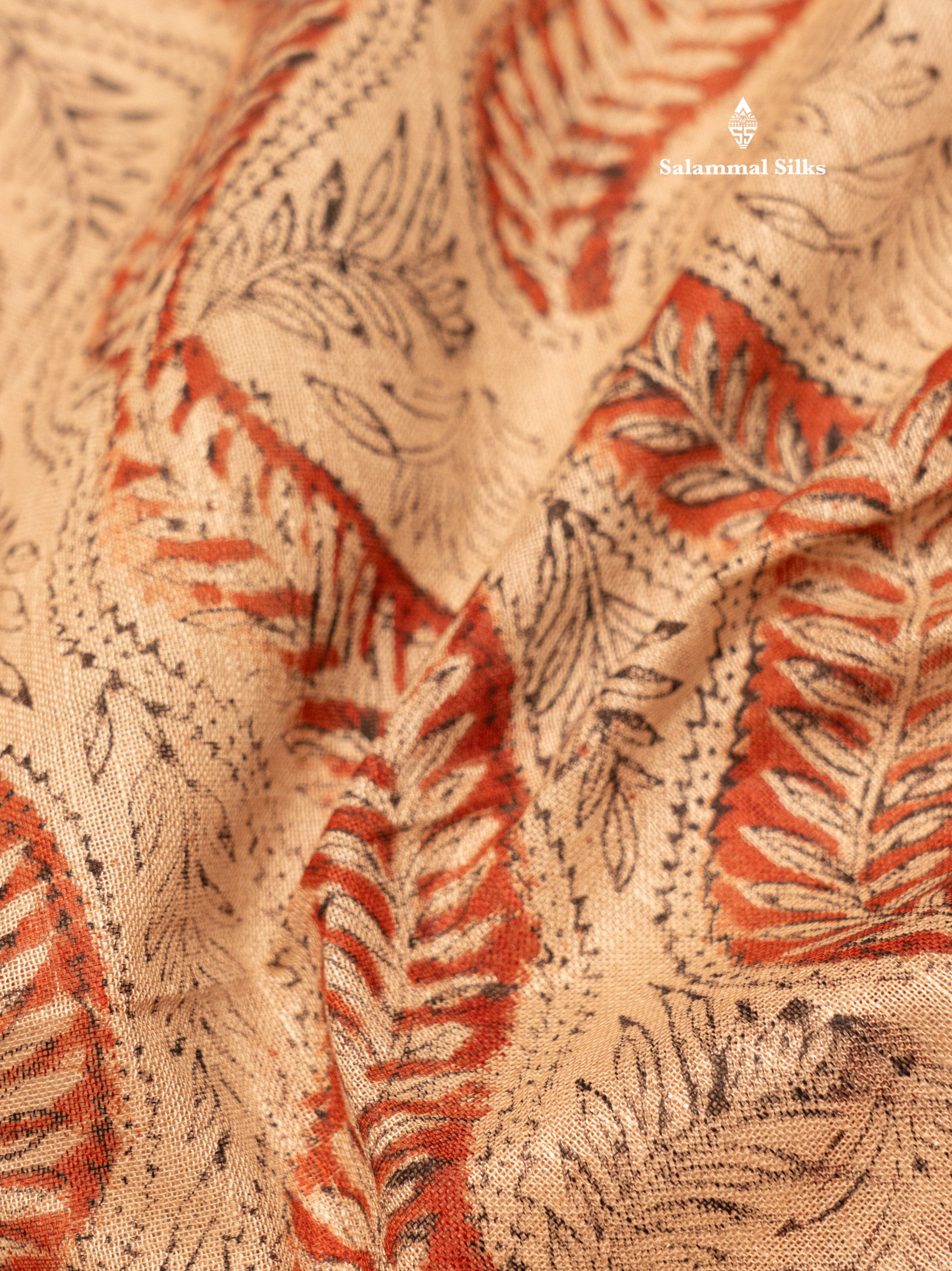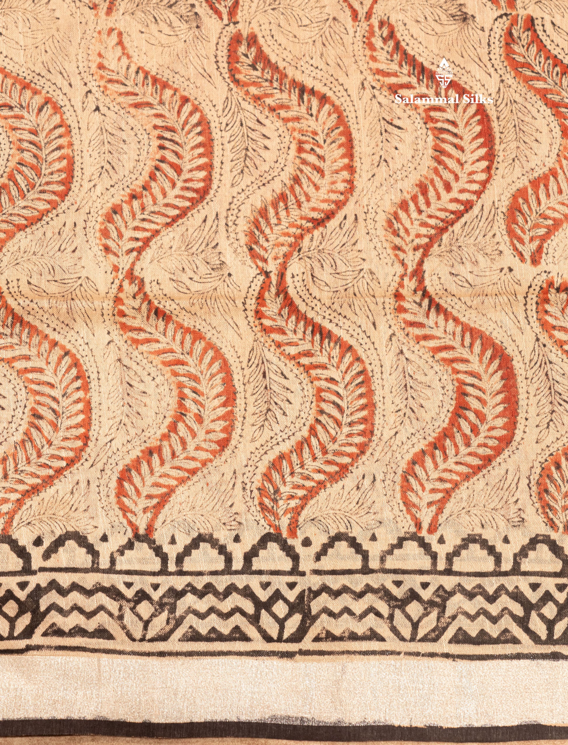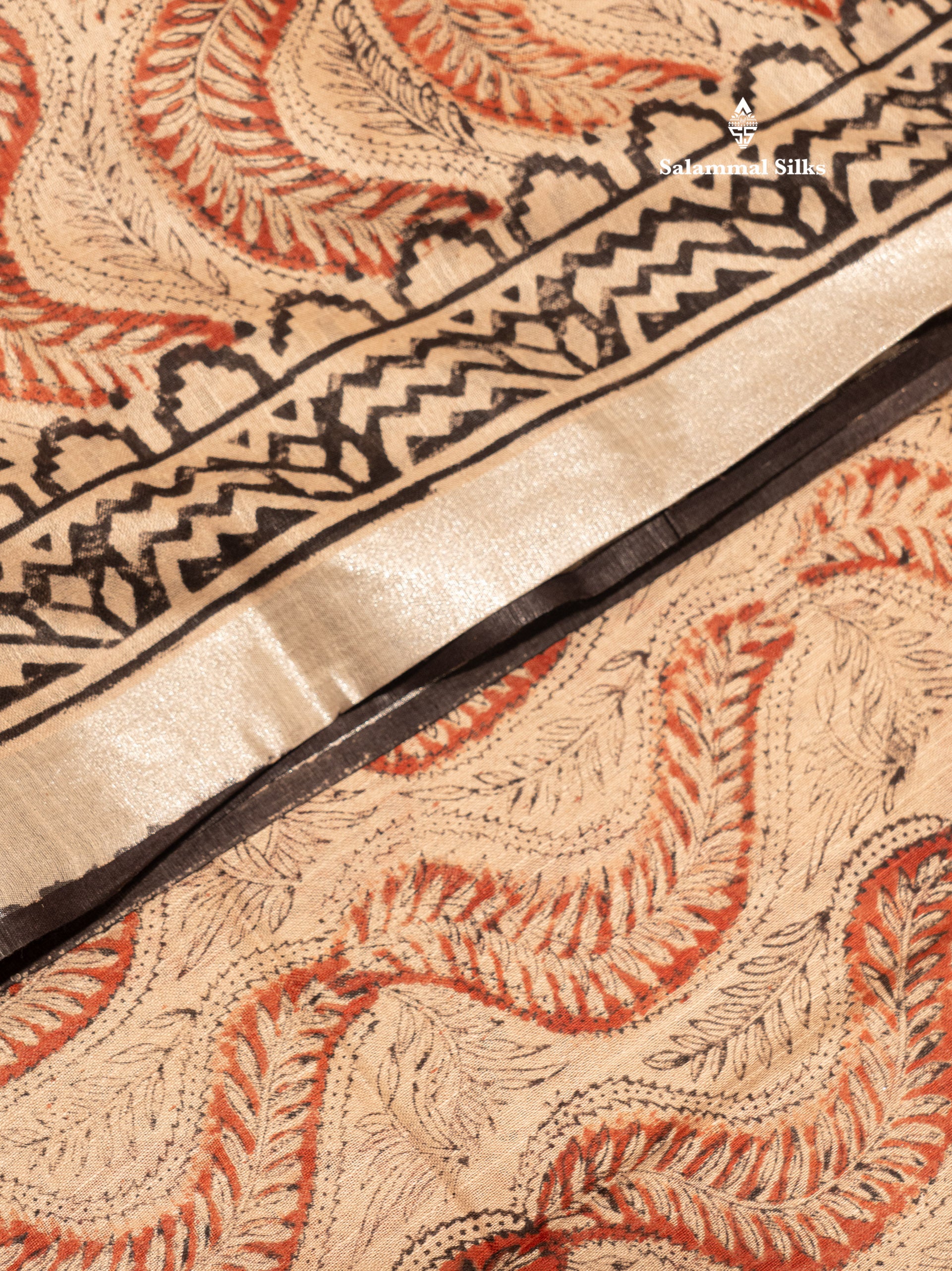 Sandal Colour Printed Pure Cotton Saree With Small Silver Zari Border