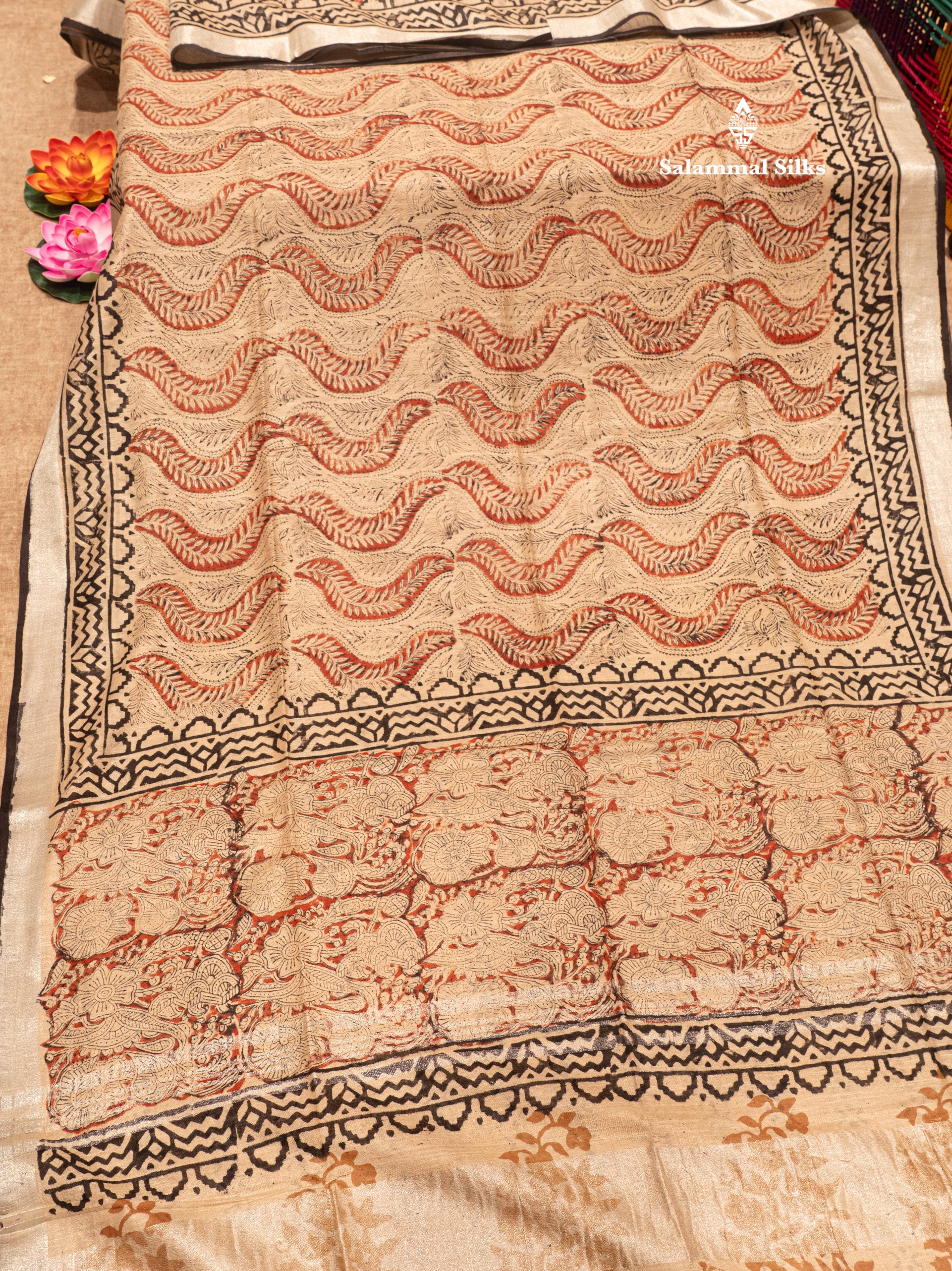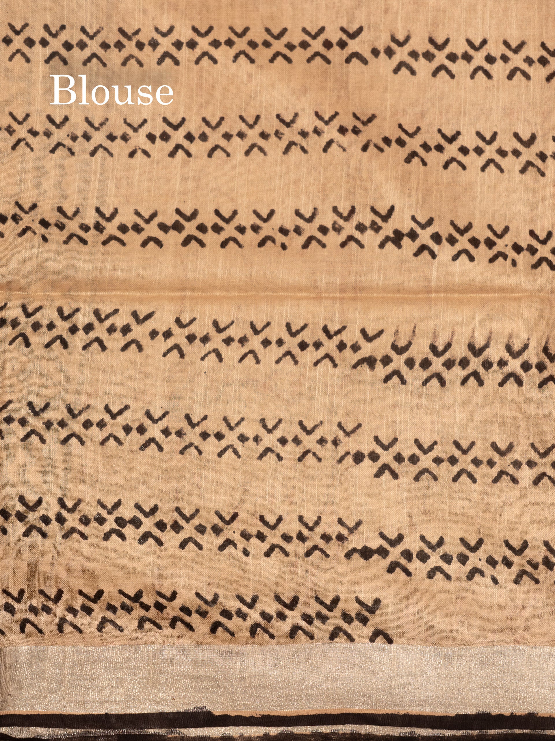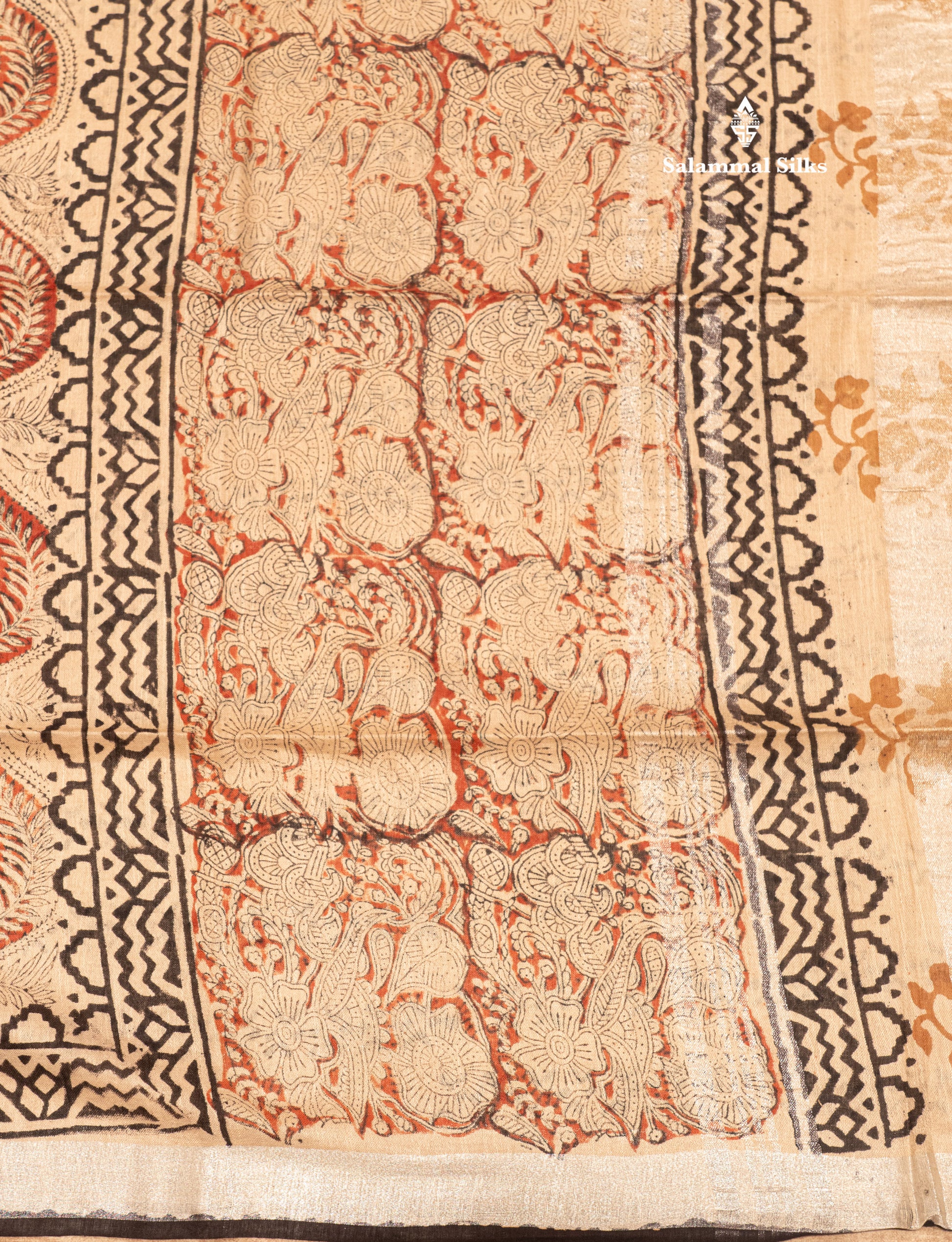 Sandal Colour Printed Pure Cotton Saree With Small Silver Zari Border