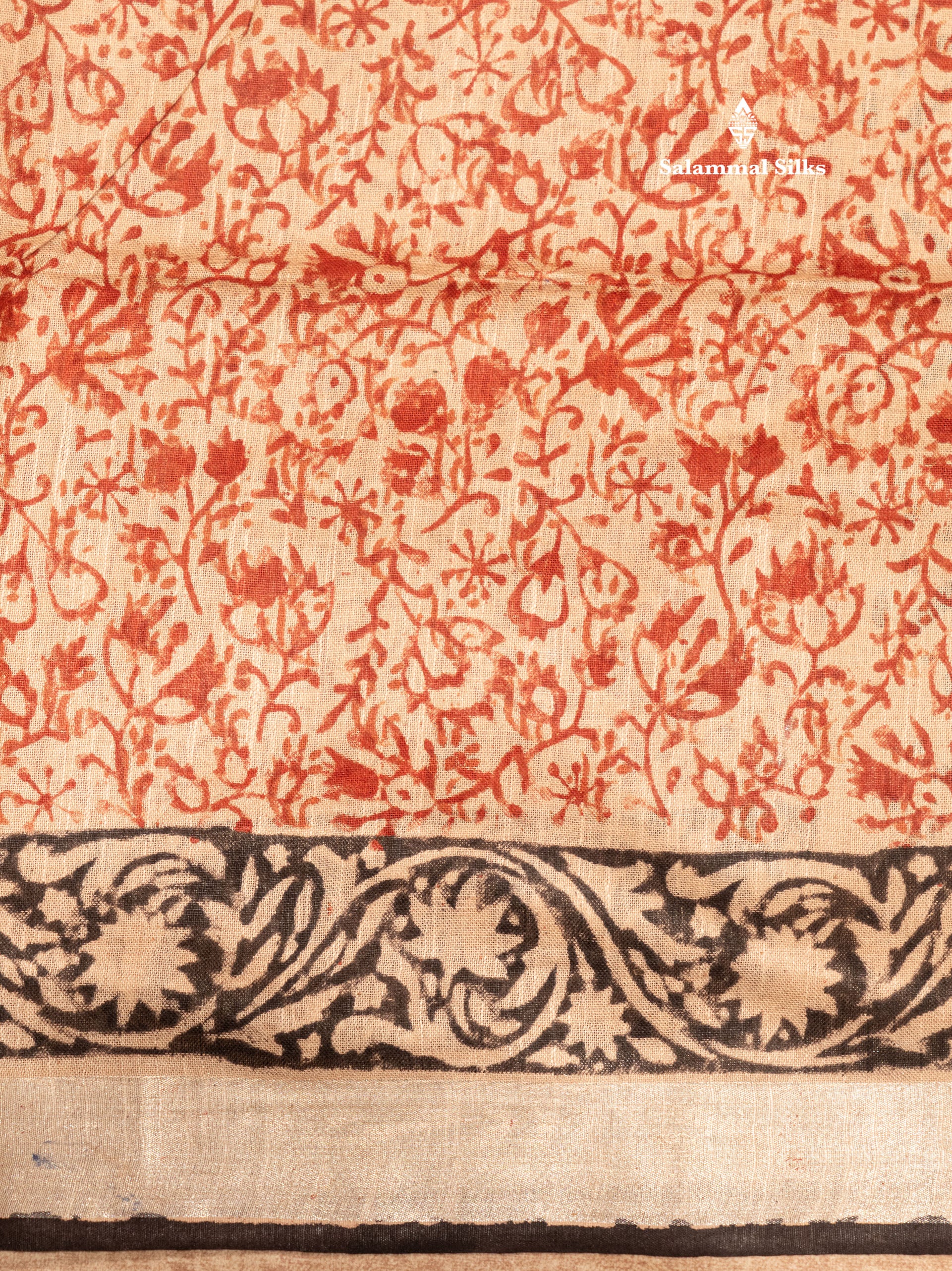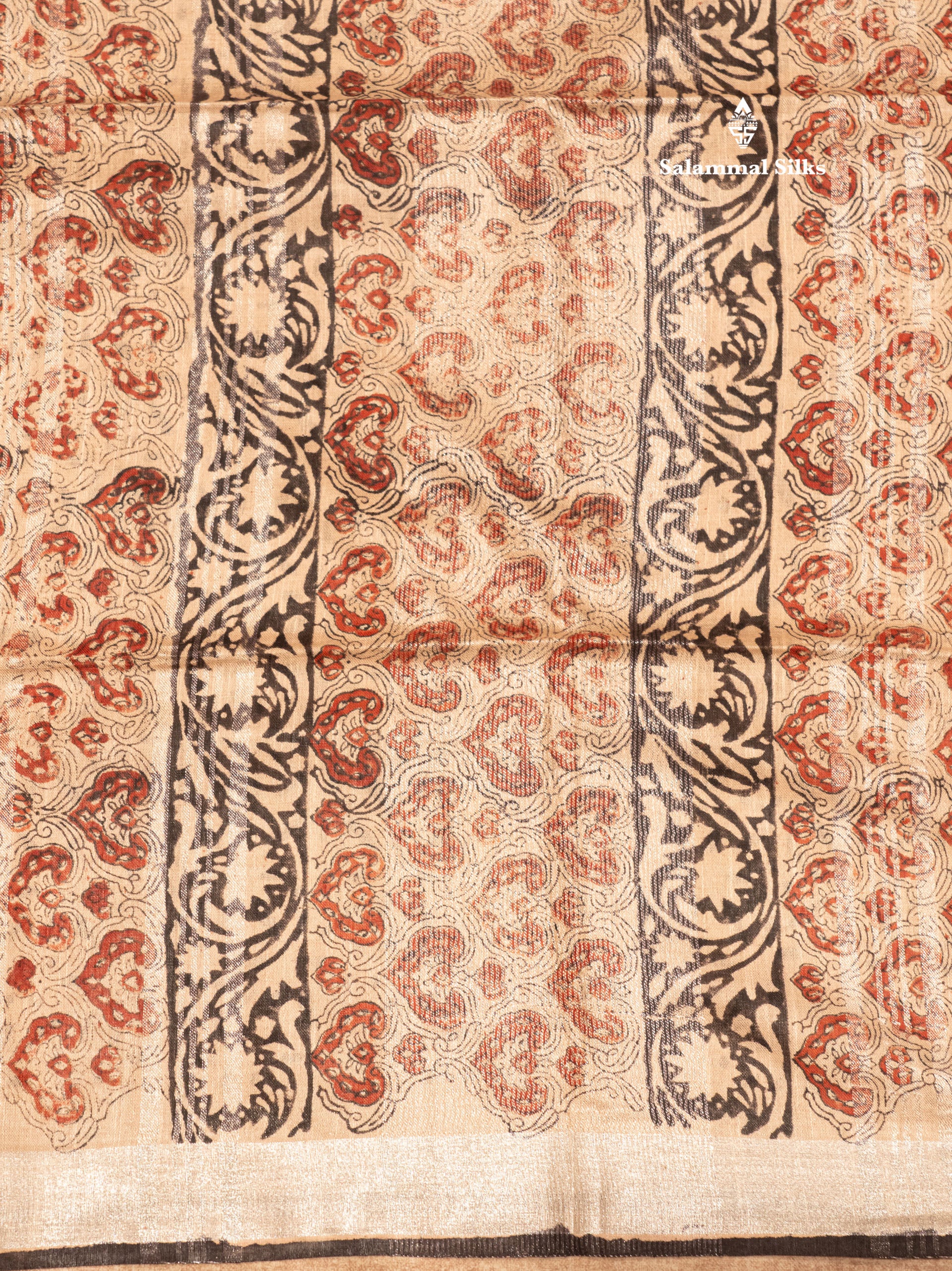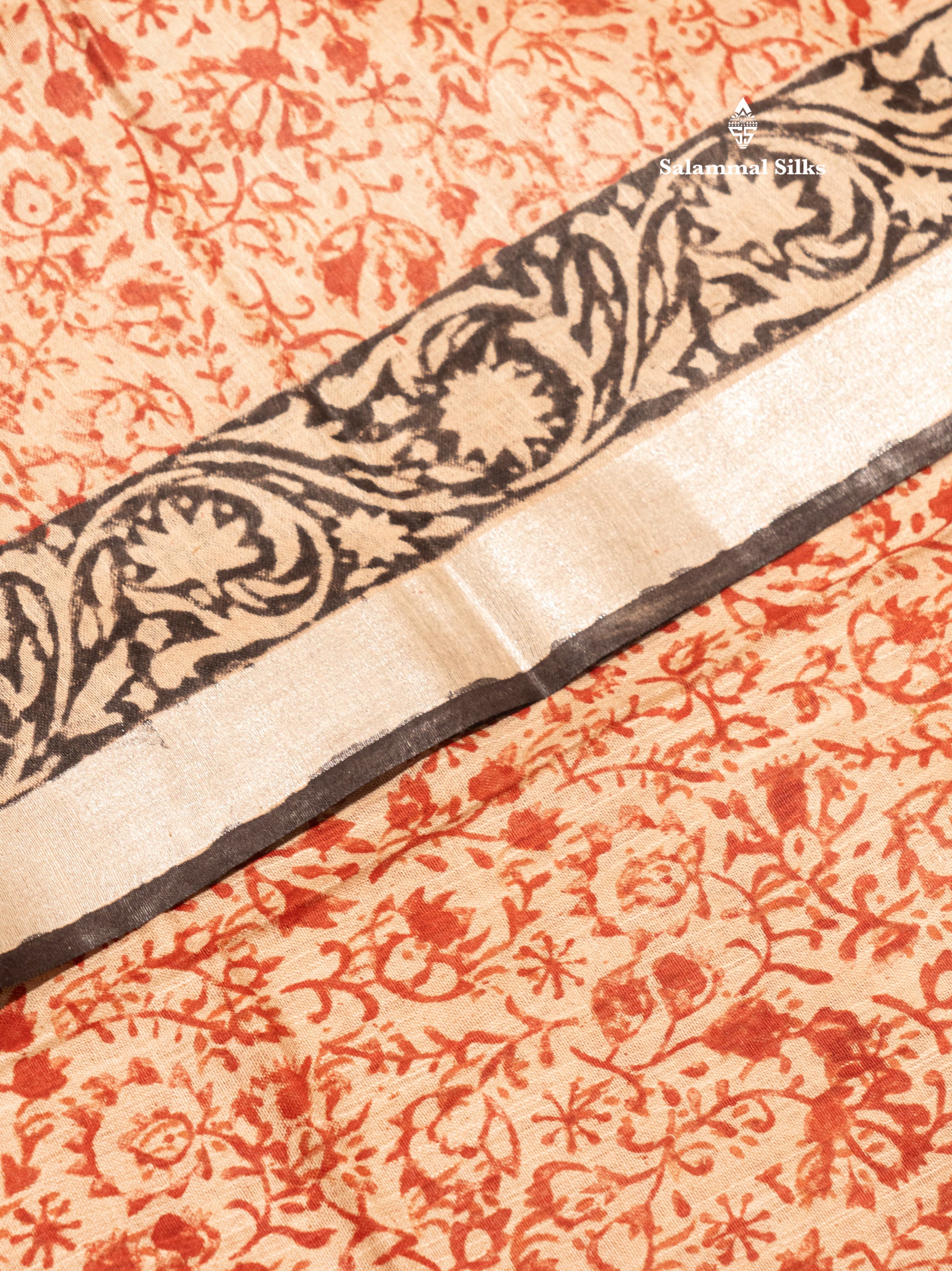 Salammal is known for its handloom sarees. In some sarees, there is cross-weaving between the body and the pallu, which is a sign of pure handloom sarees. This can be seen in Kanchipuram embossed sarees.