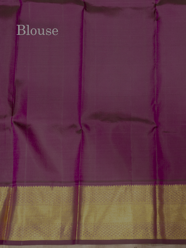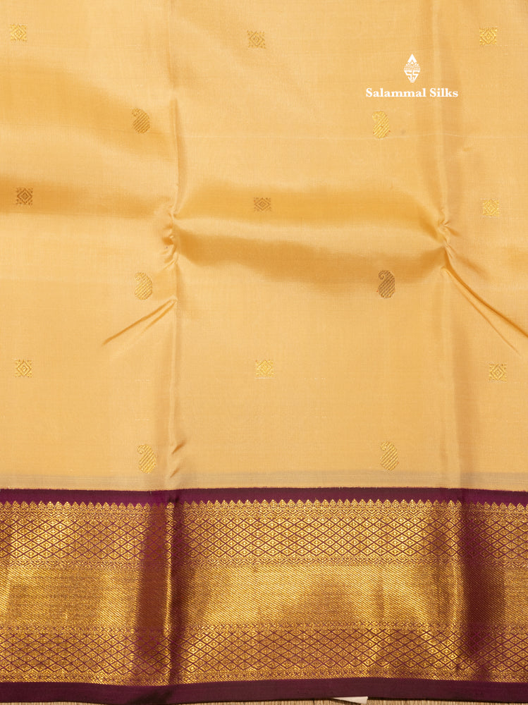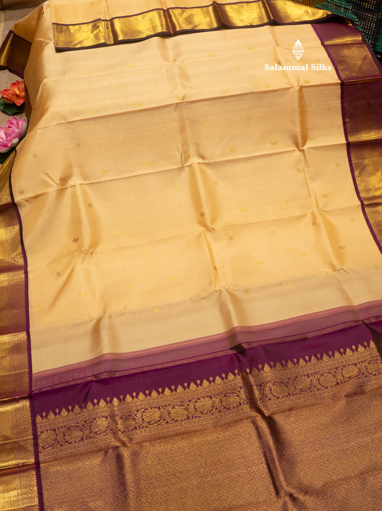 Sandal Colour Pure Kanjivaram Silk Saree with Violet Border