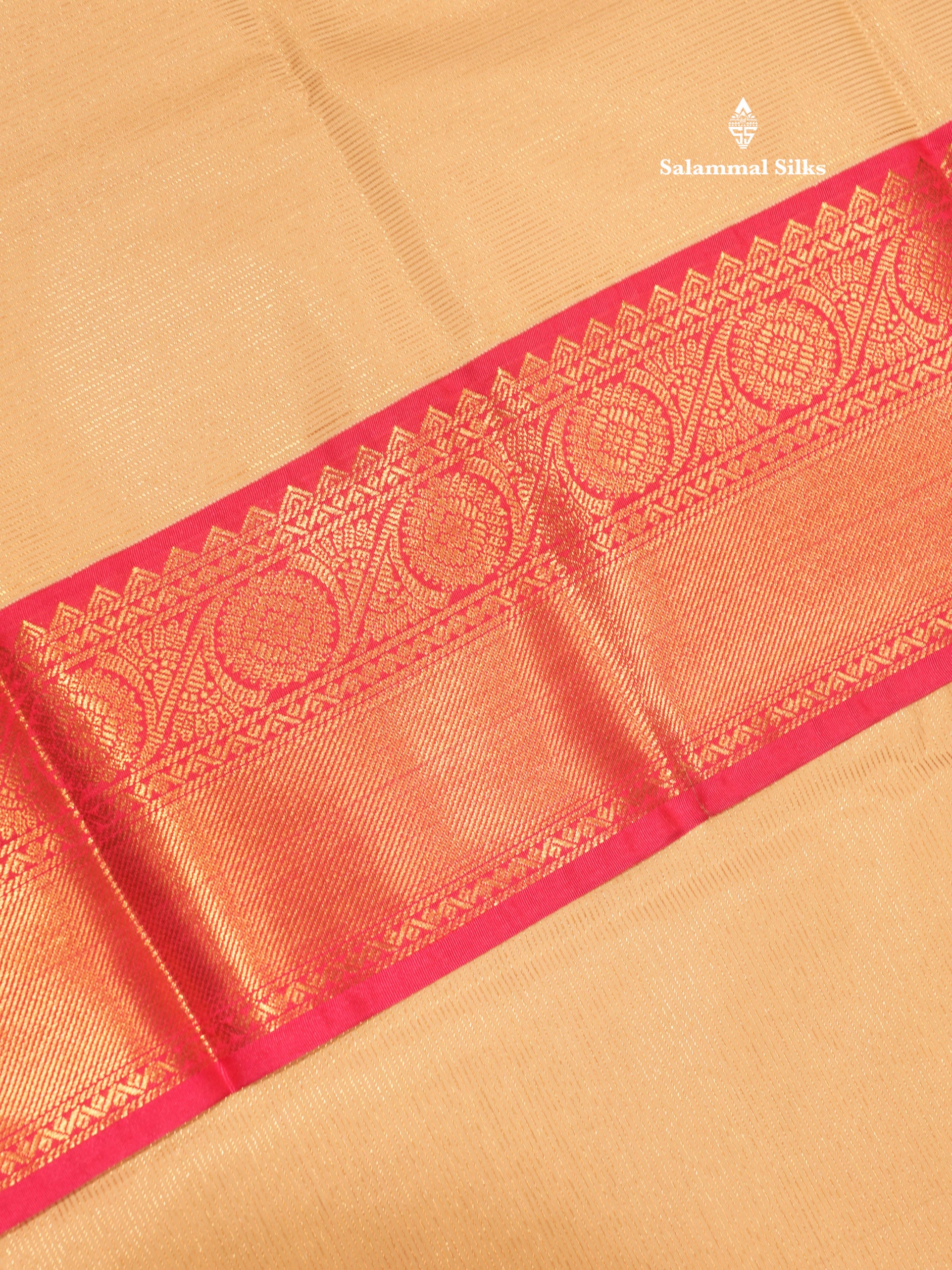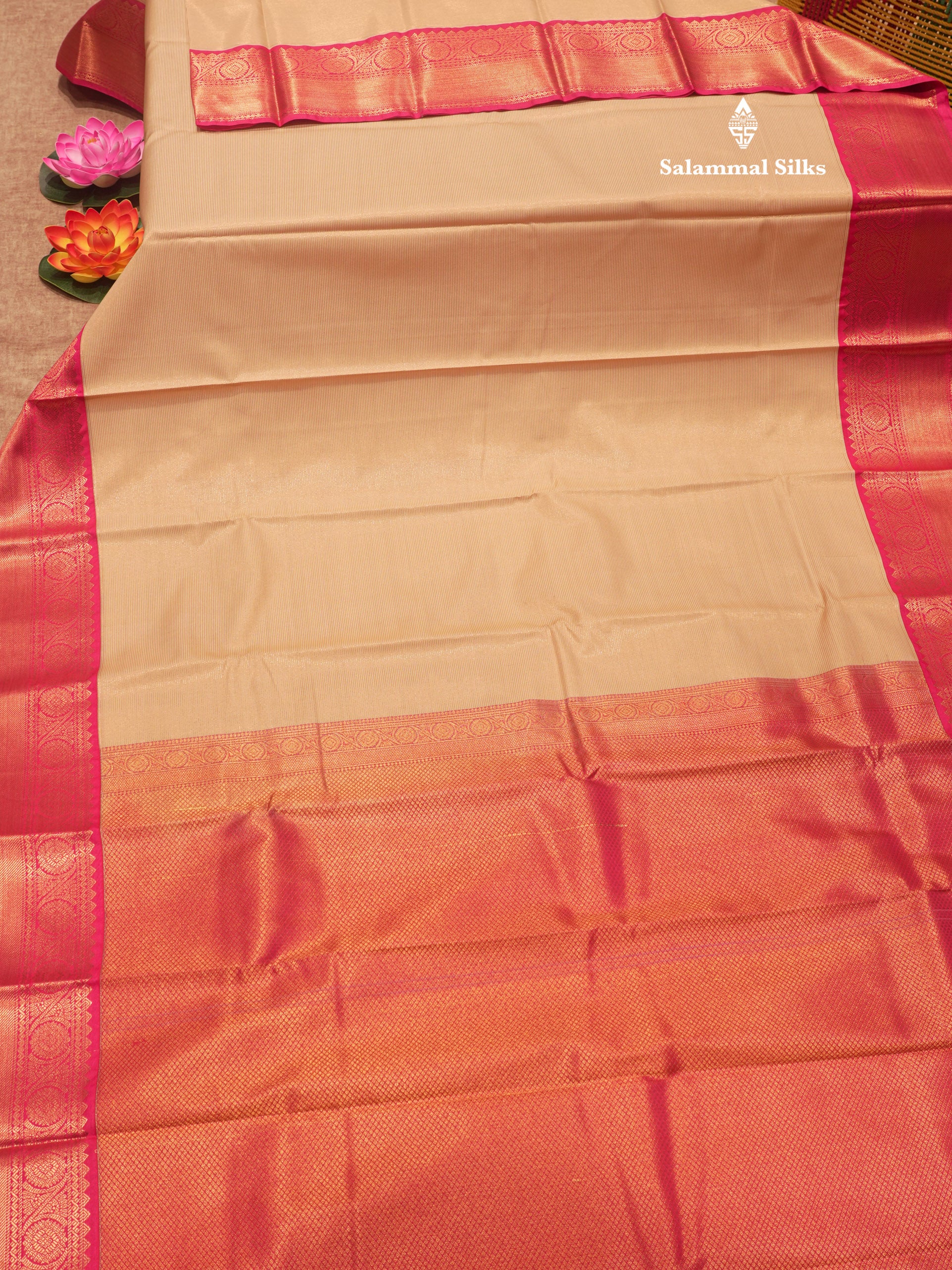 Sandal Colour Vaira Oosi Semi Silk Saree With Contrast Pink Border