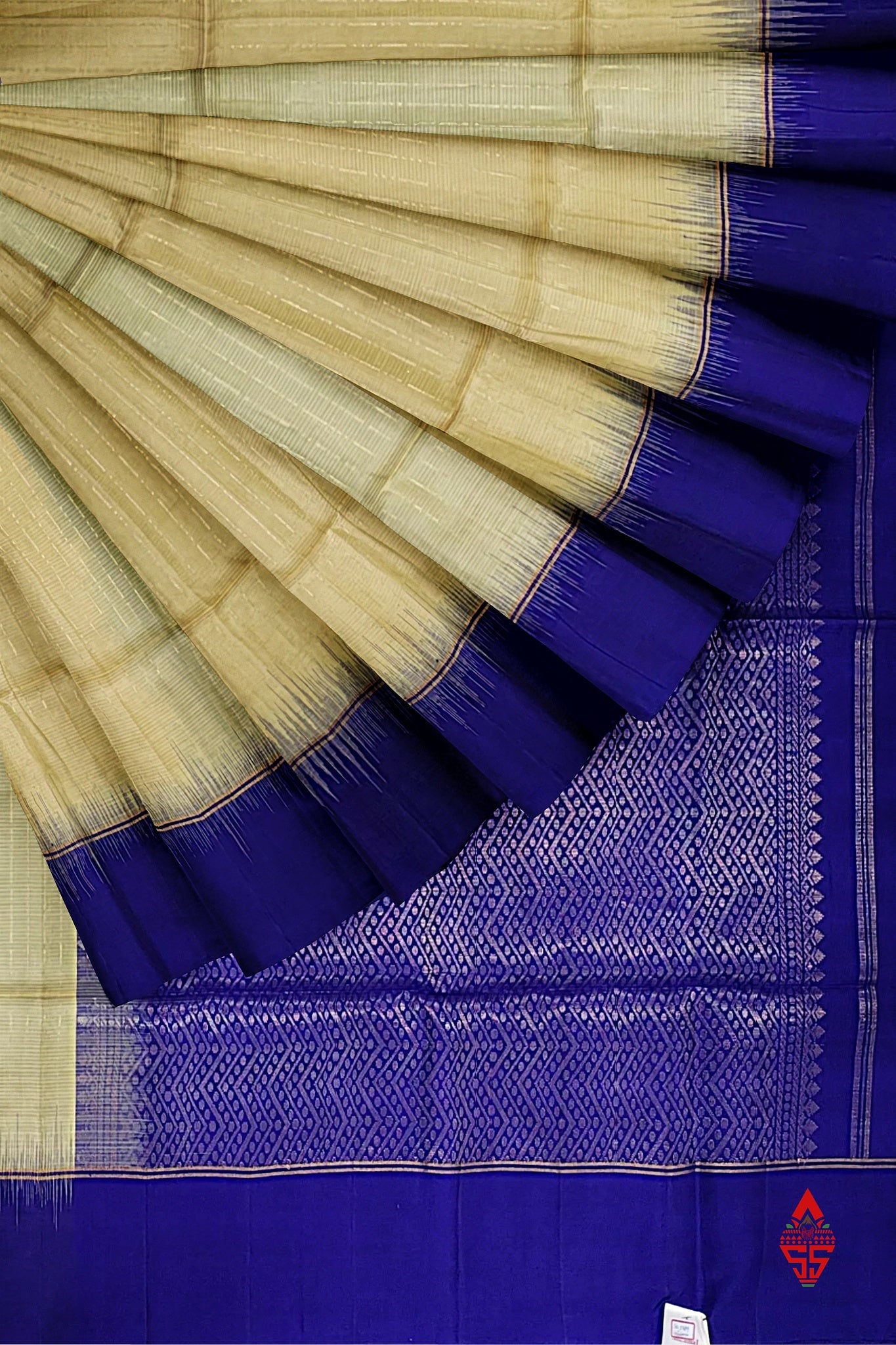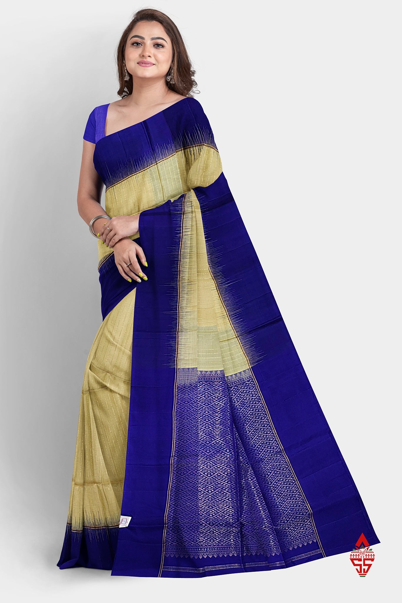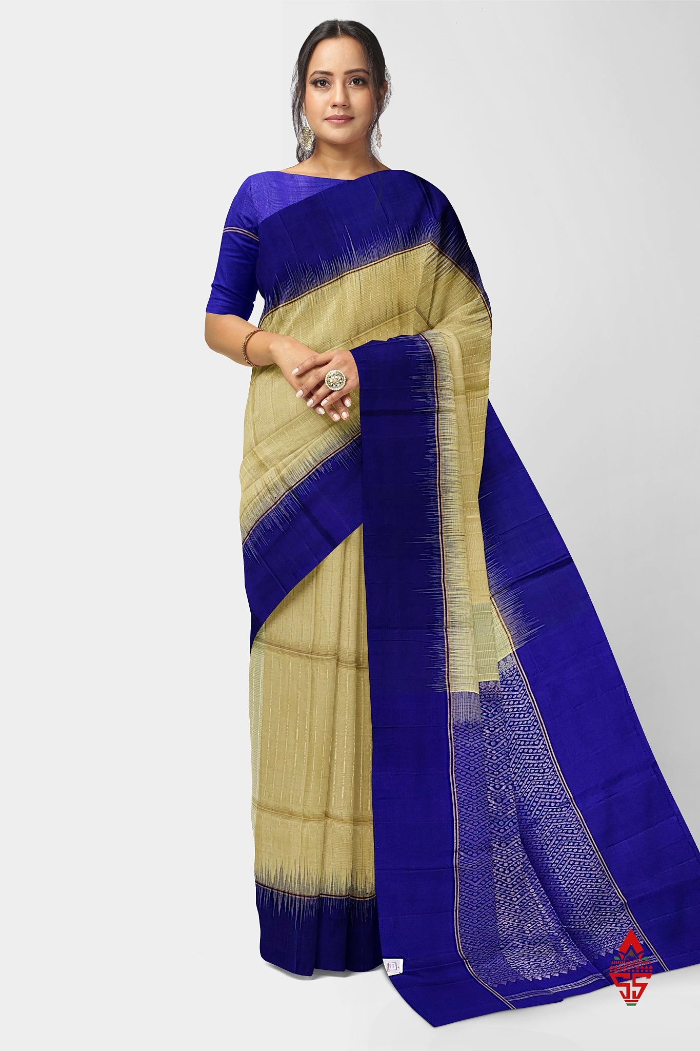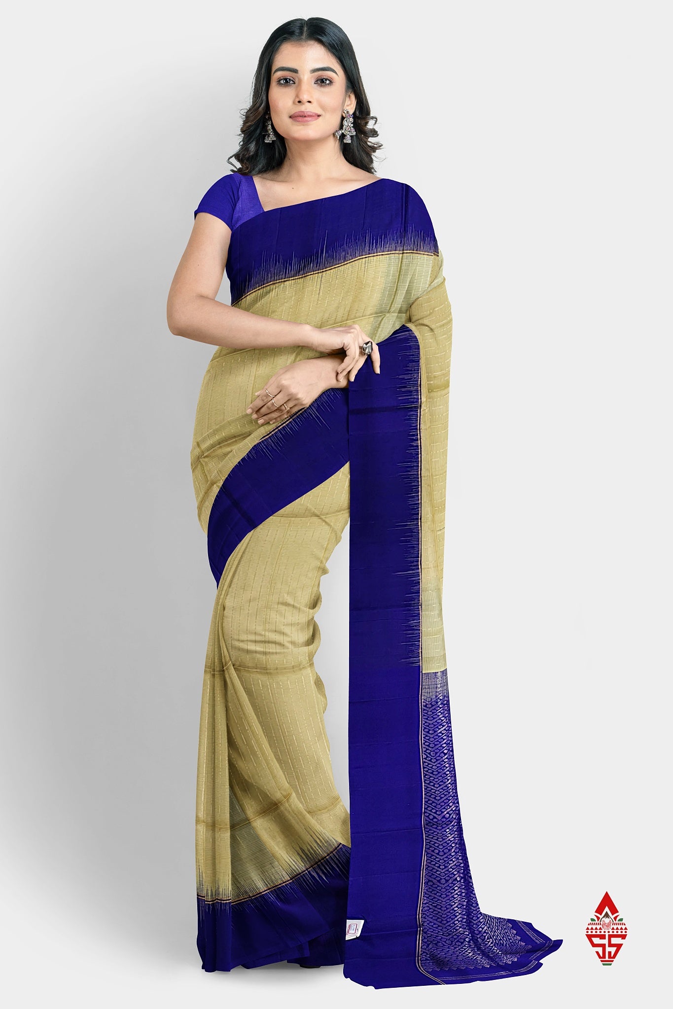 Sandal Fancy Pure Soft Silk Saree With Royal Blue Border
