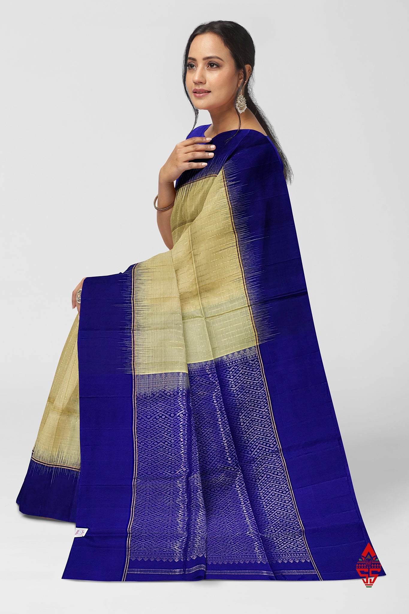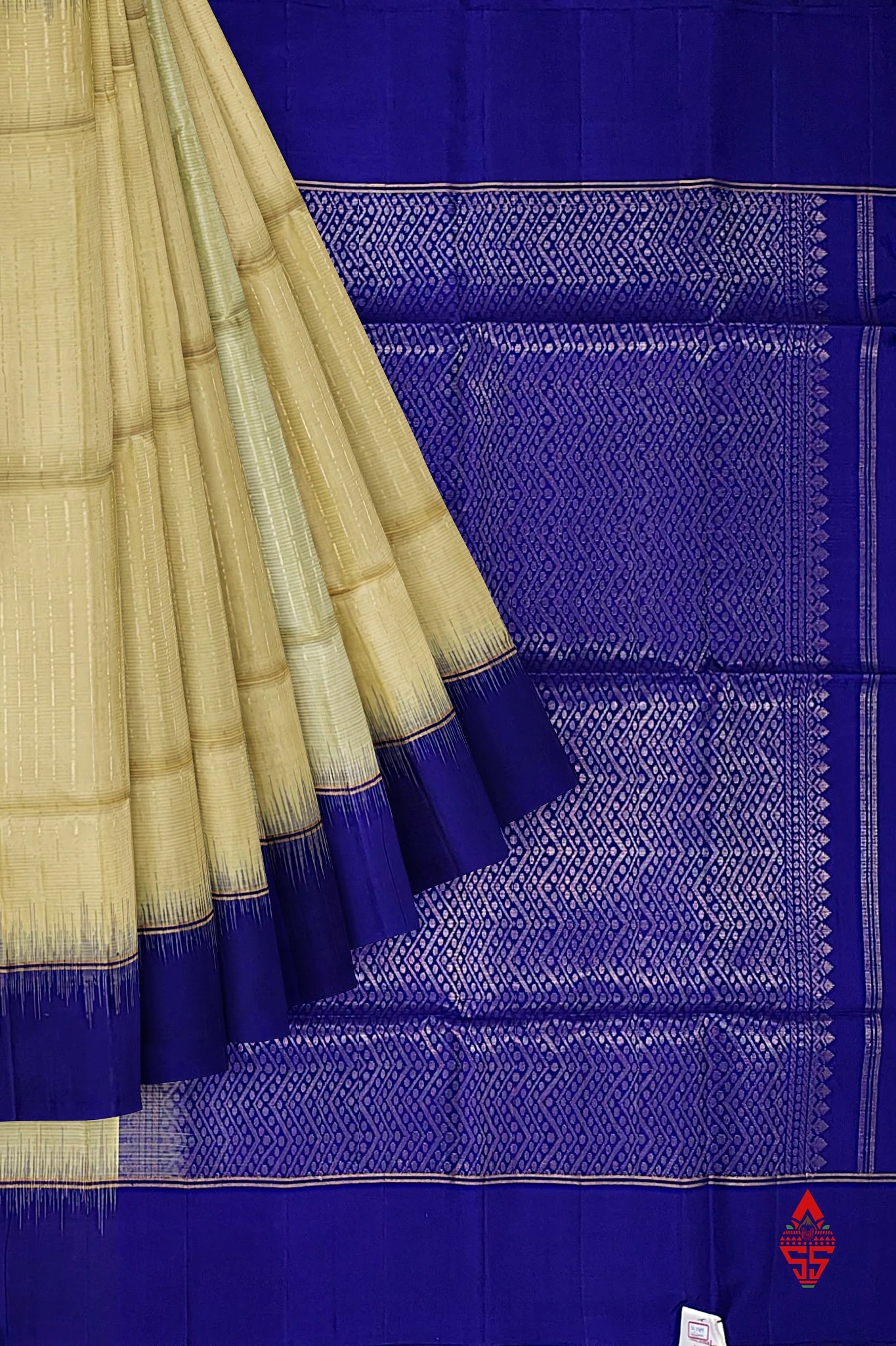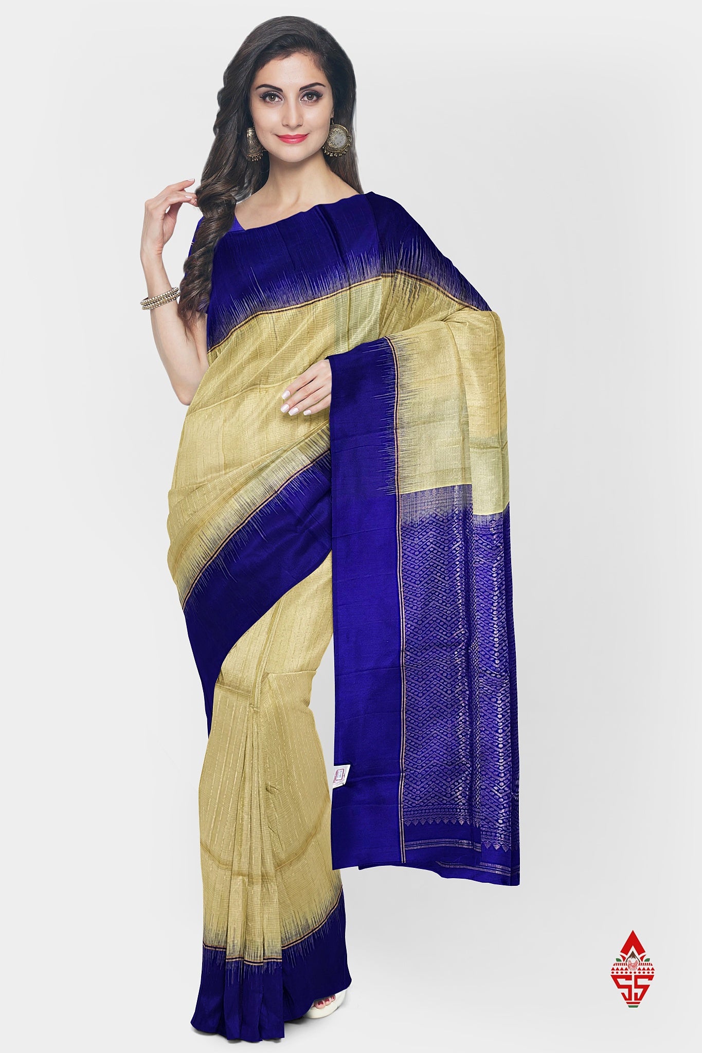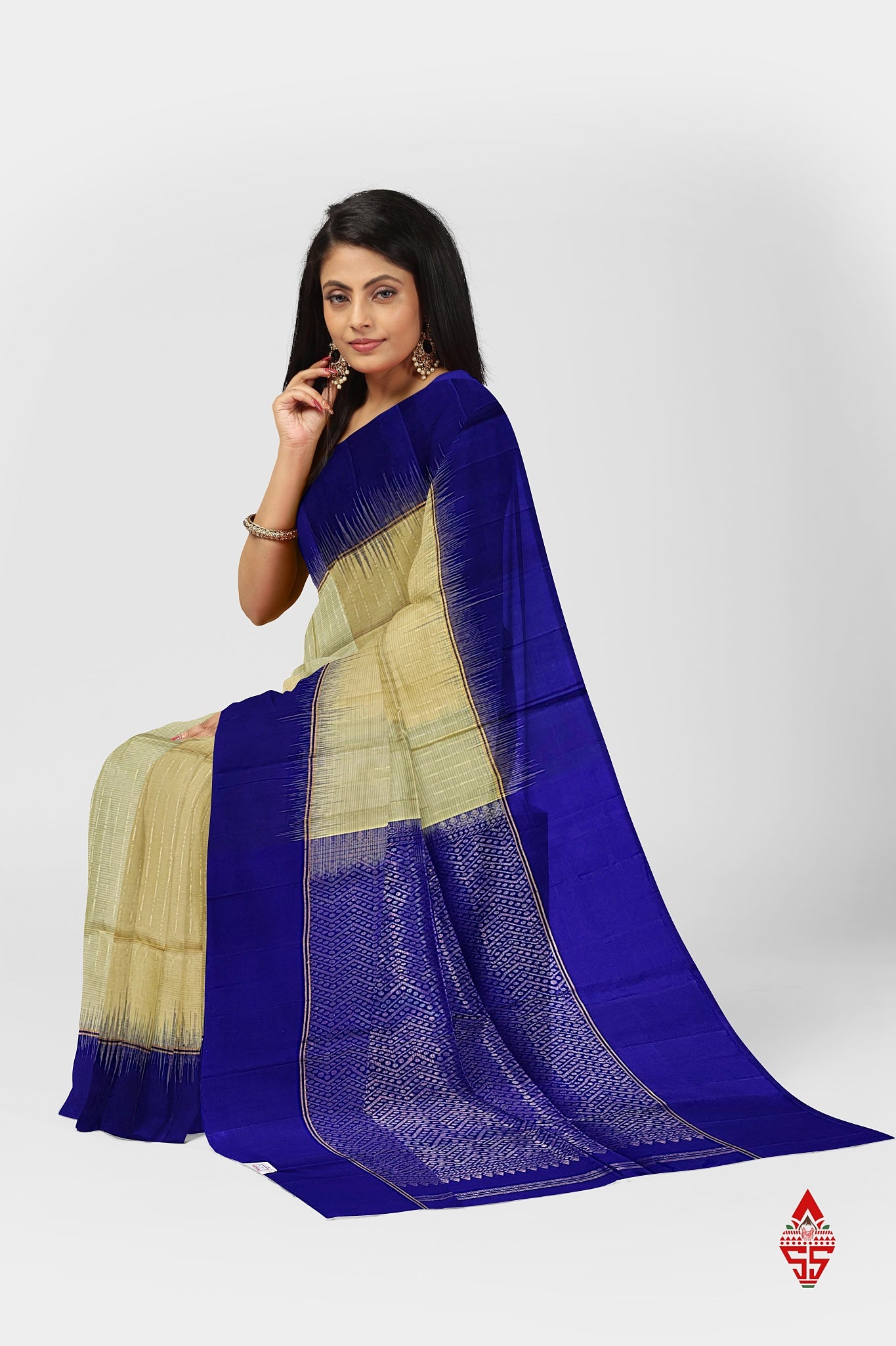 Sandal Fancy Pure Soft Silk Saree With Royal Blue Border