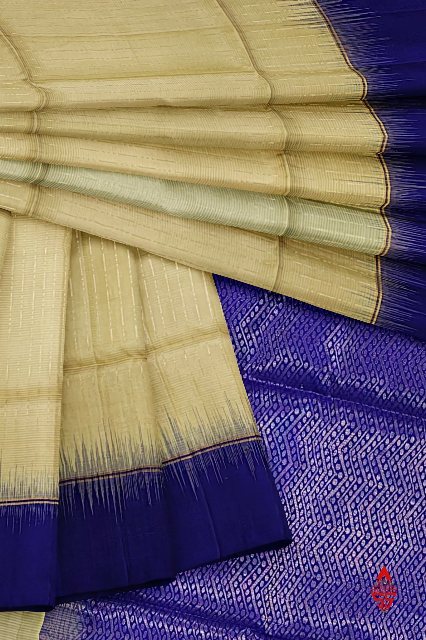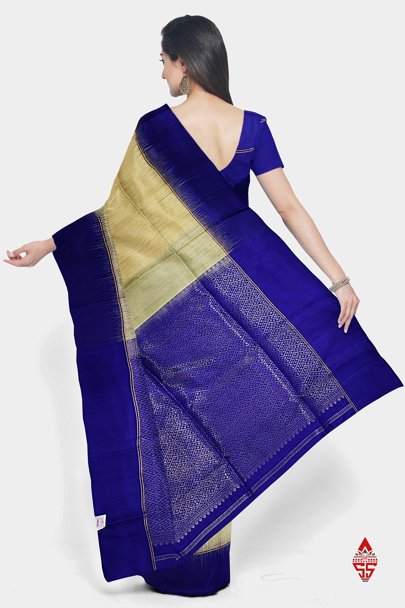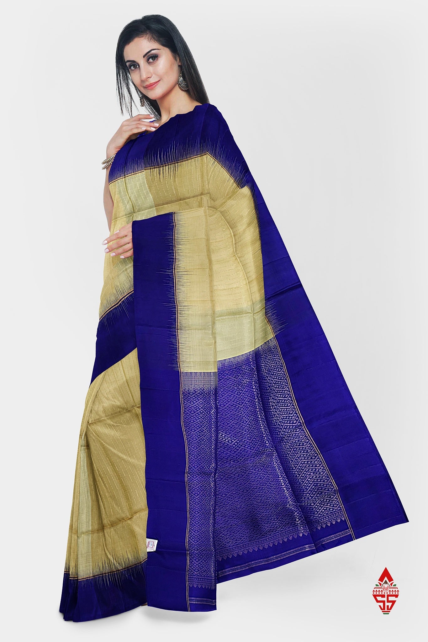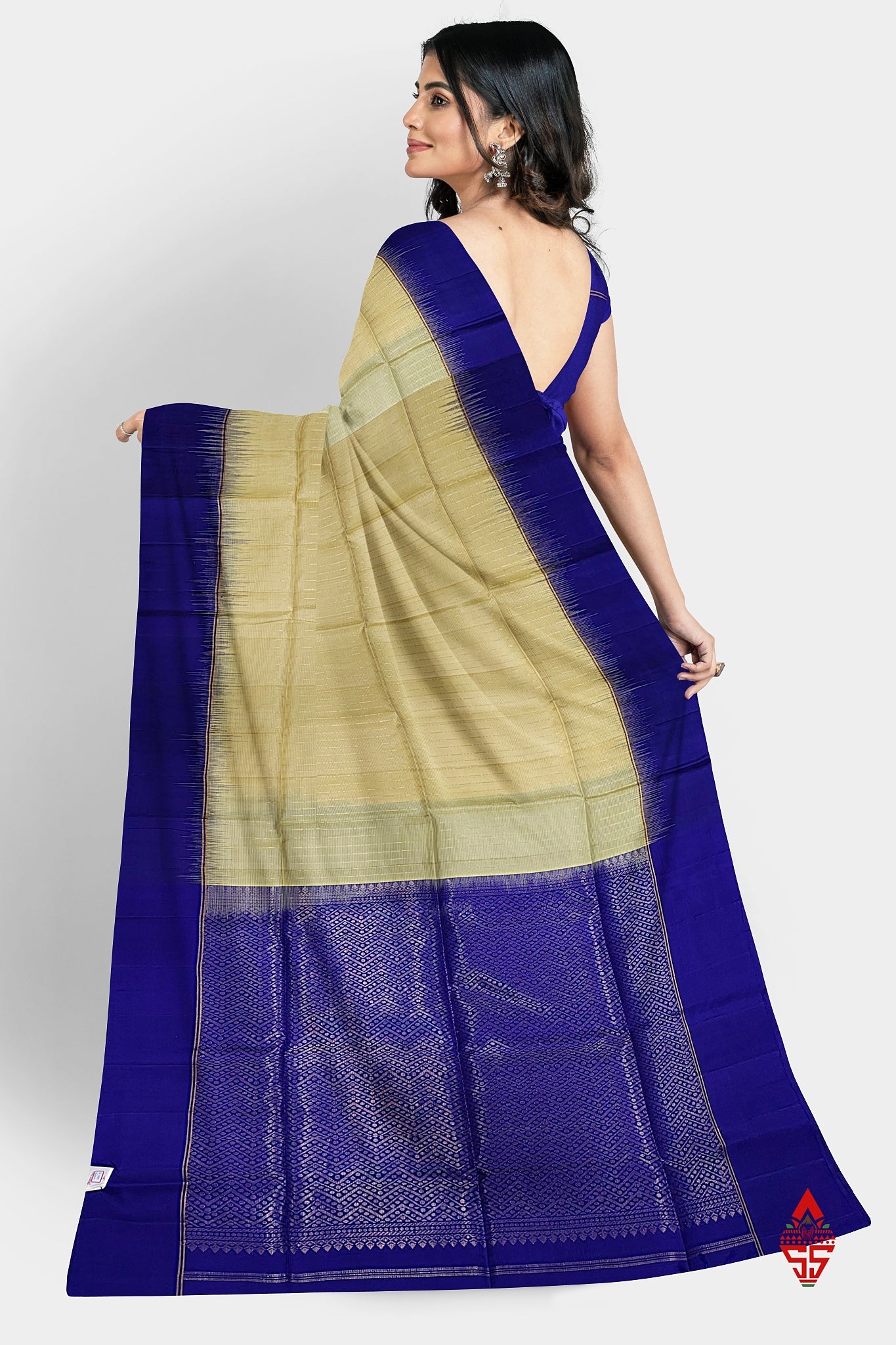 Sandal Fancy Pure Soft Silk Saree With Royal Blue Border