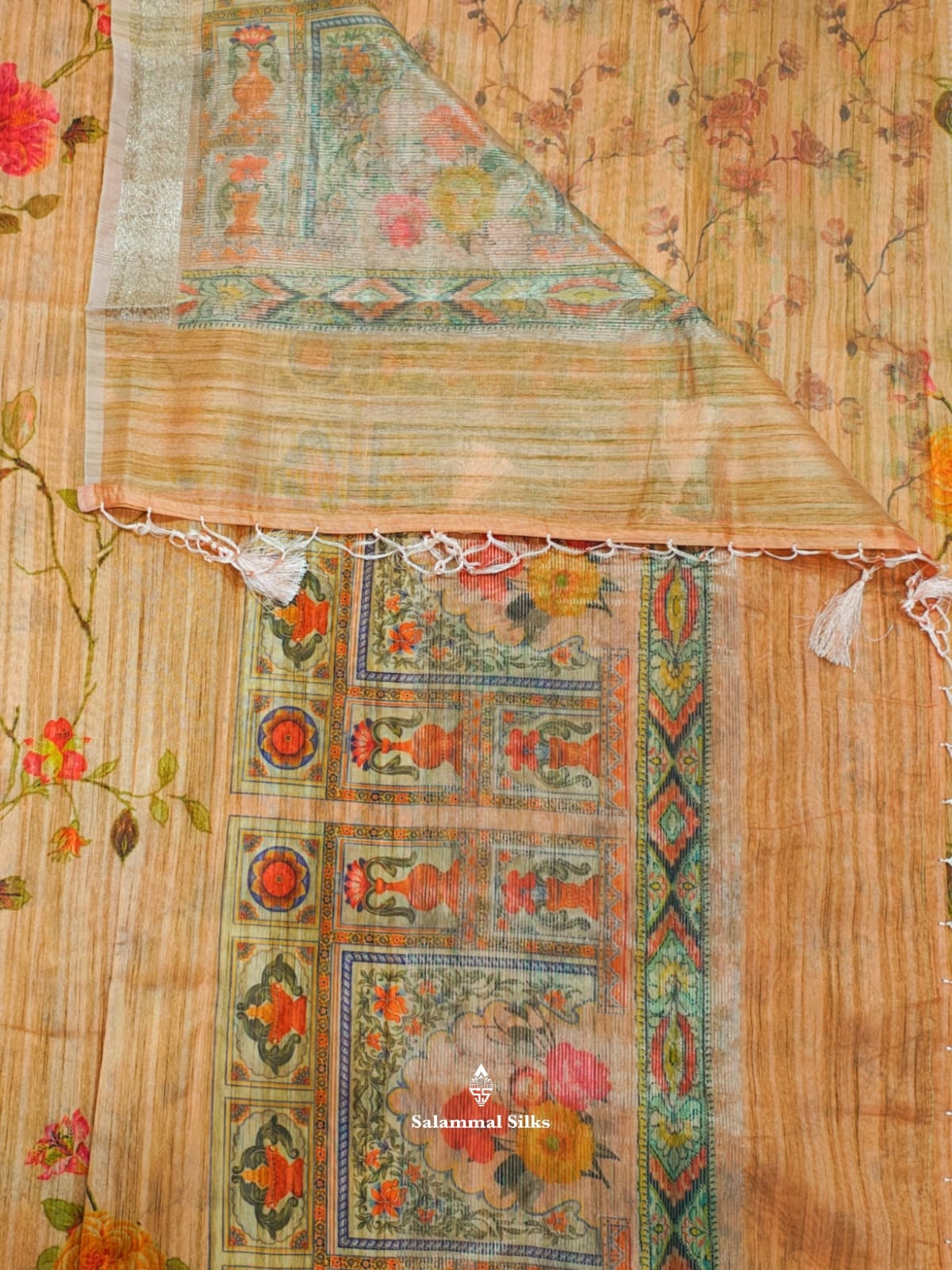 Salammal is known for its handloom sarees. In some sarees, there is cross-weaving between the body and the pallu, which is a sign of pure handloom sarees. This can be seen in Kanchipuram embossed sarees.