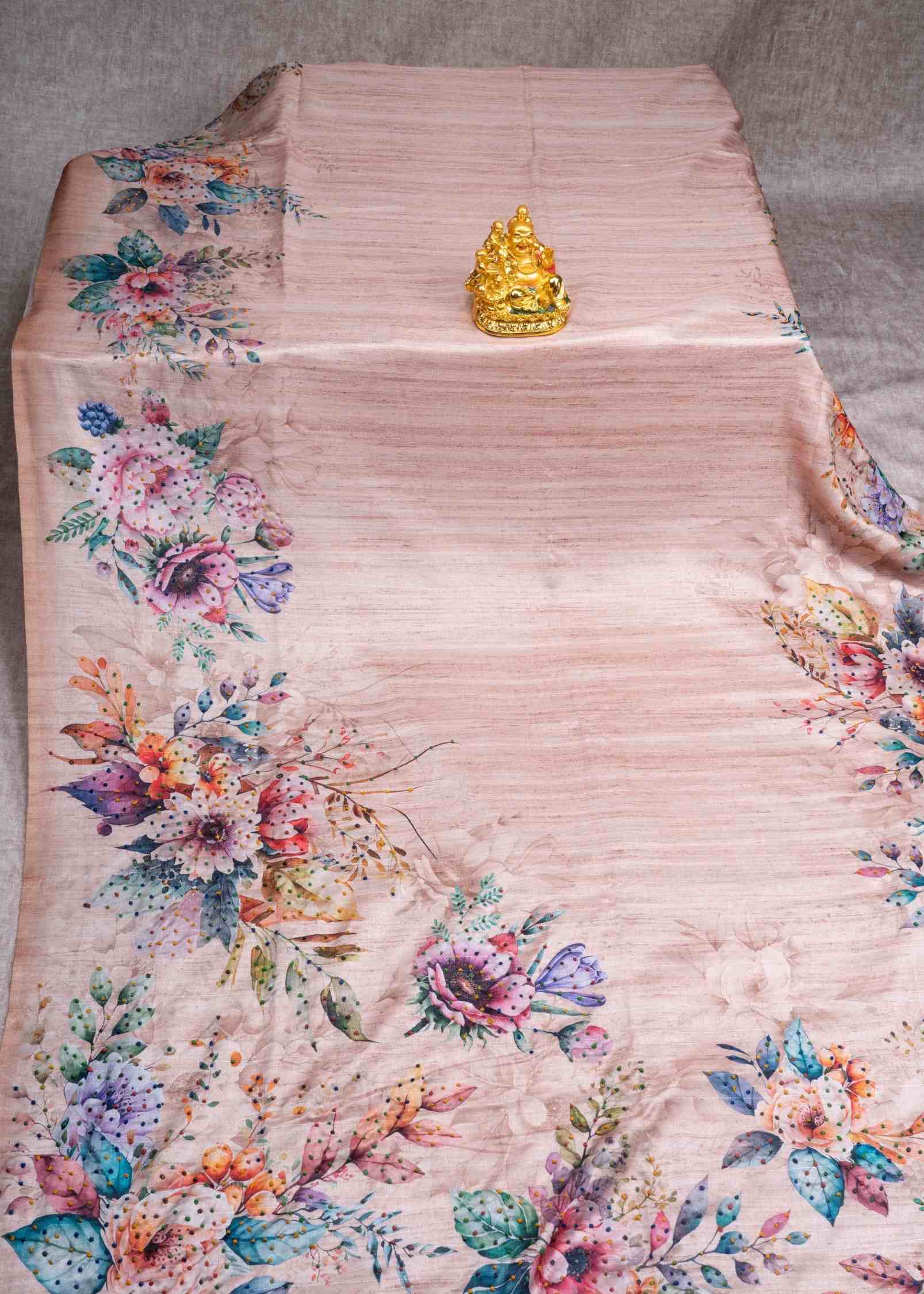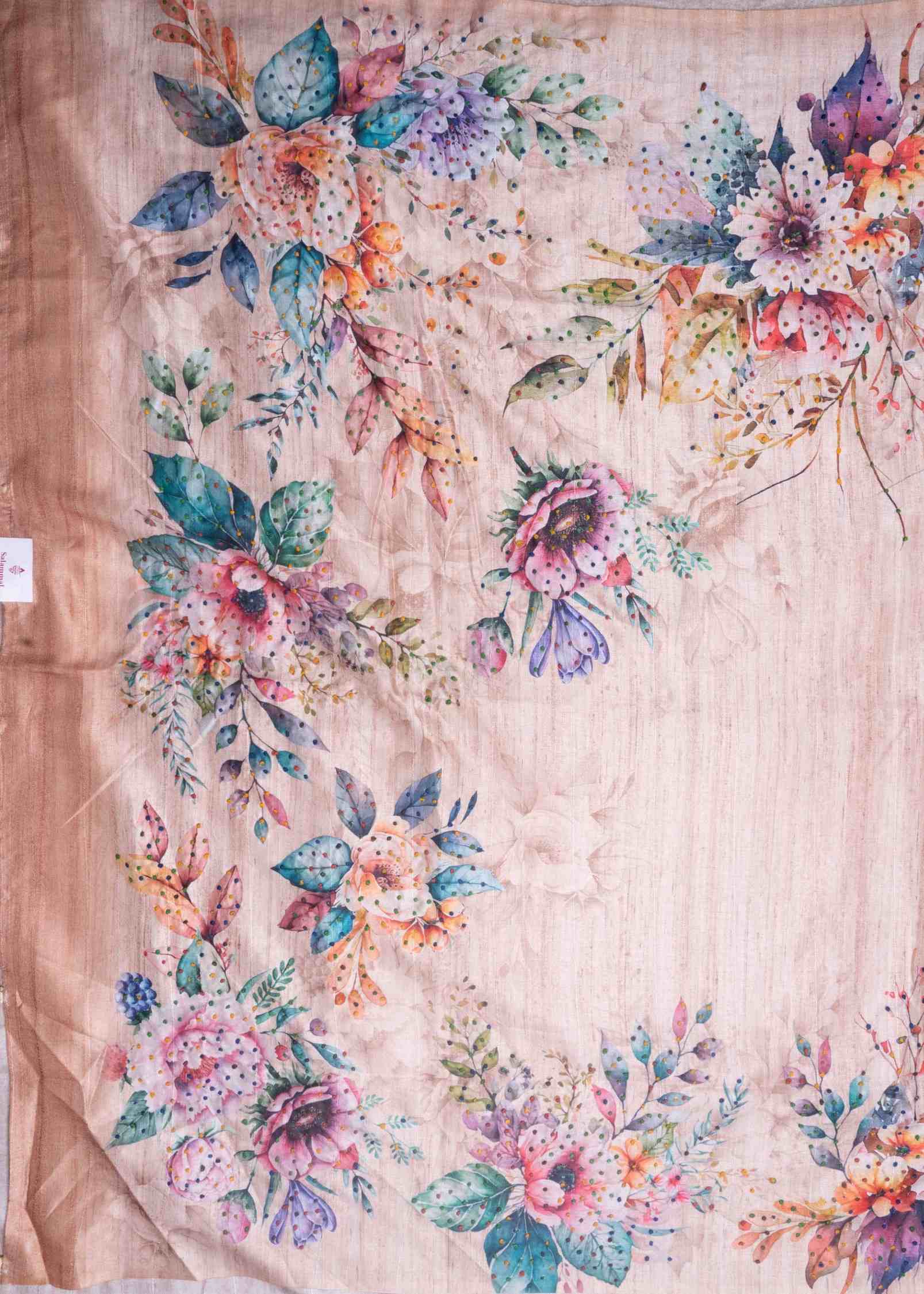 Sandal Pure Fancy Tussar Saree With Floral Blouse