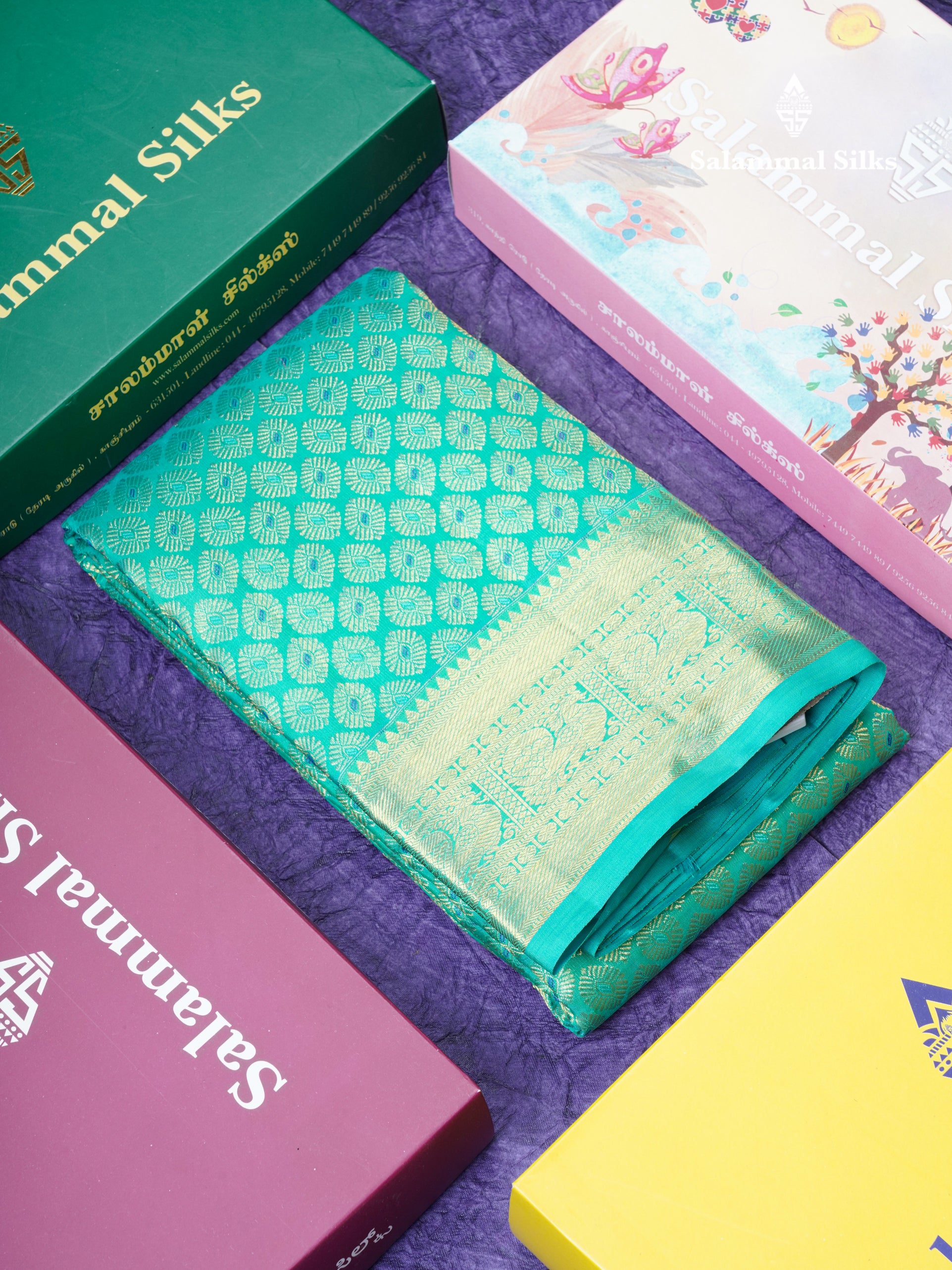 Salammal is known for its handloom sarees. In some sarees, there is cross-weaving between the body and the pallu, which is a sign of pure handloom sarees. This can be seen in Kanchipuram embossed sarees.