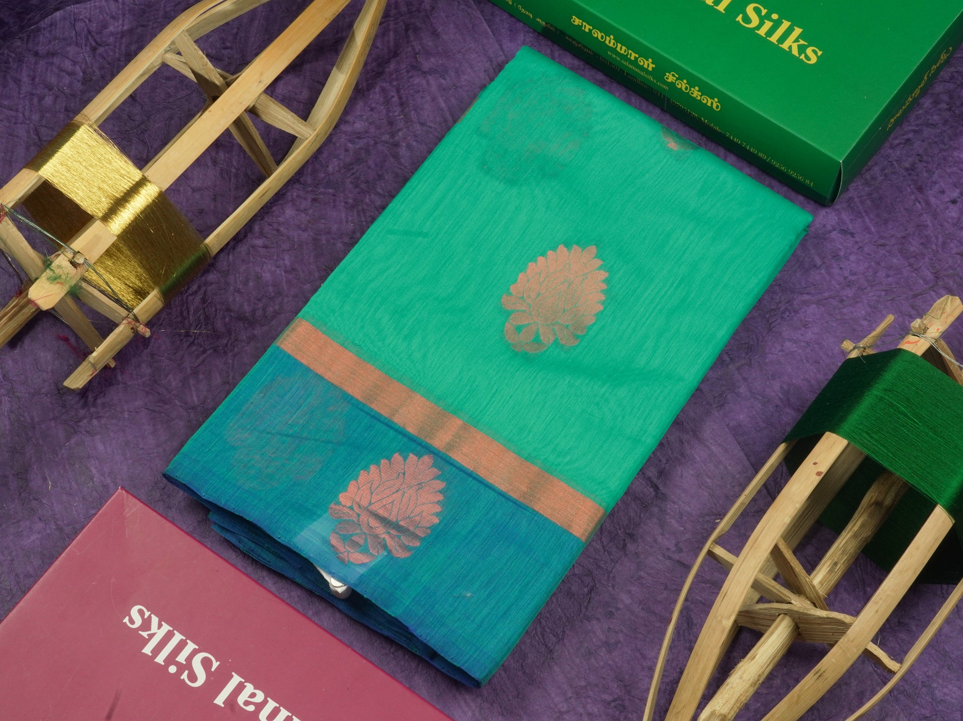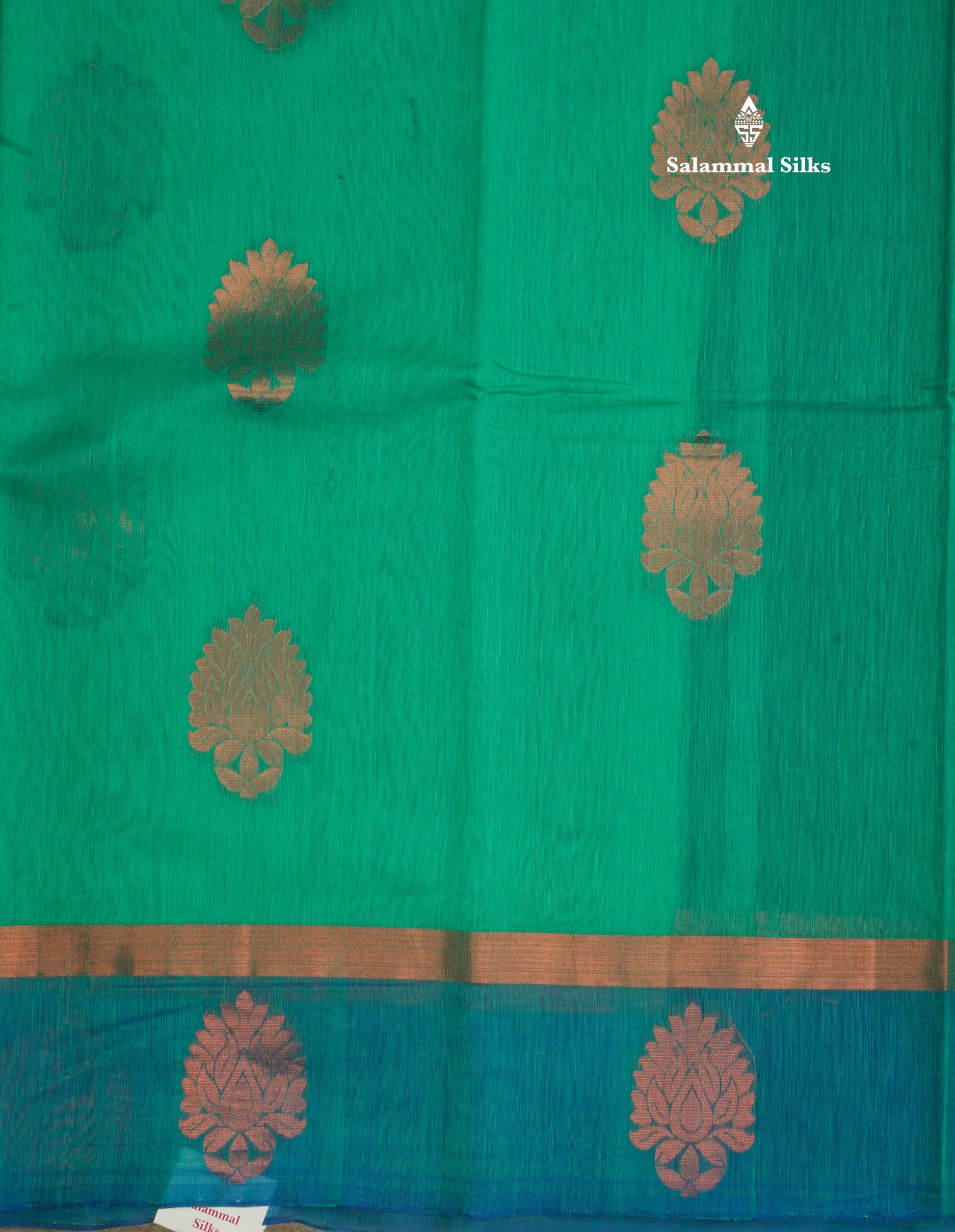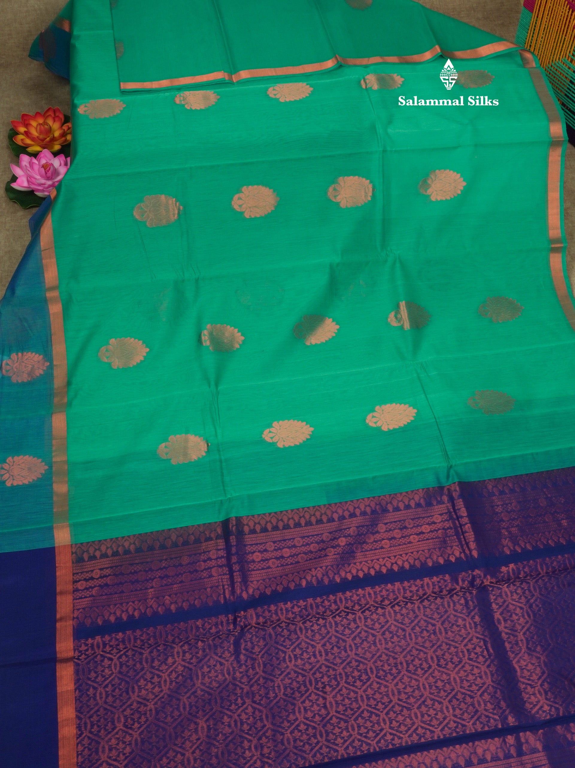 Sapphire Green Beautiful SICO Cotton Saree With Rama Blue Border