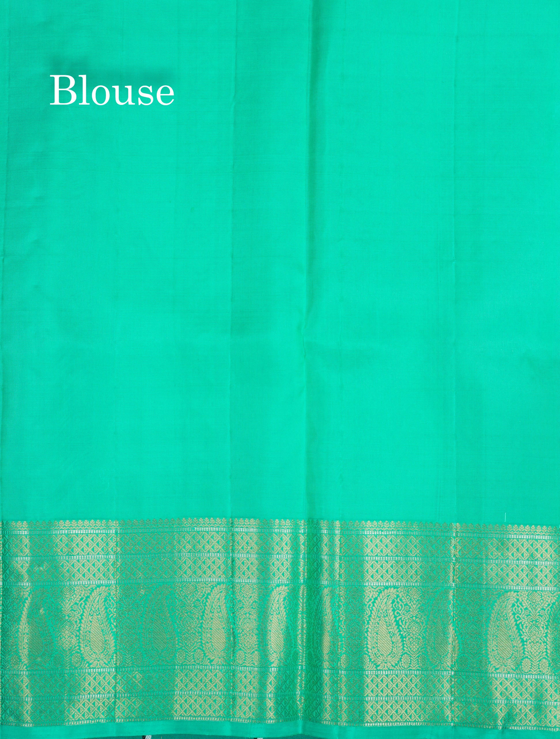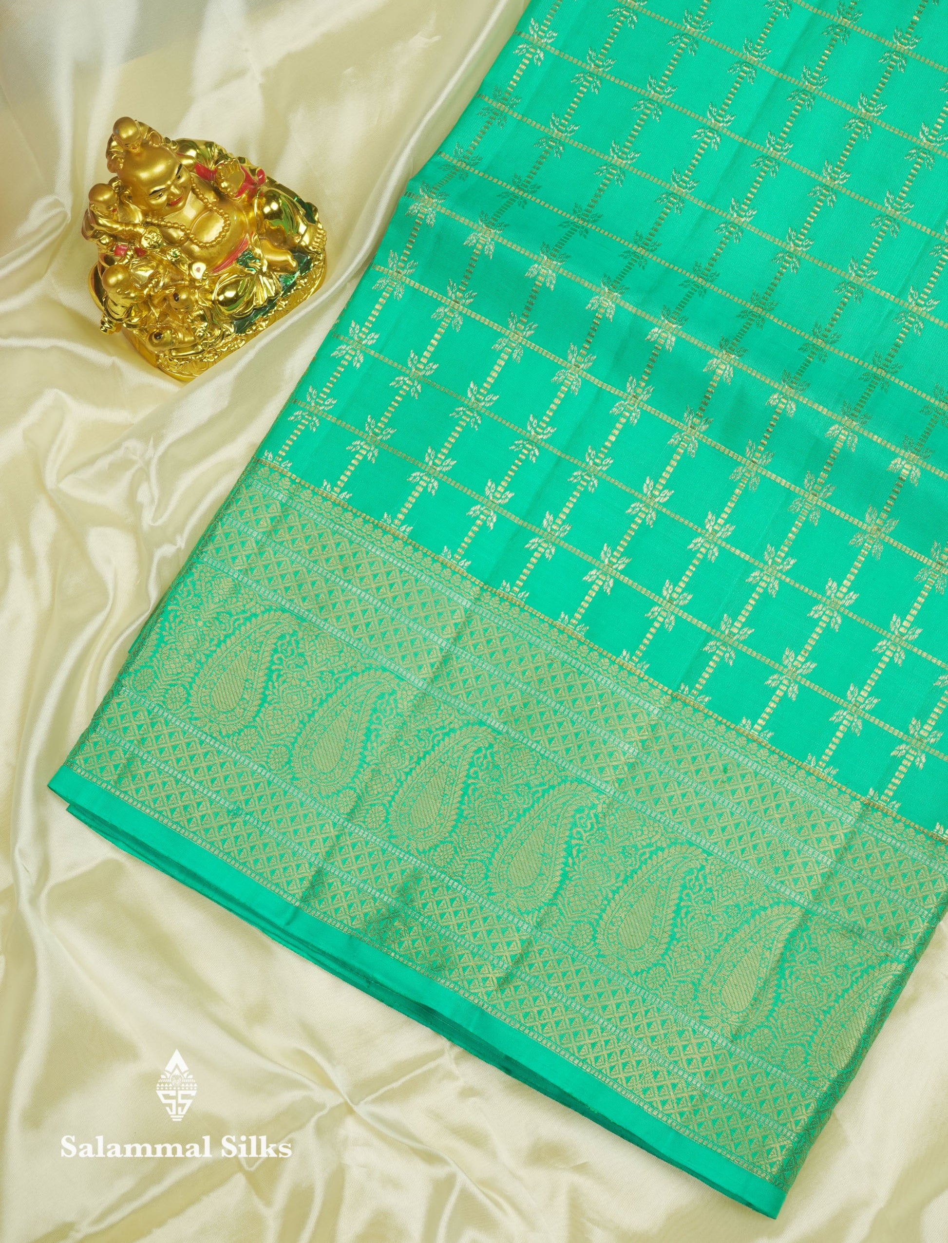 Sapphire Green Bridal Pure Kanjivaram Silk Saree With Self Border