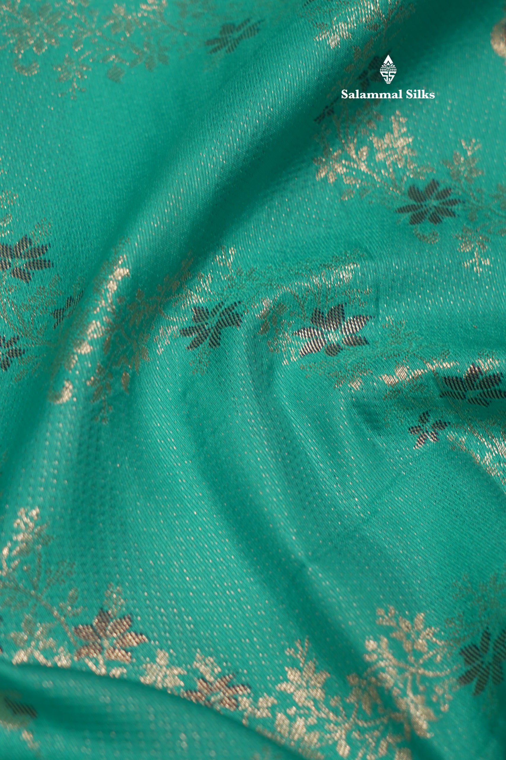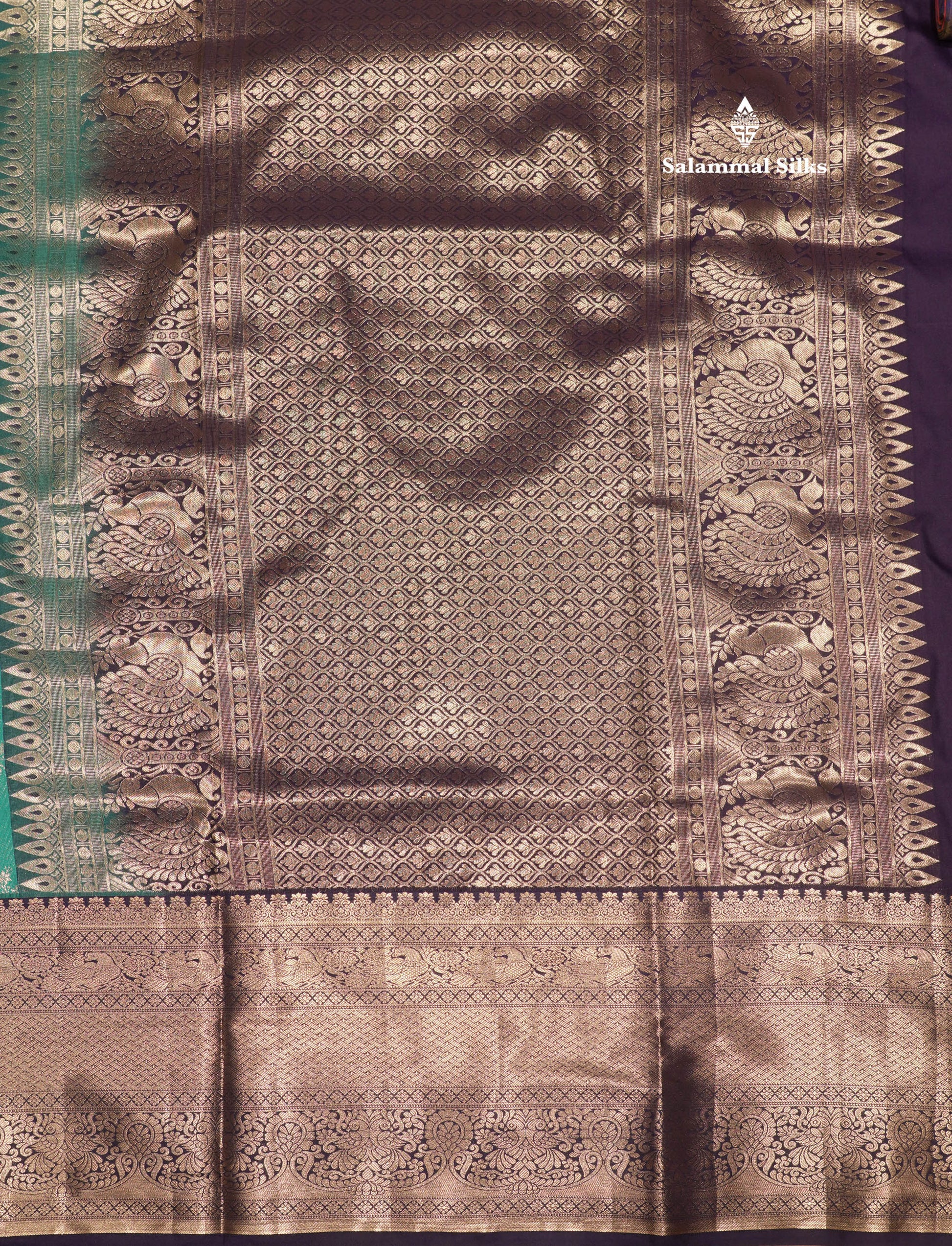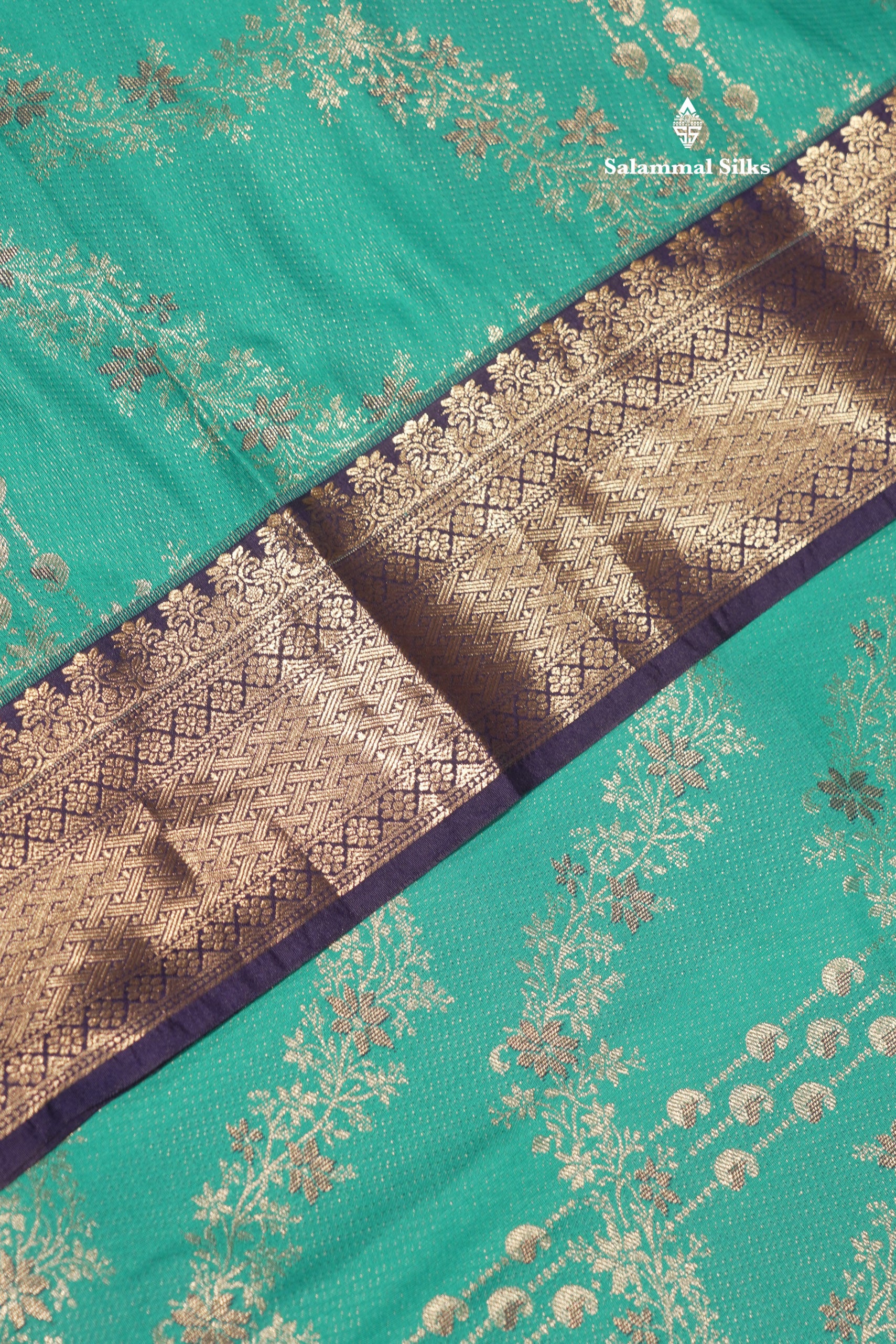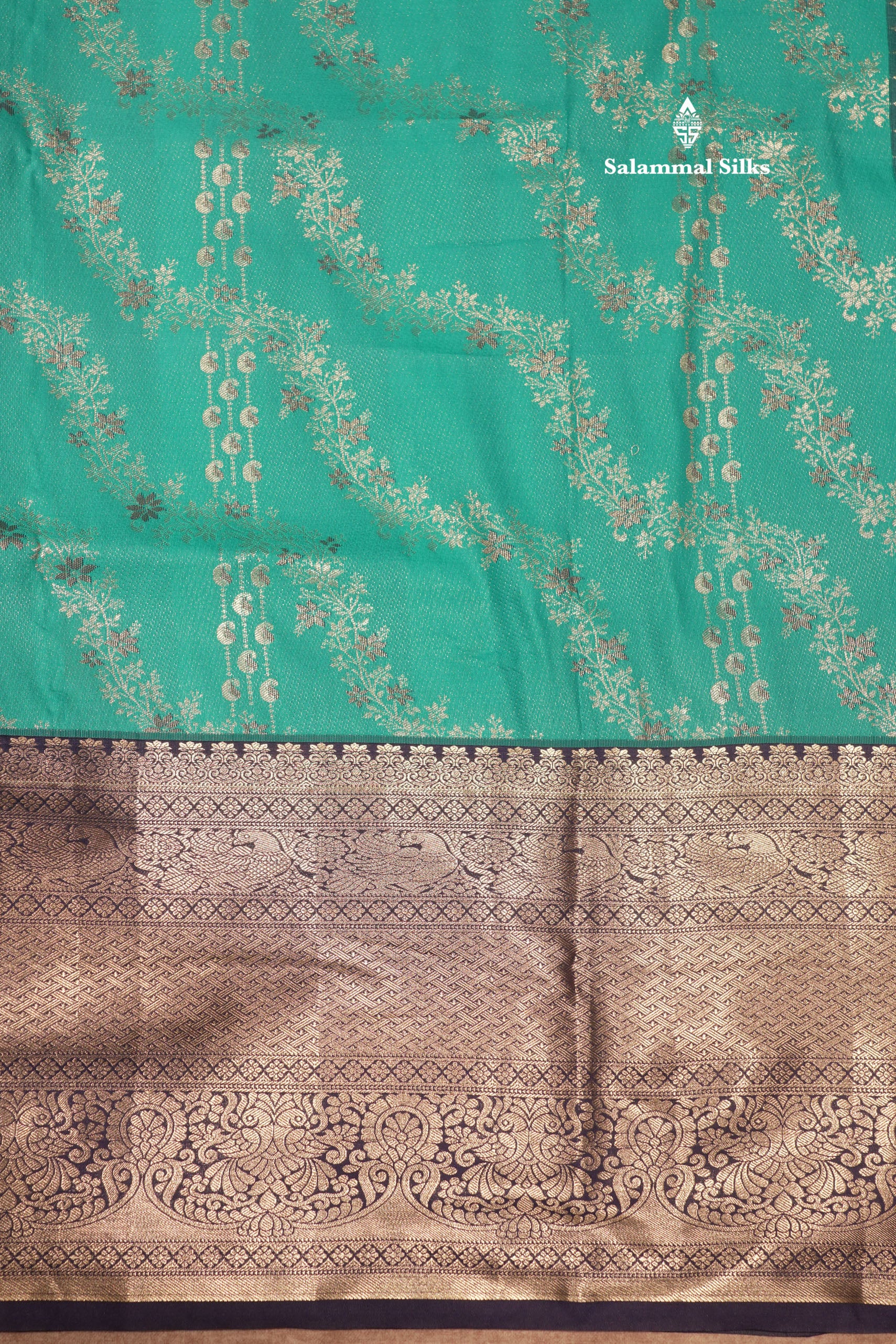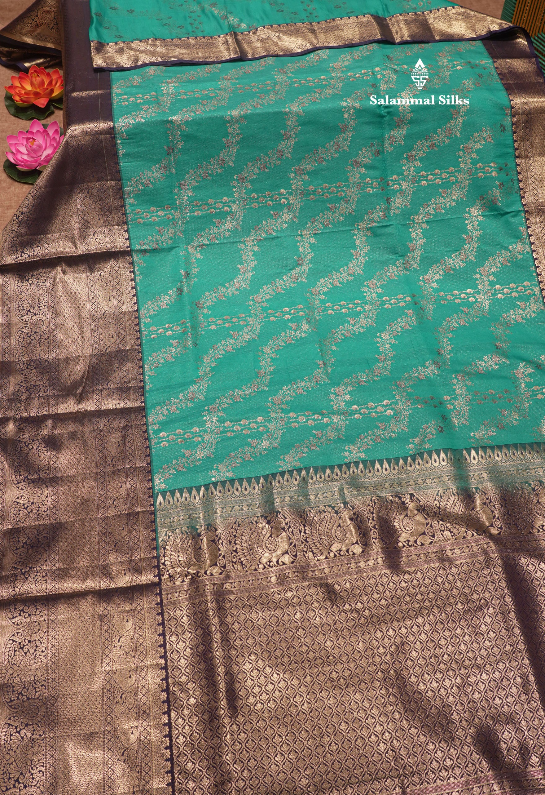 Sapphire Green Colour Semi Silk Saree With Contrast Long Navy Blue Border