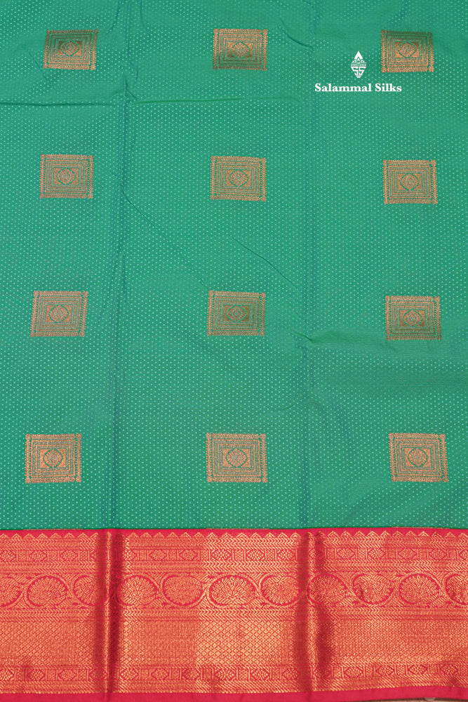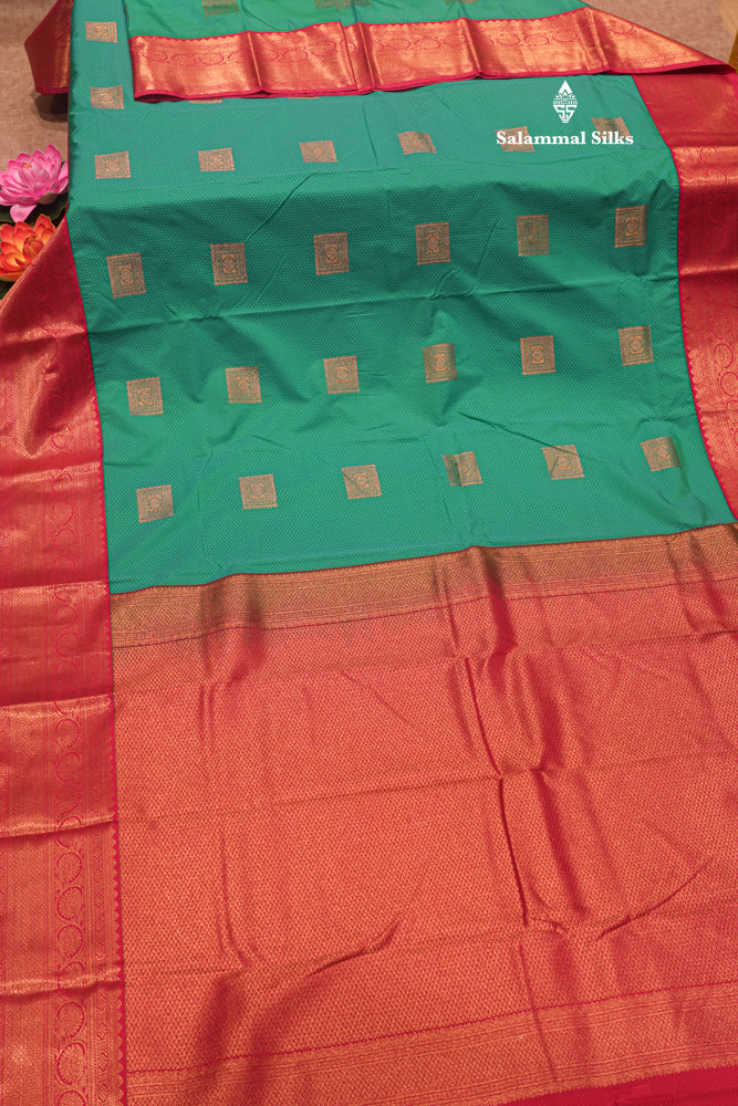Sapphire Green Colour Semi Silk Saree With Pink Border