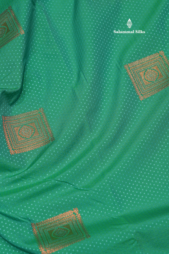 Salammal is known for its handloom sarees. In some sarees, there is cross-weaving between the body and the pallu, which is a sign of pure handloom sarees. This can be seen in Kanchipuram embossed sarees.