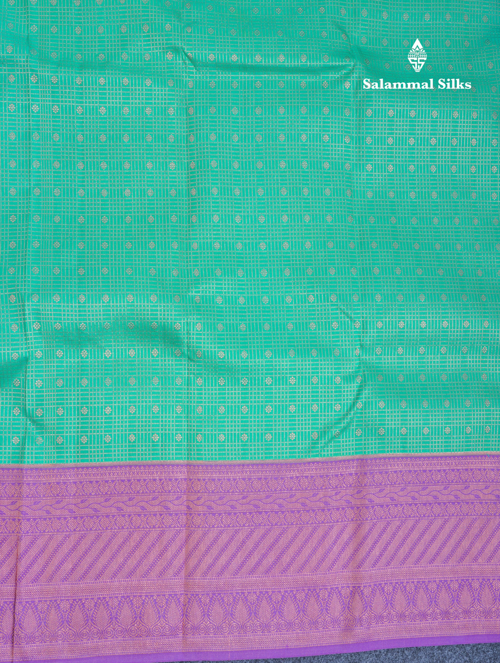 Sapphire Green Pure Kanjivaram Silk Saree with Contrast Purple Border