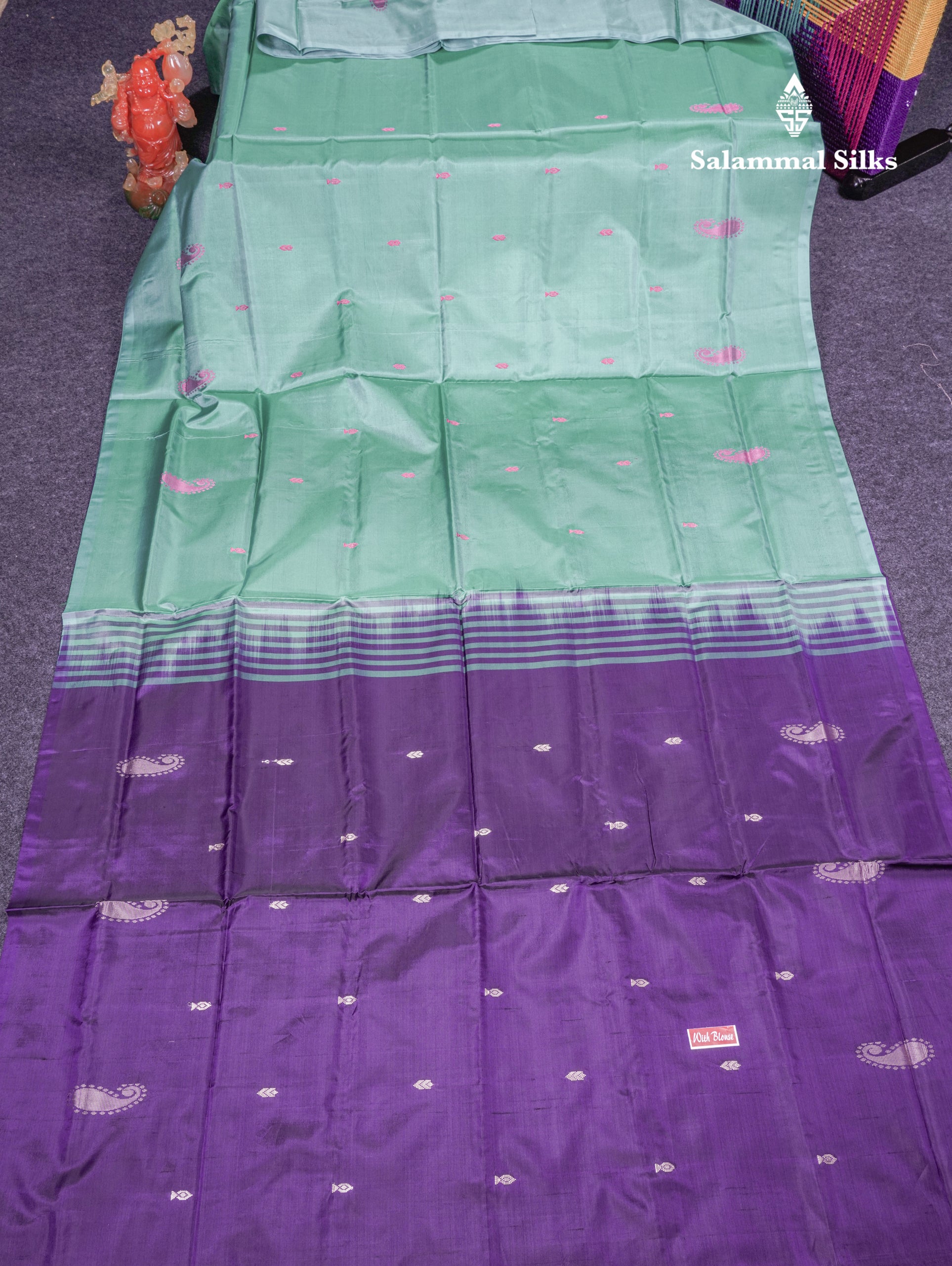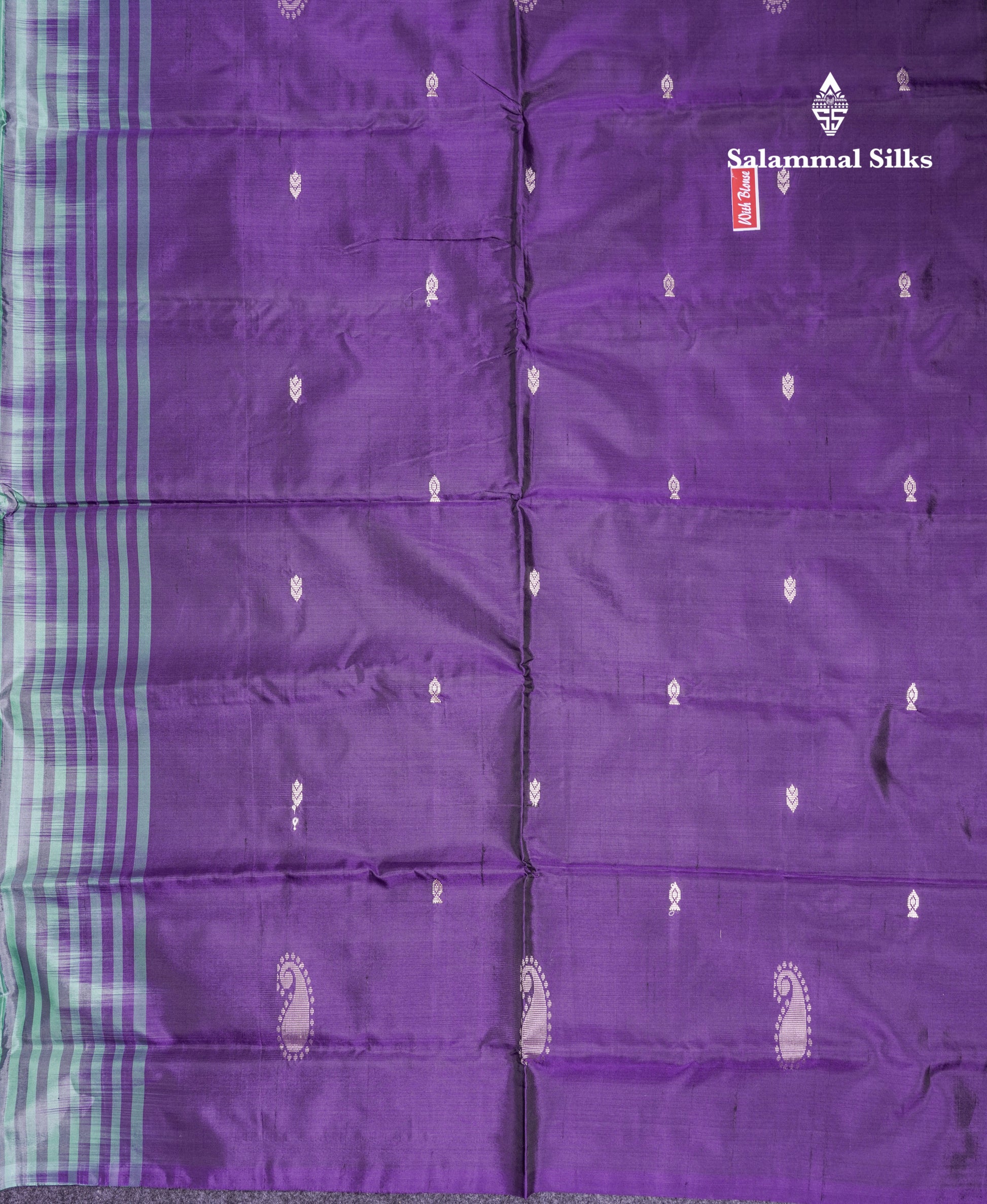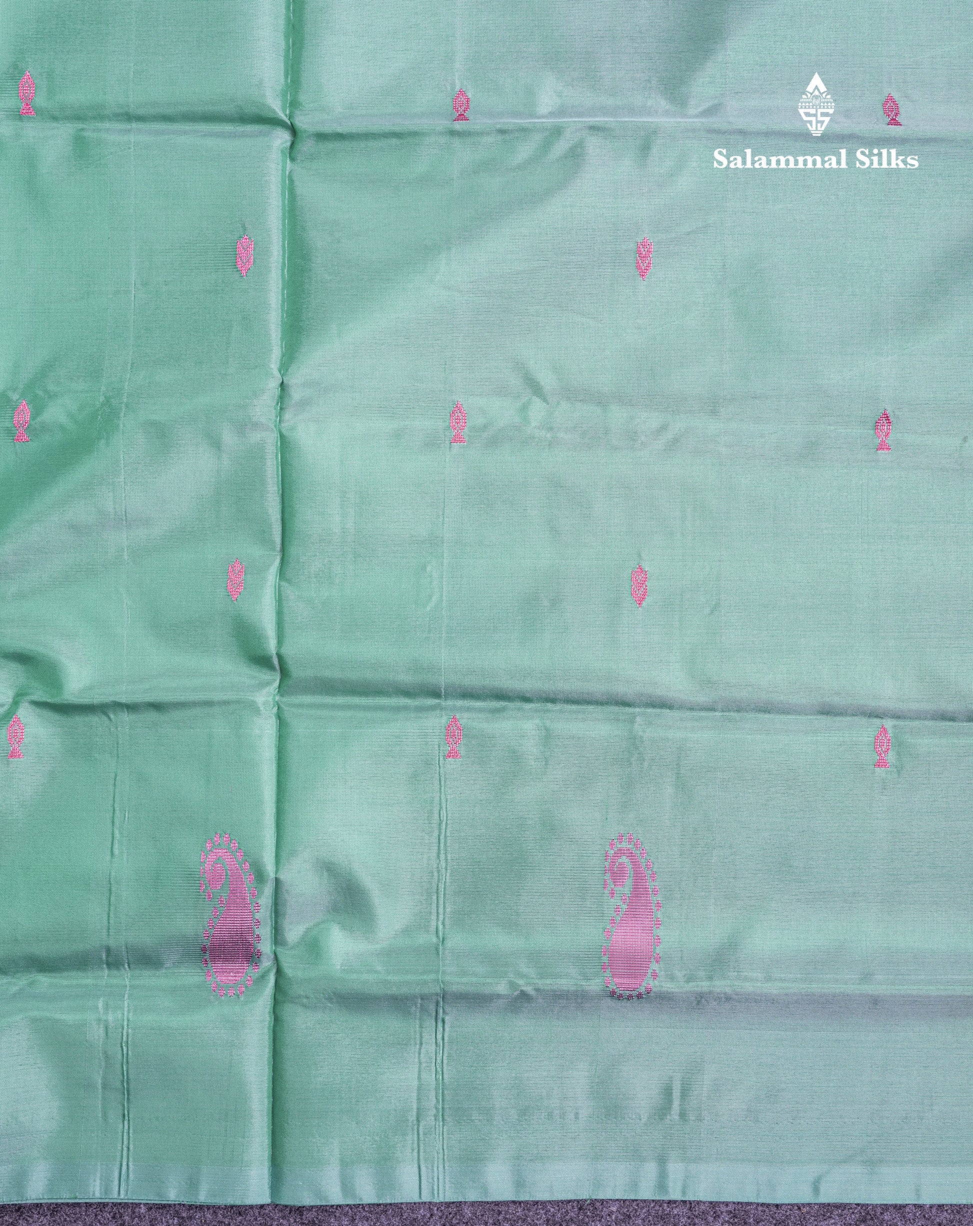 Salammal is known for its handloom sarees. In some sarees, there is cross-weaving between the body and the pallu, which is a sign of pure handloom sarees. This can be seen in Kanchipuram embossed sarees.