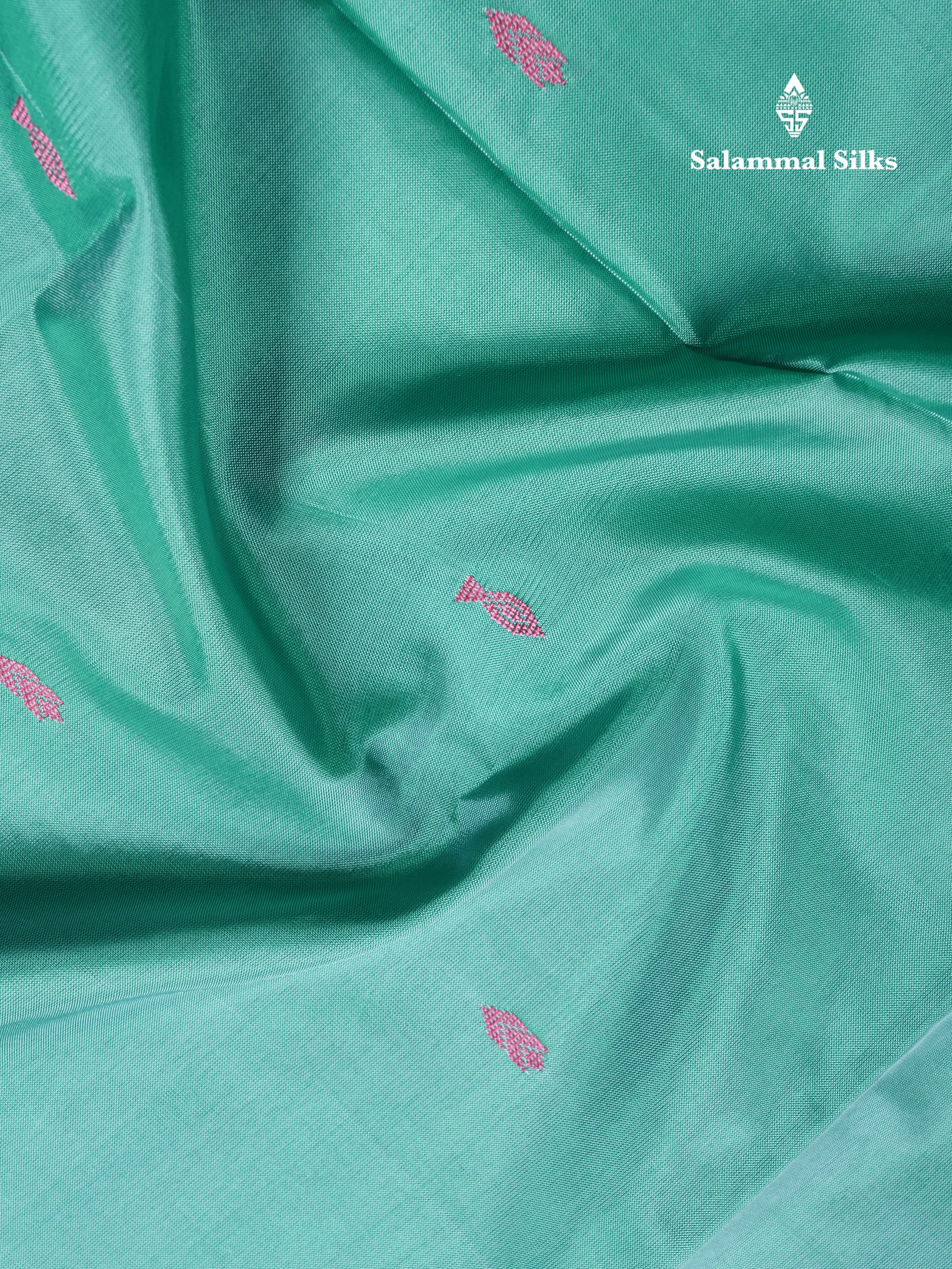 Sapphire Green Thread work Buttas Banana Pinth Saree (Vaazhainaar Pattu) With Contrast Violet Blouse