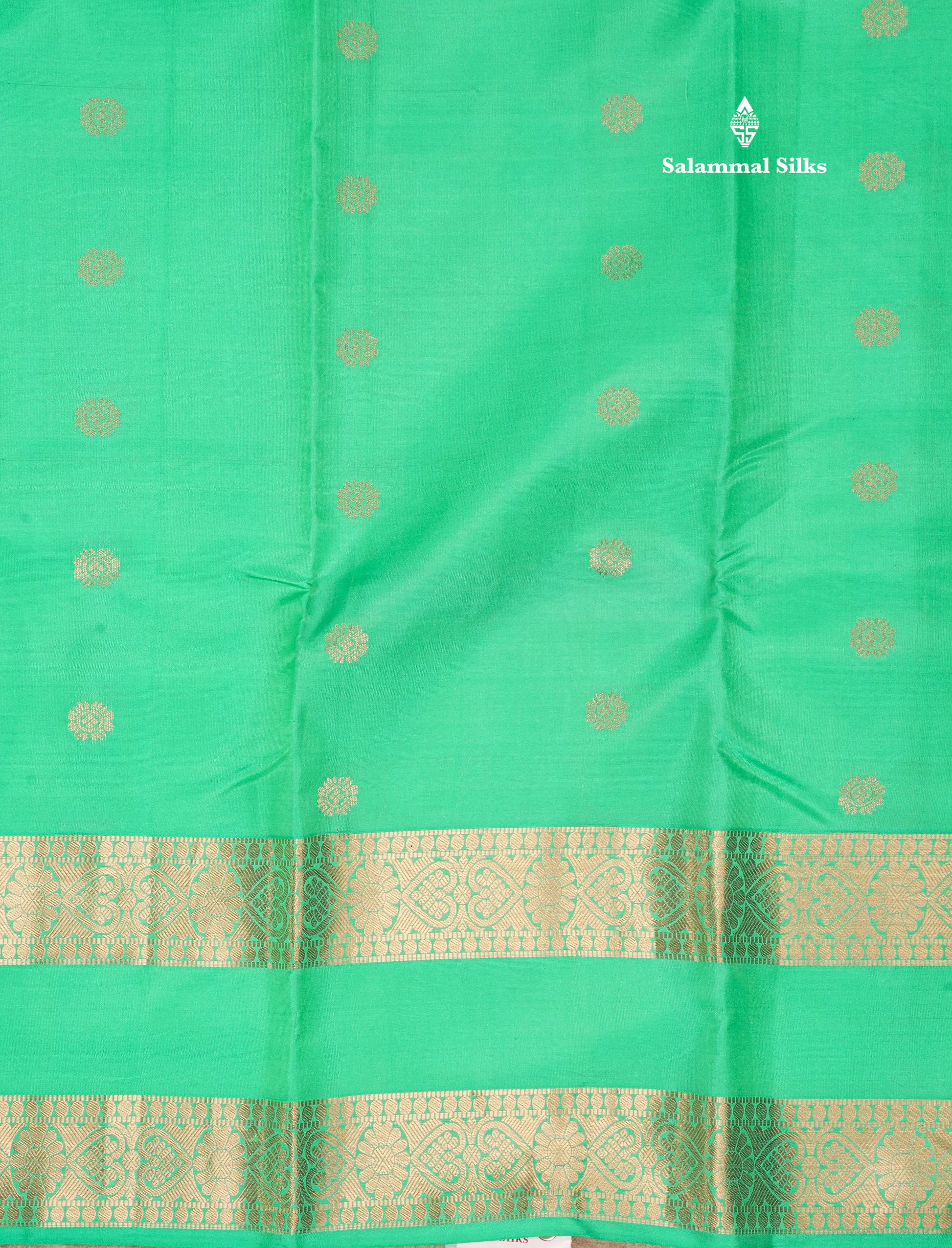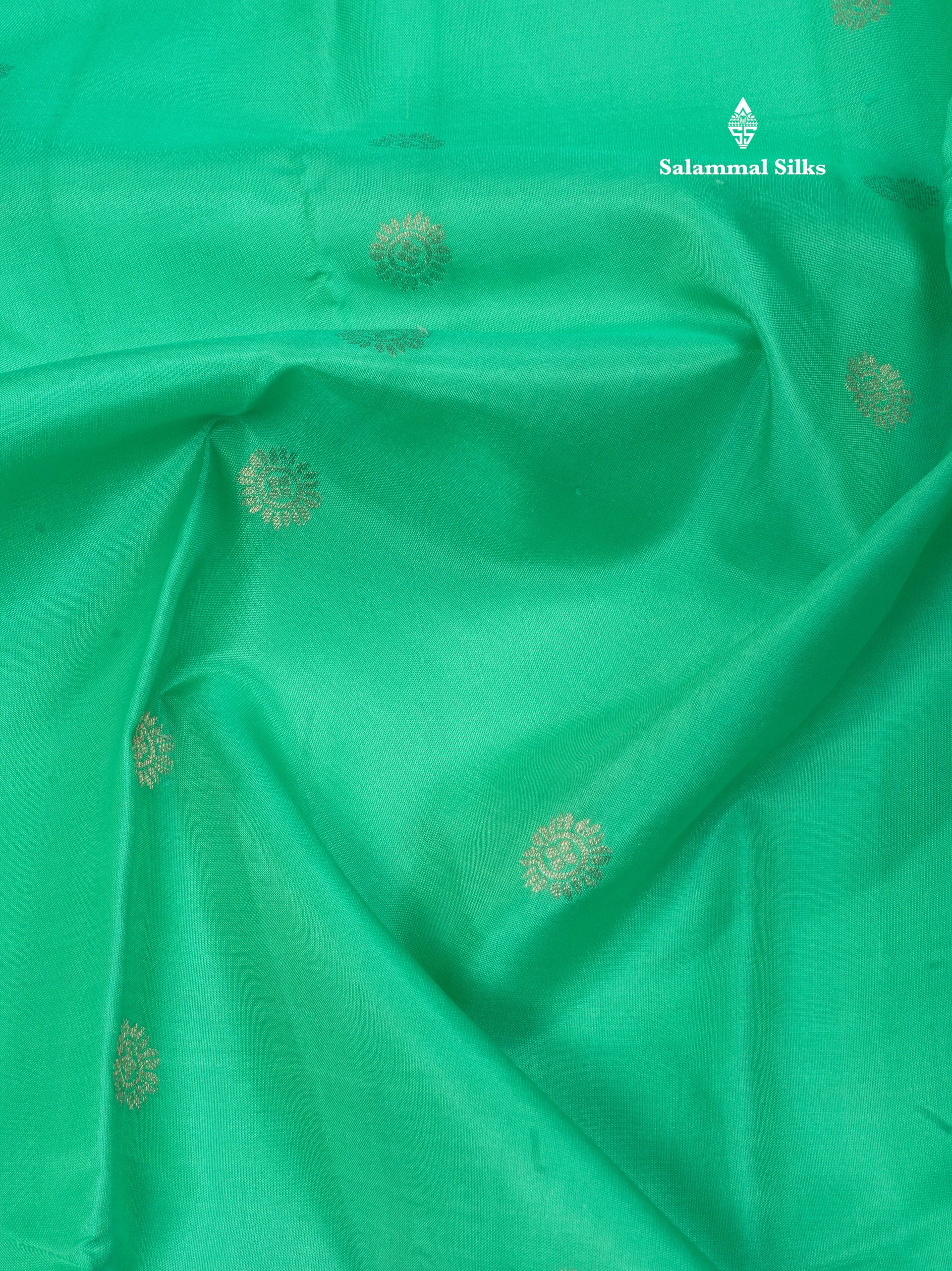 Sea Green Pure Kanjivaram Silk Saree With Gold Zari Gap Border