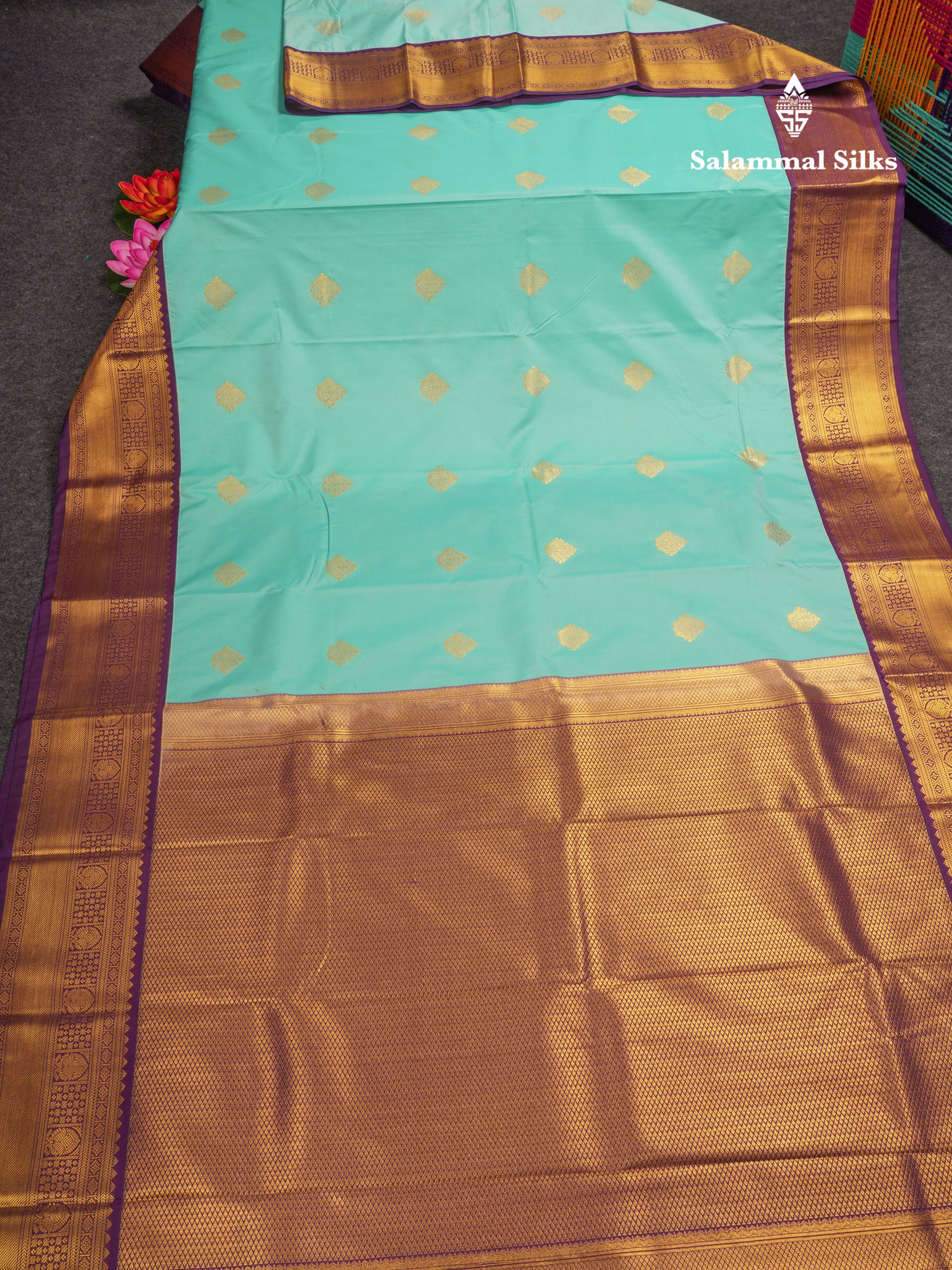 Sea Green Semi Silk Saree With Contrast Purple Traditional Border
