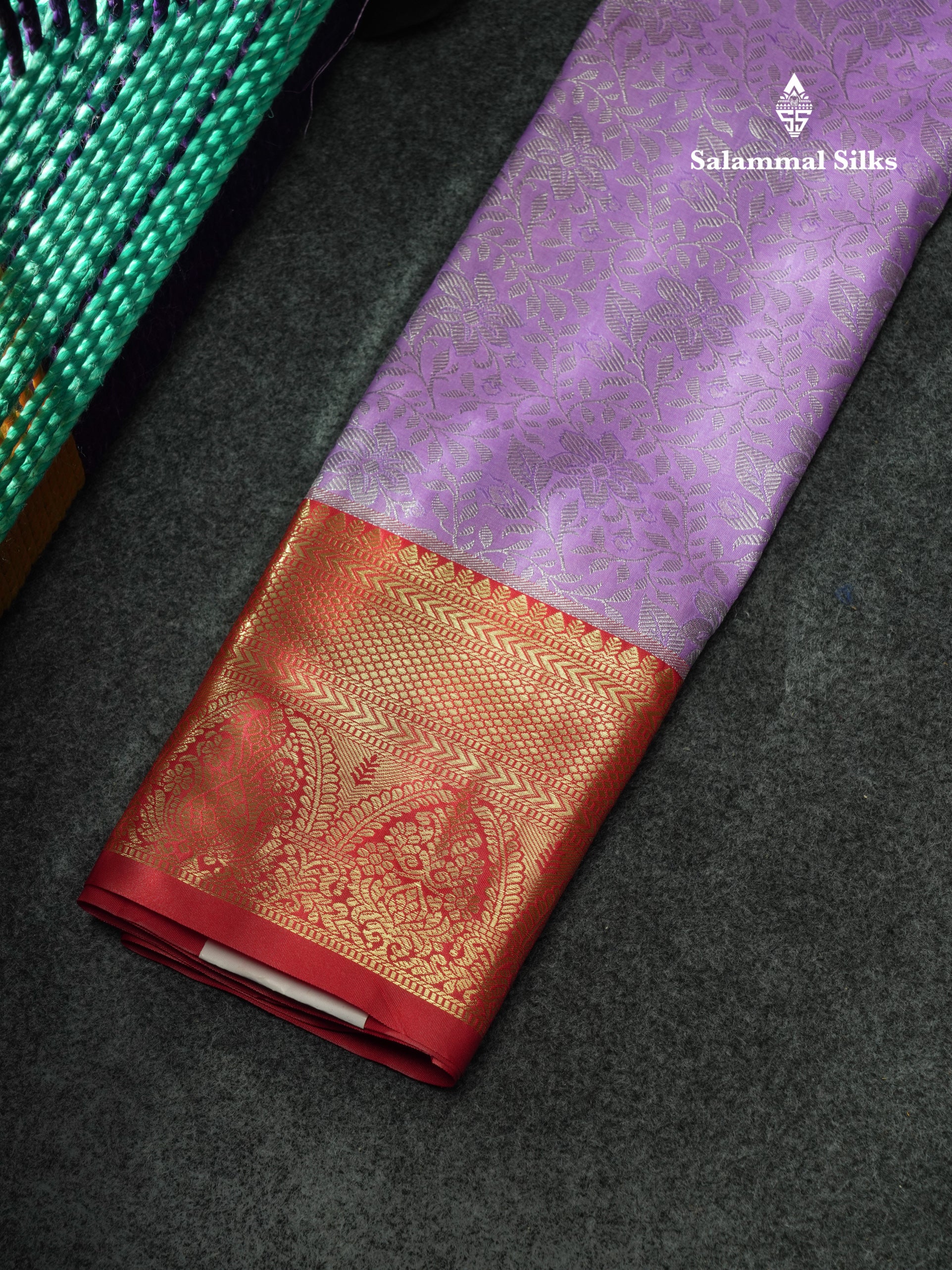 Salammal is known for its handloom sarees. In some sarees, there is cross-weaving between the body and the pallu, which is a sign of pure handloom sarees. This can be seen in Kanchipuram embossed sarees.