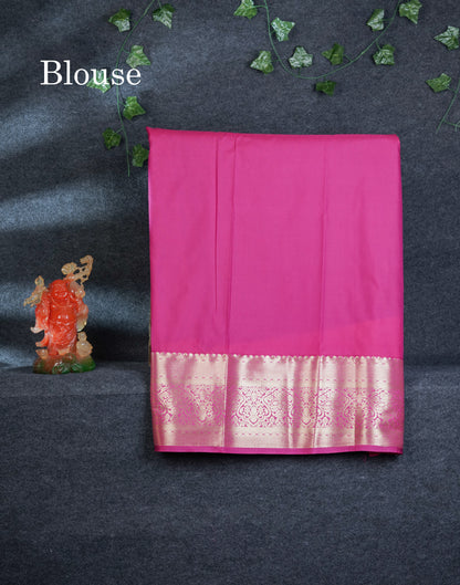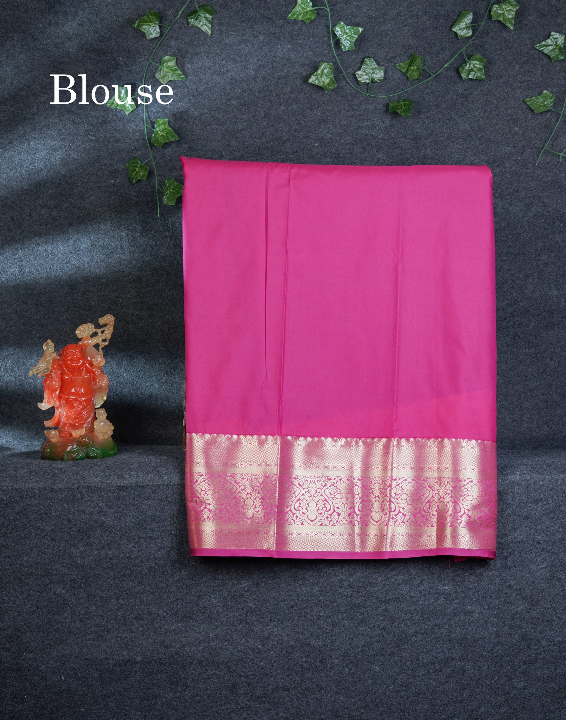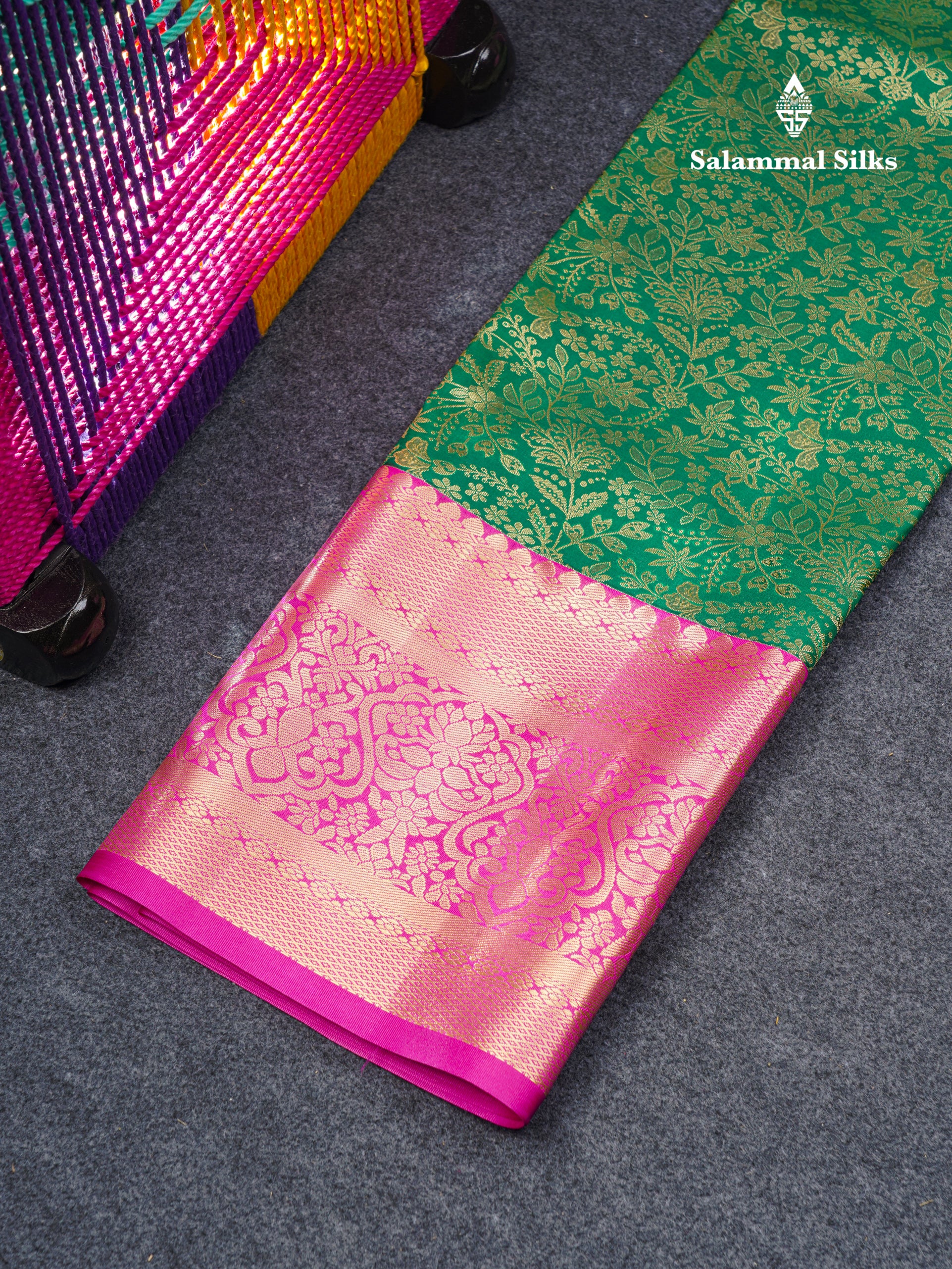 Semi Silk Pattu Pavadai (Bottle Green) With Contrast Magenta Pink Blouse 44"