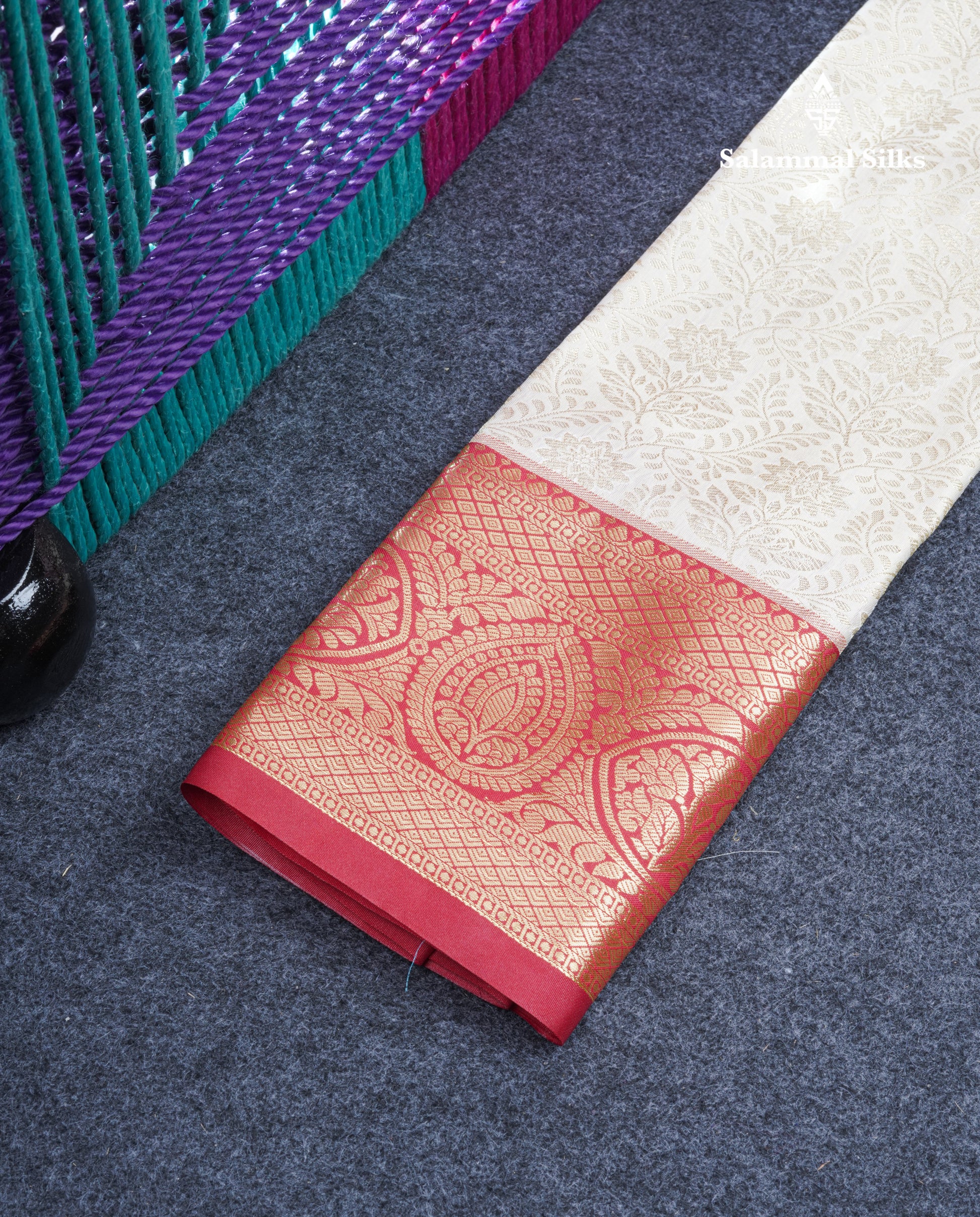 Salammal is known for its handloom sarees. In some sarees, there is cross-weaving between the body and the pallu, which is a sign of pure handloom sarees. This can be seen in Kanchipuram embossed sarees.